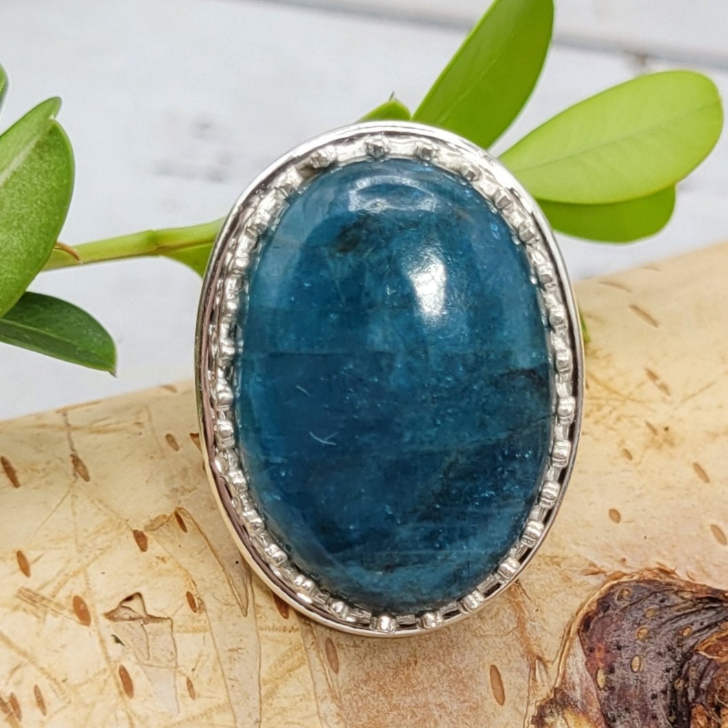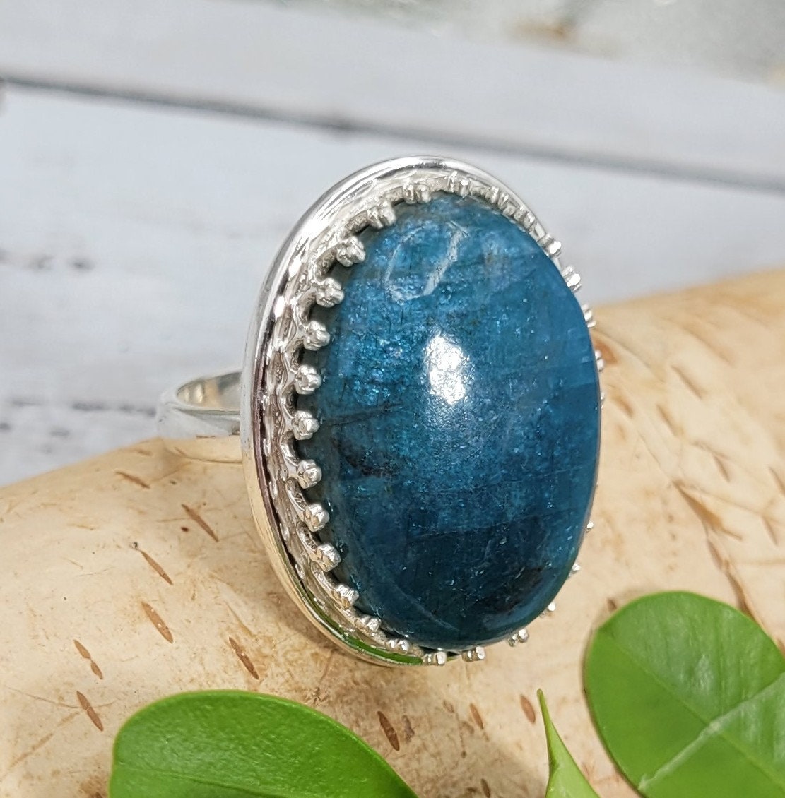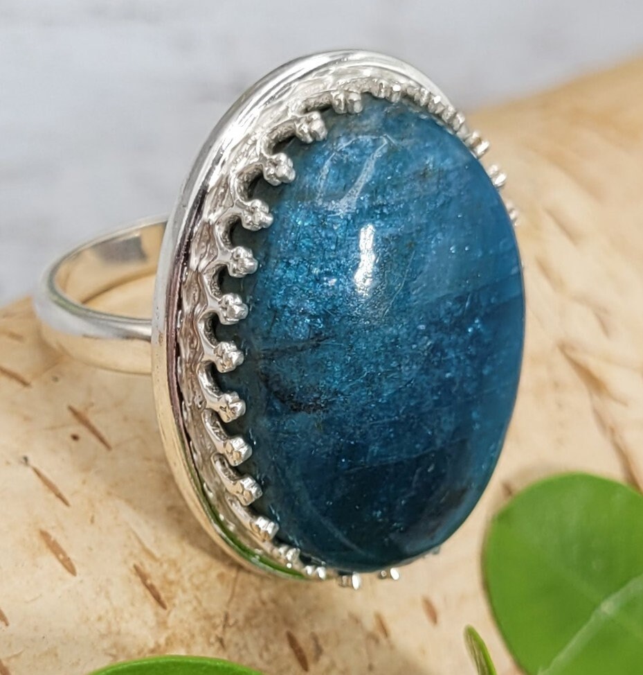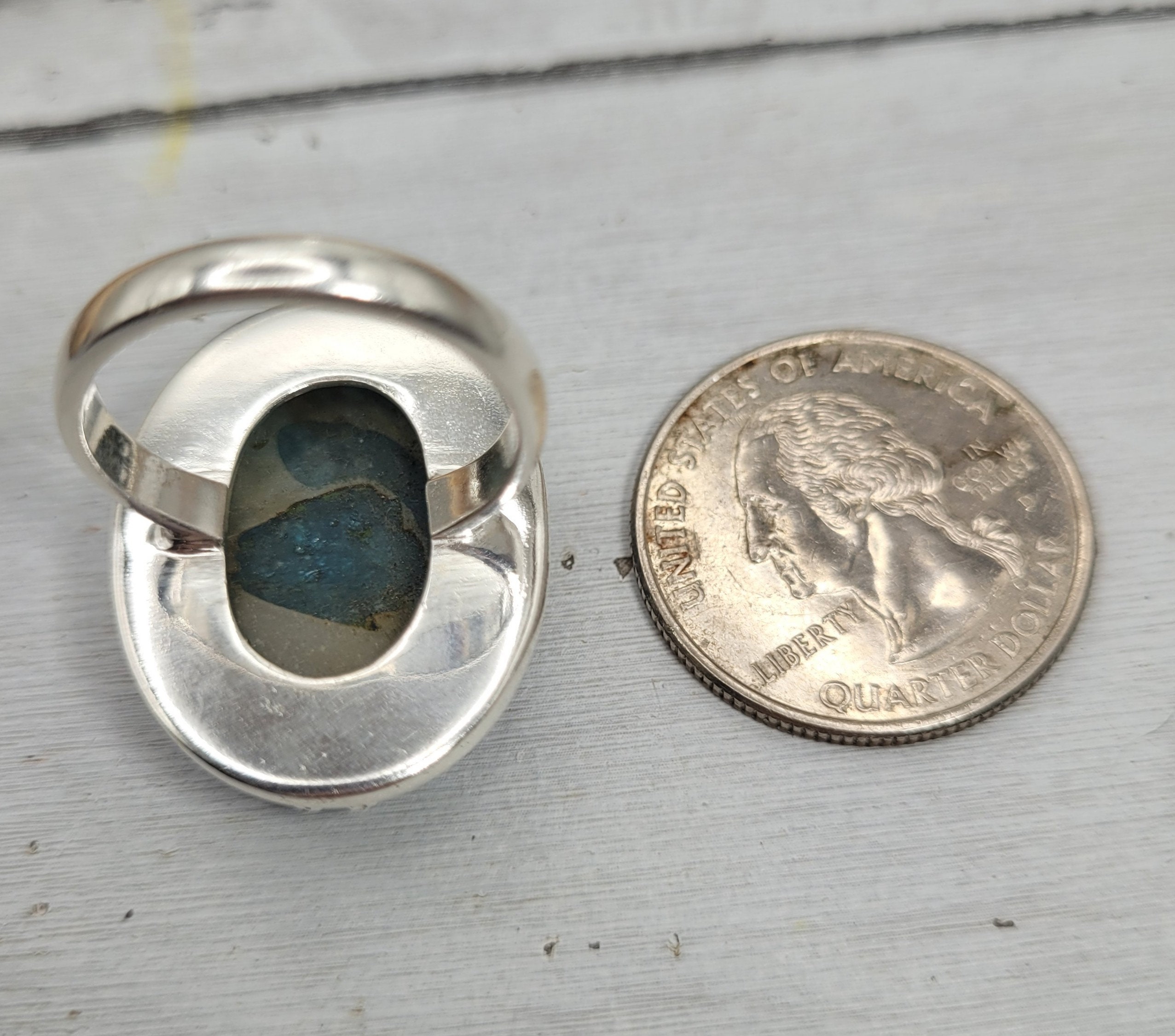 =.925 Sterling silver Handmade Artisan Apatite Ring Size 7 and weighs 12 grams The head in this ring measures 1" X 3/4" and has a lovely crown prong settings. This is a handpicked natural stone, the exact one shown in picture. The sterling silver is .925 and stamped. Each piece is handmade by artisans in my shop. The quality of the stones and the silver workmanship is impressive. Please look at other items in my store. I sell ready made jewelry with hand crafted silver work, pendants with a sterling silver bails and beautiful unique stones for jewelry wire wrapping and weaving. You will pay exact amount on shipping plus $1 for supplies and labor. All items are shipped within a couple of days after payment and are shipped USPS first class or international first class. Items are available for combined shipping, if invoice does not combine please email me and I will combine for you. Average shipping will be $4 to 4.50 for USPS first class. International shipping is available for exact amount of shipping plus $1 for labor and supplies also. We also accept returns for refund or exchange. Thanks for viewing my store