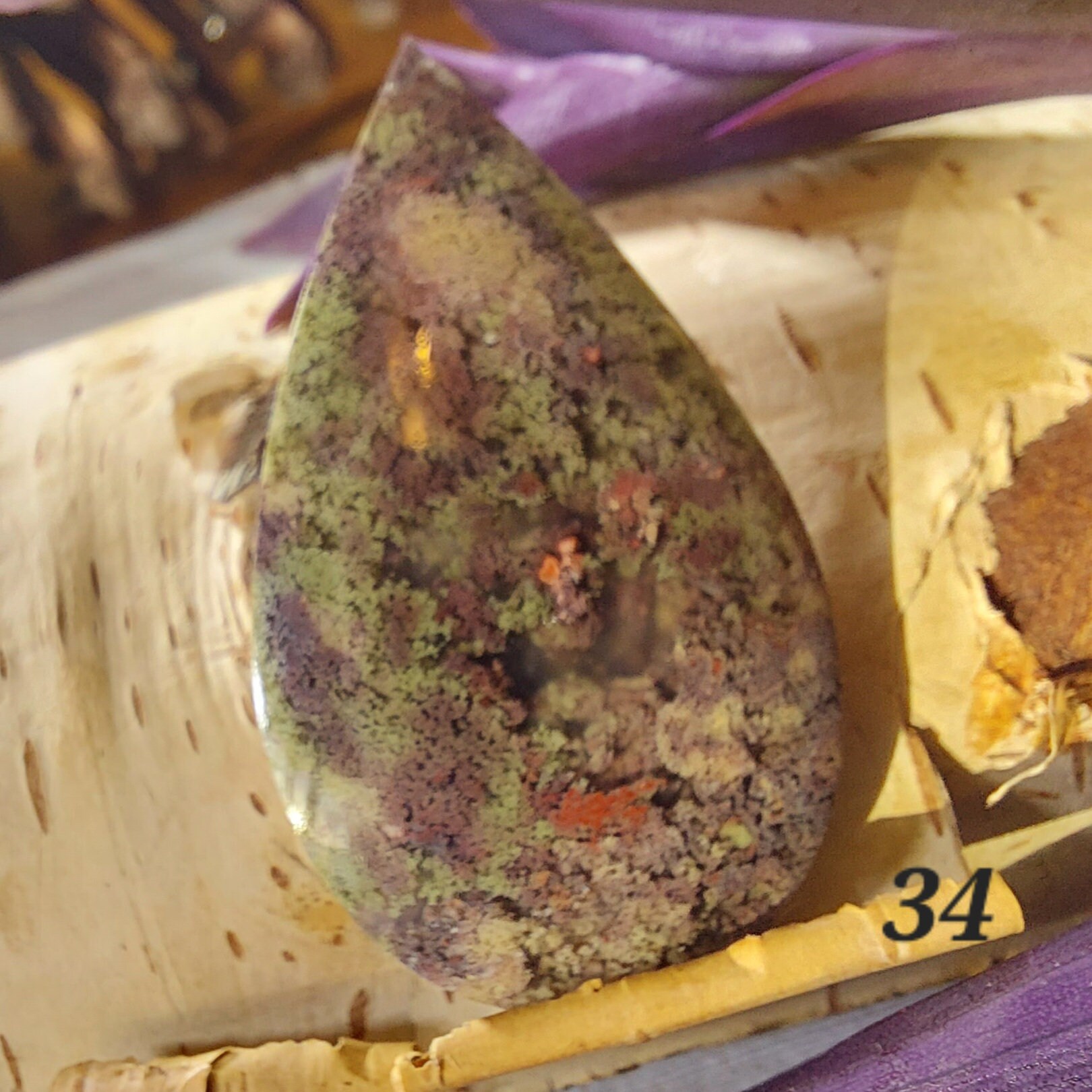 Moss Agate Cabochon, Scenic Moss Agate cabochon, Moss Agate Cabs, Moss Agate Scenic Cabochons, Green and Brown Moss Agate Cabochons. This is a pear shaped cabochon, is 40 carats and measures 24mm x 41mm GA34. If you are unhappy with any of our item please email us before you leave review. We stand behind our jewelry 100% with full refund if not completely satisfied!! This is a handpicked natural stone, the exact one shown in picture. Please look at other items in my store. I sell ready made jewelry with handcrafted silver work, pendants with a sterling silver bails and beautiful unique stones for jewelry wire wrapping and weaving. Any order to the US over $35 will ship for free. You will pay exact amount on shipping plus $1 for supplies and labor. All items are shipped within a couple of days after payment and are shipped USPS first class or international first class. Items are available for combined shipping, if invoice does not combine please email me and I will combine for you. Average shipping will be $4 to 5.50 for USPS first class. International shipping is available for exact amount of shipping plus $1 for labor and supplies also. We also accept returns for refund or exchange. Thanks for viewing my store and supporting a small business.
