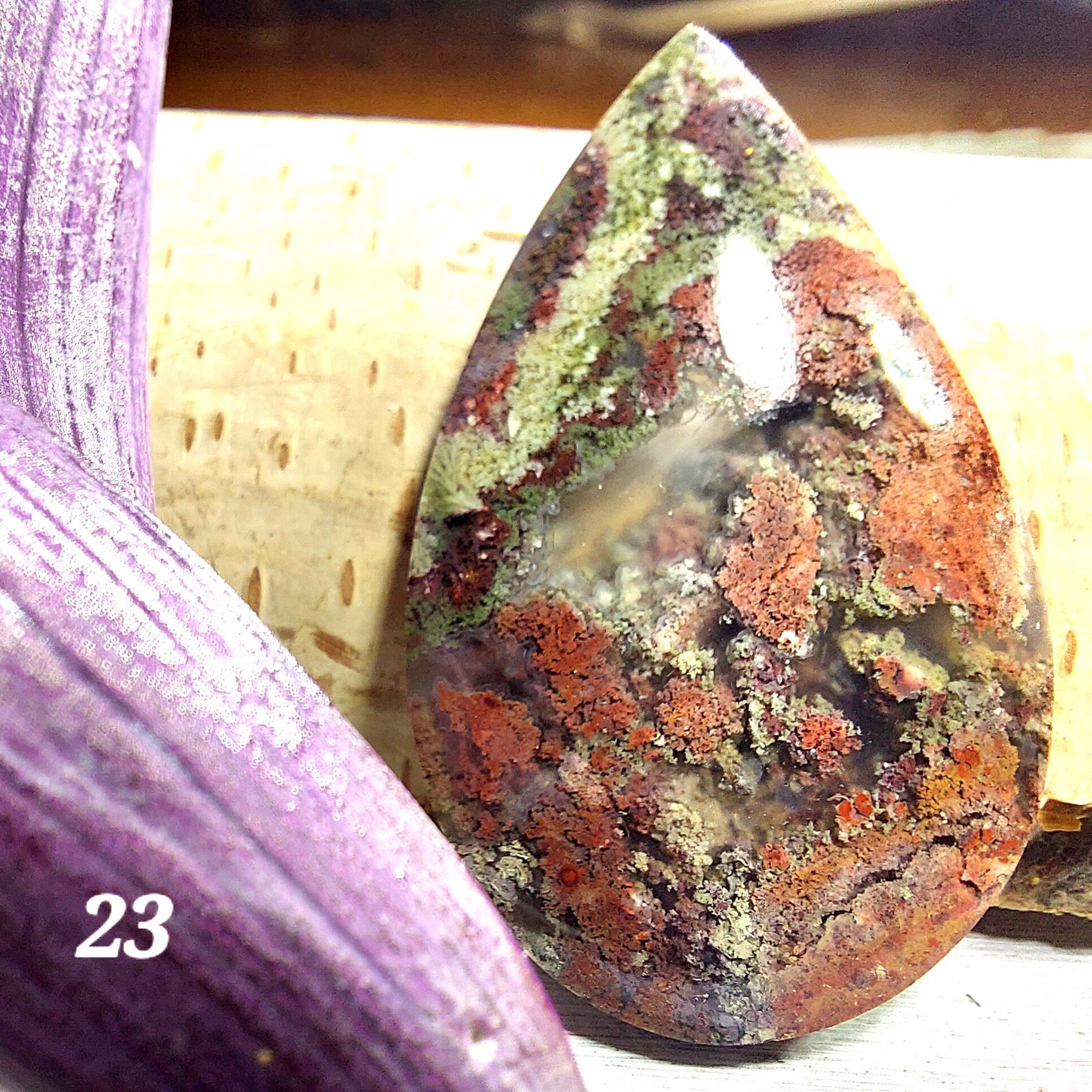 Moss Agate Cabochon, Scenic Moss Agate cabochon, Moss Agate Cabs, Moss Agate Scenic Cabochons, Green and Brown Moss Agate Cabochons. This is a pear shaped cabochon, is 50 carats and measures 25mm x 45mm GA23. If you are unhappy with any of our item please email us before you leave review. We stand behind our jewelry 100% with full refund if not completely satisfied!! This is a handpicked natural stone, the exact one shown in picture. Please look at other items in my store. I sell ready made jewelry with handcrafted silver work, pendants with a sterling silver bails and beautiful unique stones for jewelry wire wrapping and weaving. Any order to the US over $35 will ship for free. You will pay exact amount on shipping plus $1 for supplies and labor. All items are shipped within a couple of days after payment and are shipped USPS first class or international first class. Items are available for combined shipping, if invoice does not combine please email me and I will combine for you. Average shipping will be $4 to 5.50 for USPS first class. International shipping is available for exact amount of shipping plus $1 for labor and supplies also. We also accept returns for refund or exchange. Thanks for viewing my store and supporting a small business.