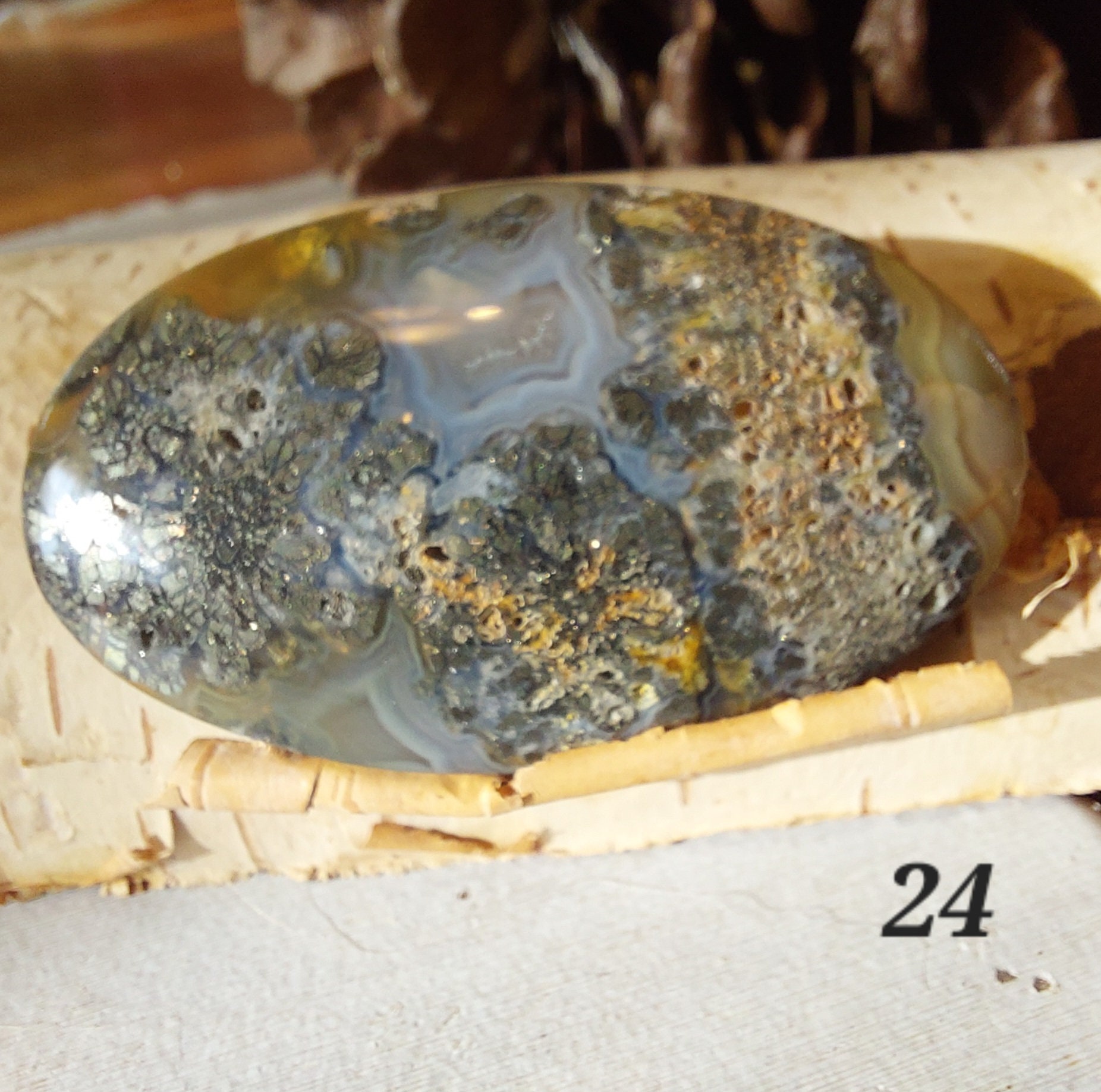 Moss Agate Cabochon, Scenic Moss Agate cabochon, Moss Agate Cabs, Moss Agate Scenic Cabochons, Multi Color Moss Agate Cabochon GA24. This is an oval cabochon weighing 90 carats and measures 48mm x 28mm. Drilling services and Sterling Silver bails available upon request! Please email for a price and picture of bails first. If