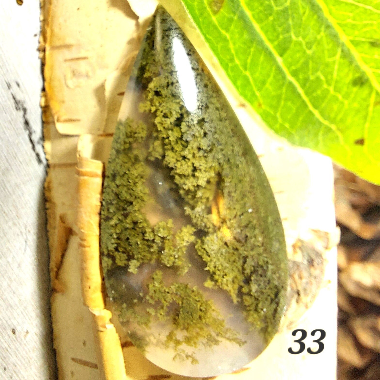 Moss Agate Cabochon, Scenic Moss Agate cabochon, Moss Agate Cabs, Moss Agate Scenic Cabochons, Green and Brown Moss Agate Cabochons. This is a pear shaped cabochon, is 40 carats and measures 20mm x 40mm GA33. If you are unhappy with any of our item please email us before you leave review. We stand behind our jewelry 100% with full refund if not completely satisfied!! This is a handpicked natural stone, the exact one shown in picture. Please look at other items in my store. I sell ready made jewelry with handcrafted silver work, pendants with a sterling silver bails and beautiful unique stones for jewelry wire wrapping and weaving. Any order to the US over $35 will ship for free. You will pay exact amount on shipping plus $1 for supplies and labor. All items are shipped within a couple of days after payment and are shipped USPS first class or international first class. Items are available for combined shipping, if invoice does not combine please email me and I will combine for you. Average shipping will be $4 to 5.50 for USPS first class. International shipping is available for exact amount of shipping plus $1 for labor and supplies also. We also accept returns for refund or exchange. Thanks for viewing my store and supporting a small business.