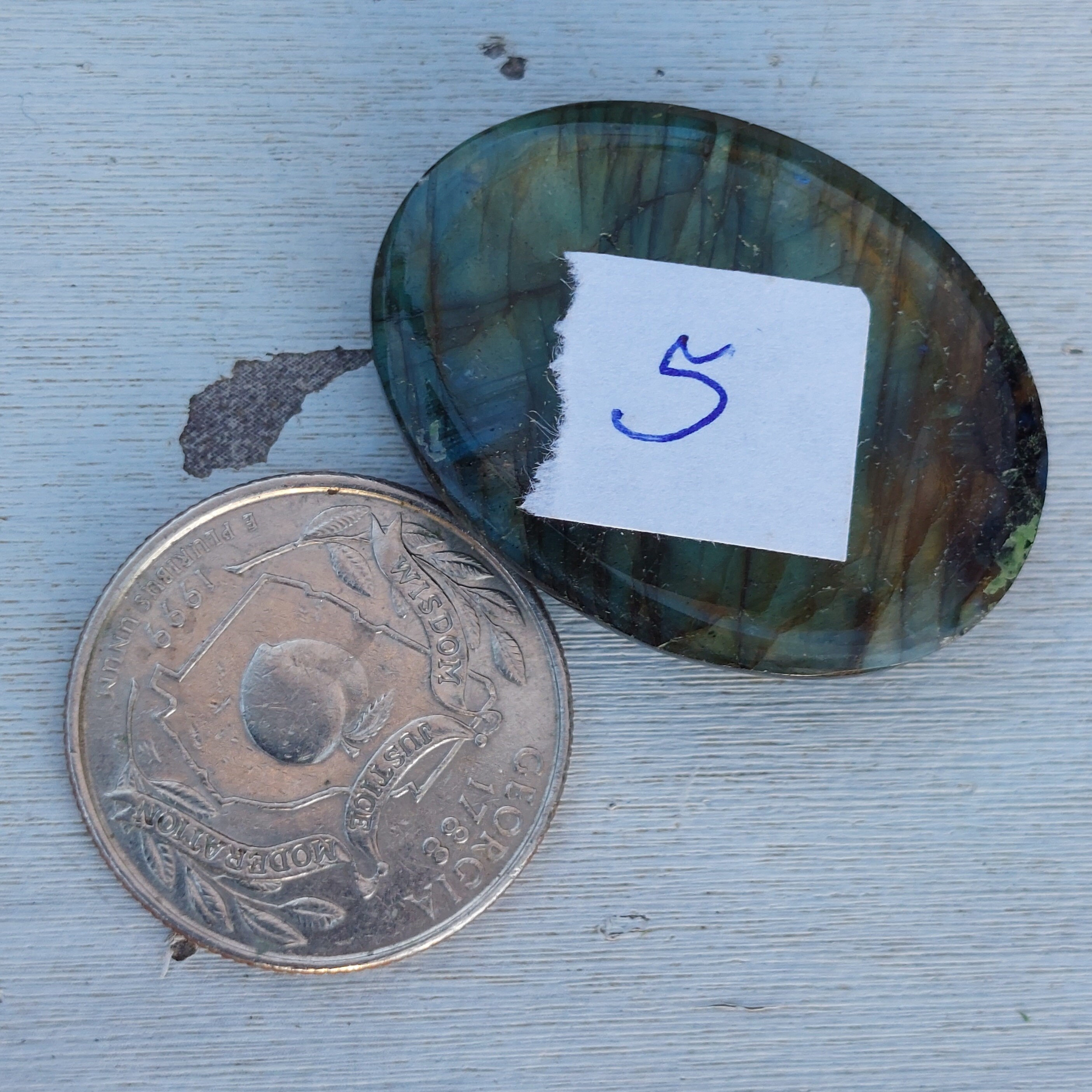 Natural Premium Blue Flash Labradorite Oval Cabochon 55ct 26mm x 35mm Wire Wrapping, Weaving, Pendant, Collector GB05. Looks MUCH better in person! Drilling services and Sterling Silver bails available upon request. Please email for a price and picture of bails first. This is a handpicked natural stone, the exact one shown in picture. Each piece is handmade by artisans in my shop. The quality of the stones and the silver craftmanship is impressive. Please look at other items in my store. I sell ready-made jewelry with handcrafted silver work, pendants with a sterling silver bails and beautiful unique stones for jewelry wire wrapping and weaving. You will pay exact amount on shipping plus $1 for supplies and labor. All items are shipped within a couple of days after payment and are shipped USPS first class or international first class. Items are available for combined shipping, if invoice does not combine, please email me and I will combine for you. Average shipping will be $4 to 4.50 for USPS first class. International shipping is available for exact amount of shipping plus $1 for labor and supplies also. We also accept returns for refund or exchange. Thanks for viewing my store.