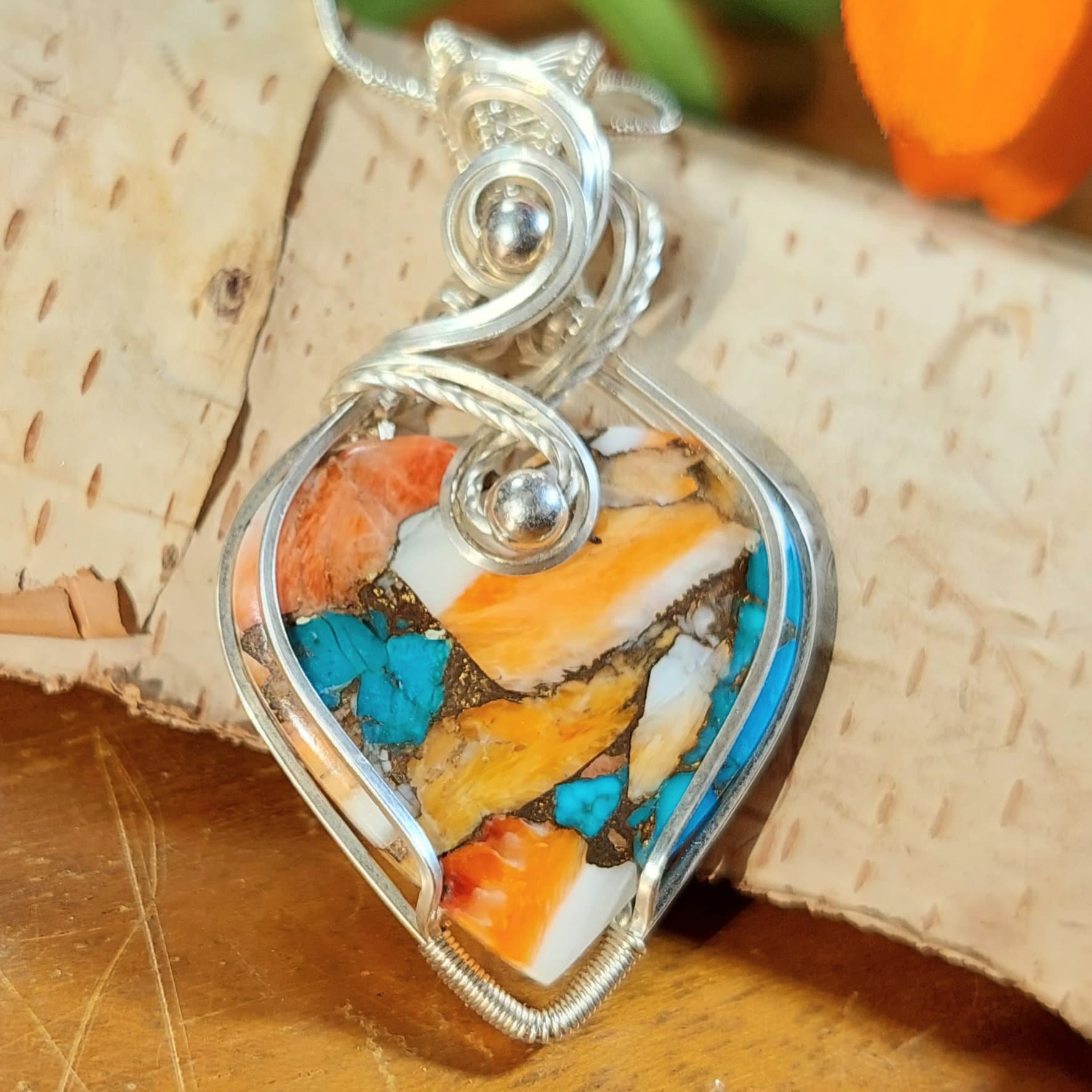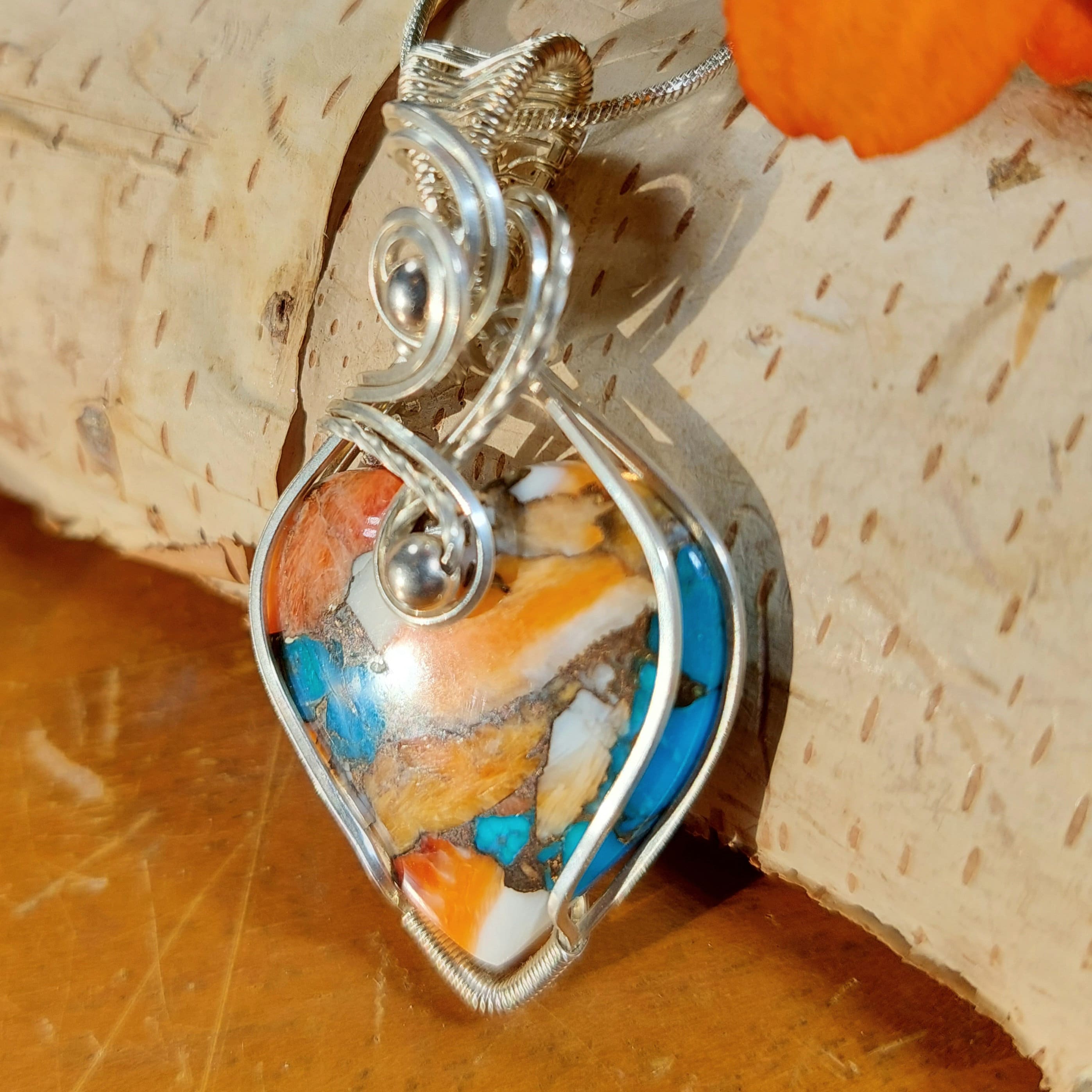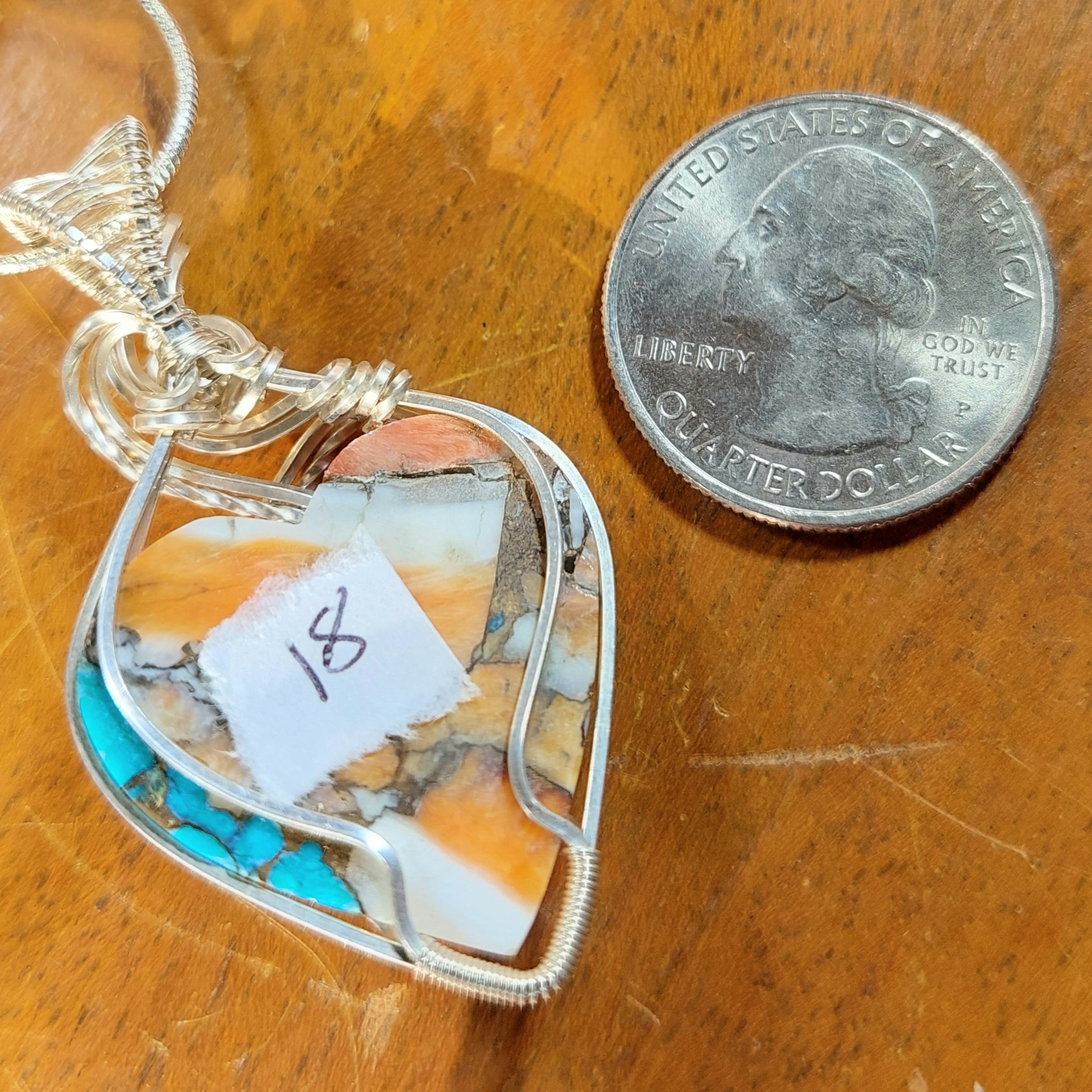 Natural Premium Multi Color Spiny Oyster Wire Wrapped .925 Sterling Silver Pendant 1 & 1/4" x 2" 10 Grams GC18. Handmade Heart-Shaped Wrapped Solid Sterling Silver. Absolutely gorgeous designer hand wrapped Sterling Silver with stunning detailed craftmanship. If you are unhappy with any of our items please email us before you leave review. We stand behind our jewelry 100% with full refund if not completely satisfied!! This is a handpicked natural stone, the exact one shown in picture. The sterling silver is .925 and stamped. Each piece is handmade by artisans in my shop. The quality of the stones and the silver craftmanship is impressive in all items. Please look at other items in my store. I sell ready made jewelry with handcrafted silver work, pendants with a sterling silver bails and beautiful unique stones for jewelry wire wrapping and weaving. You will pay exact amount on shipping plus $1 for supplies and labor. All items are shipped within a couple of days after payment and are shipped USPS first class or international first class. Items are available for combined shipping, if invoice does not combine please email me and I will combine for you. Average shipping will be $4 to 4.50 for USPS first class. International shipping is available for exact amount of shipping plus $1 for labor and supplies also. We also accept returns for refund or exchange. Thanks for viewing my store.