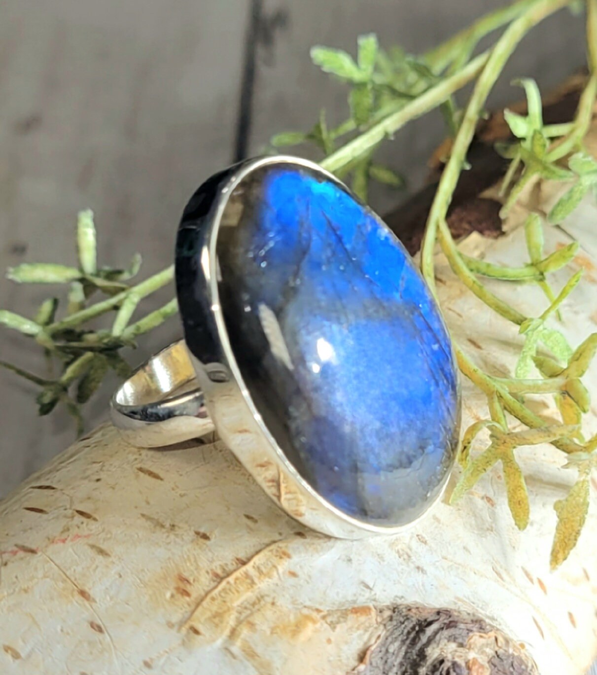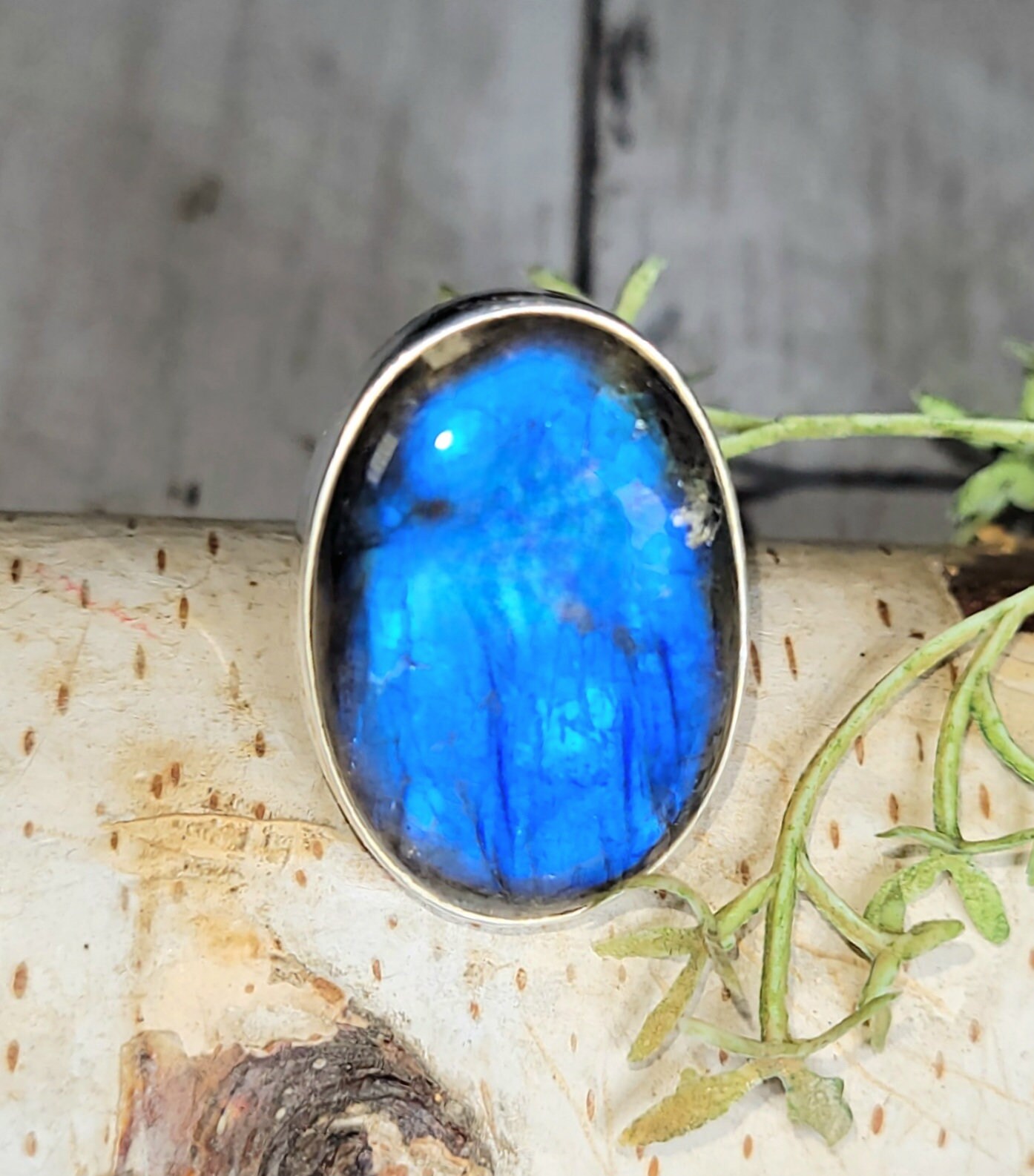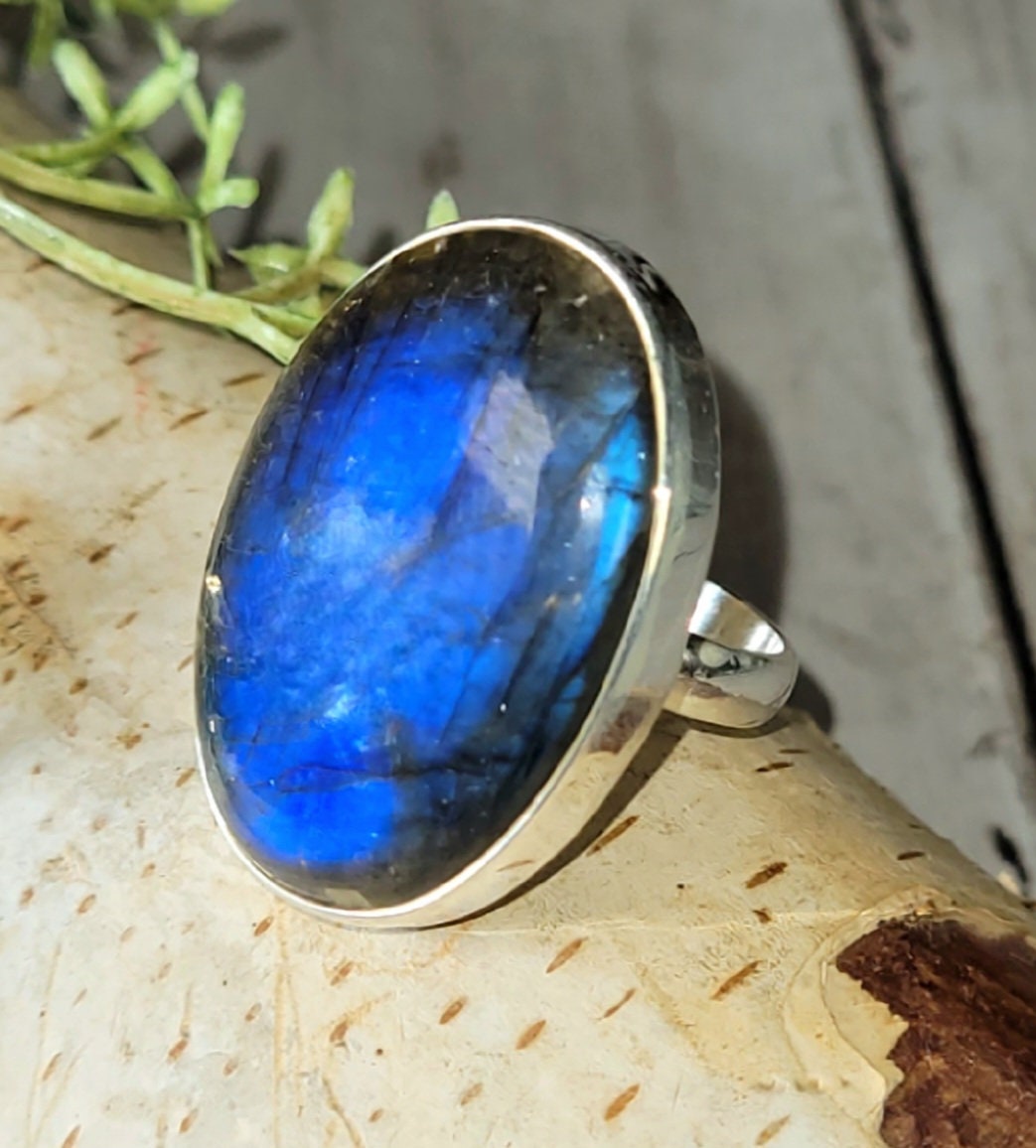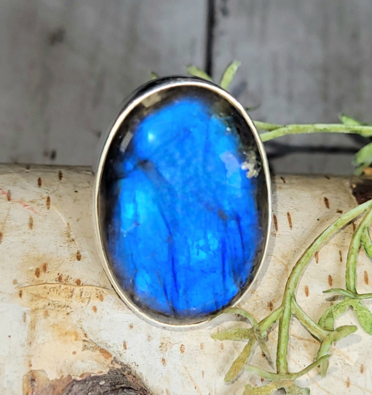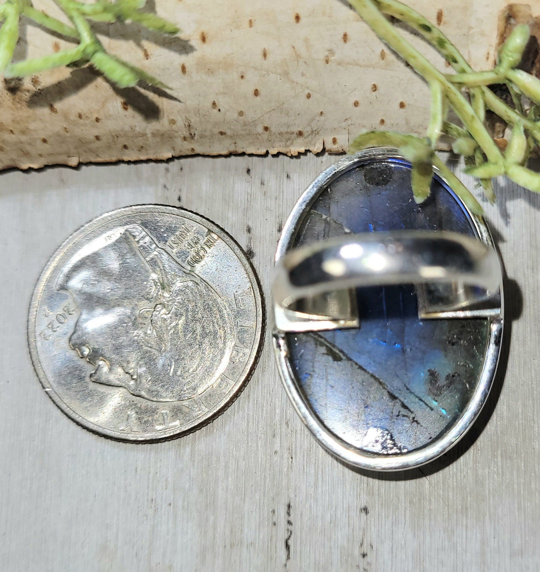 Natural AAA Grade Blue Flash Oval Labradorite Handmade .925 Sterling Silver Ring Size 6 11.5 Grams 1 1/8" x 7/8" GS28. This is a handpicked natural stone, the exact one shown in picture. The sterling silver is .925 and stamped. Each piece is hand made by artisans in my shop. The quality of the stones and the silver workmanship is impressive. Please look at other items in my store. I sell ready made jewelry with hand crafted silver work, pendants with a sterling silver bails and beautiful unique cabochons for jewelry wire wrapping and weaving. You will pay exact amount on shipping plus $1 for supplies and labor. All items are shipped within a couple of days after payment and are shipped USPS first class or international first class. Items are available for combined shipping, if invoice does not combine please email me and I will combine for you. Average shipping will be $4 to 4.50 for USPS first class. International shipping is available for exact amount of shipping plus $1 for labor and supplies also. We also accept returns for refund or exchange. Thanks for viewing my store