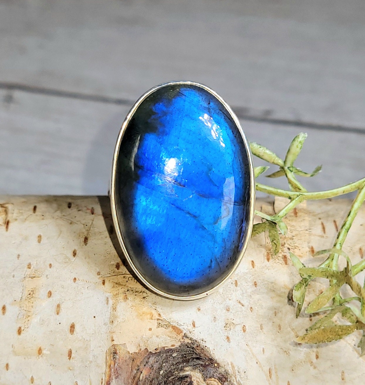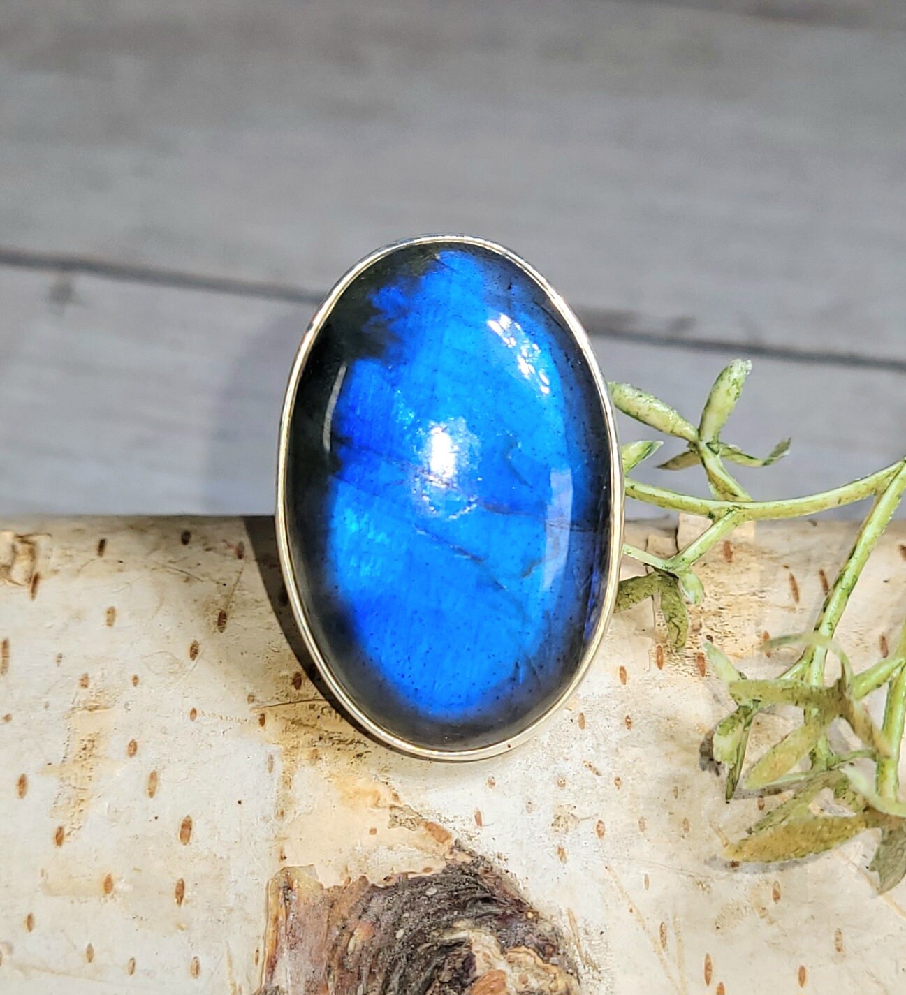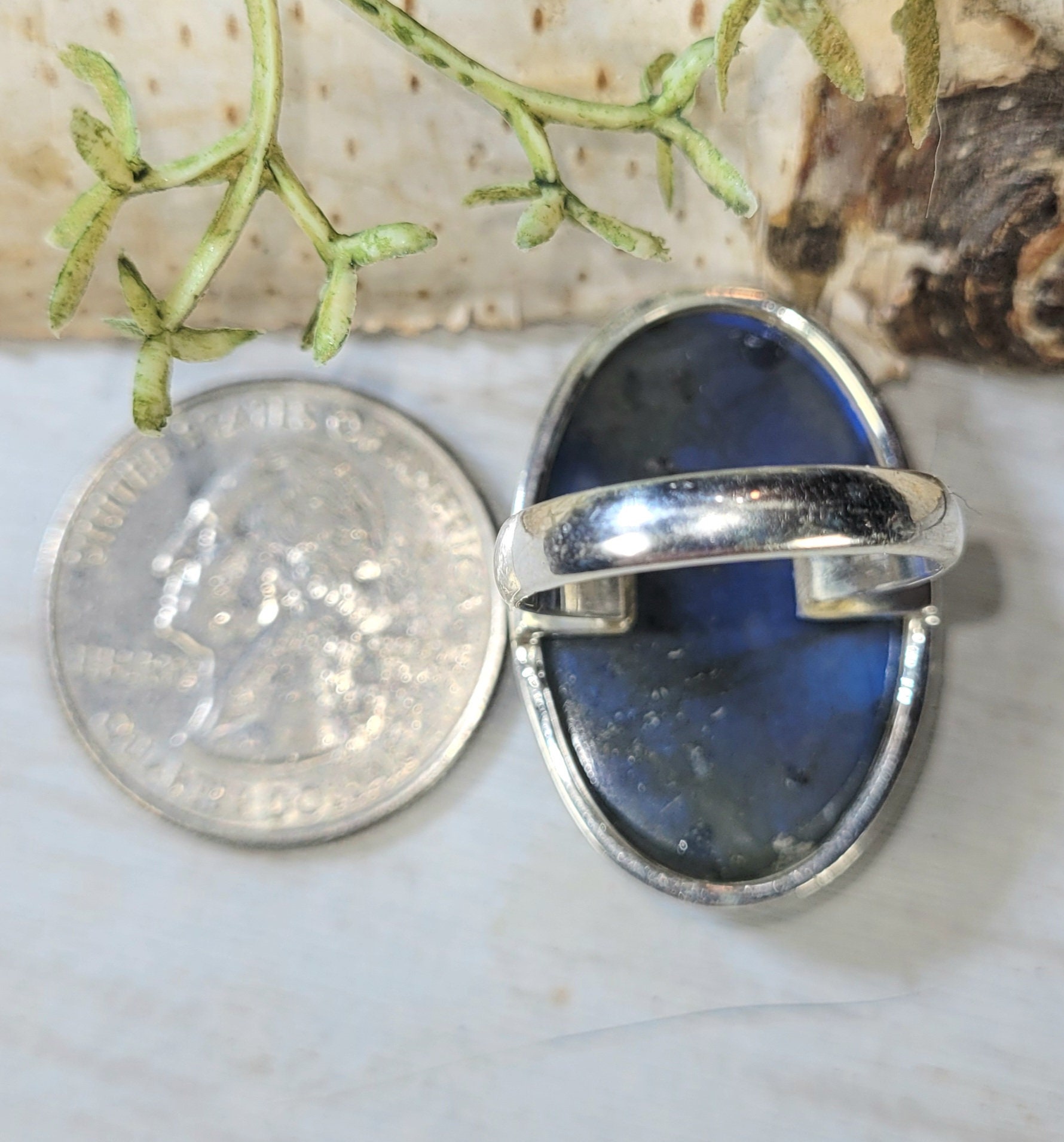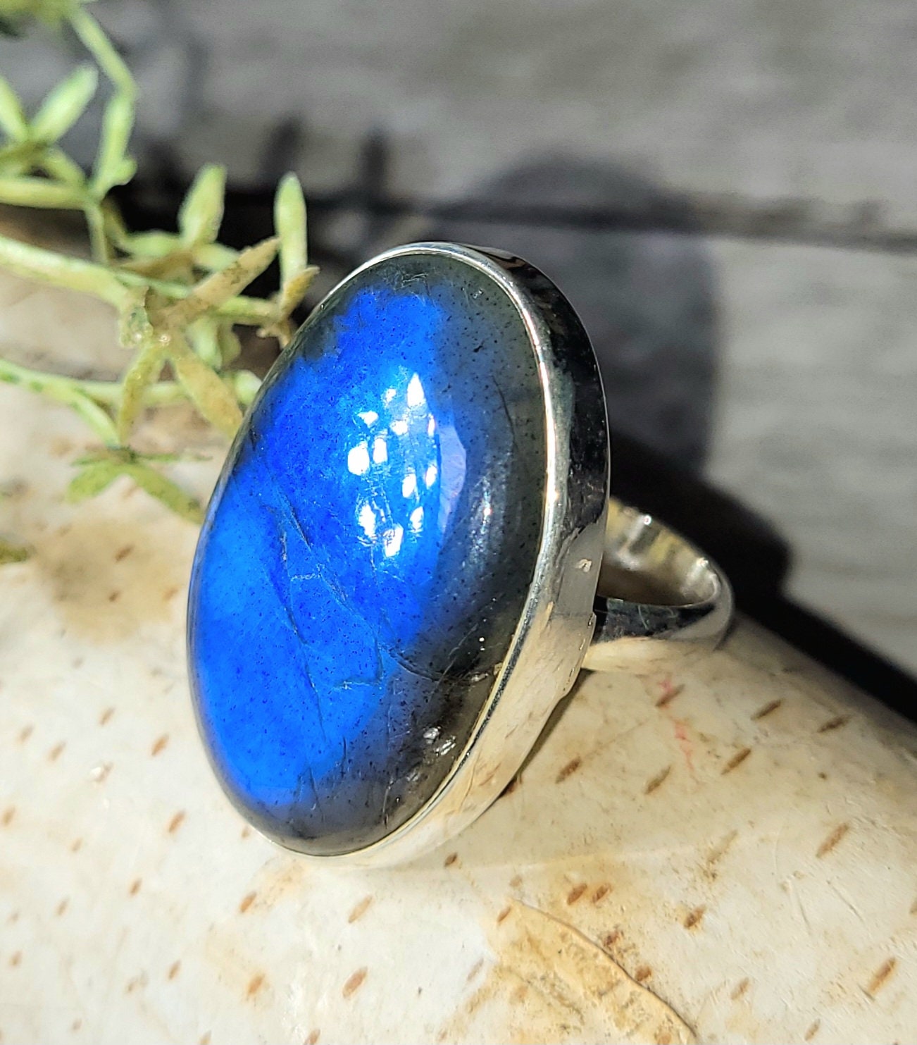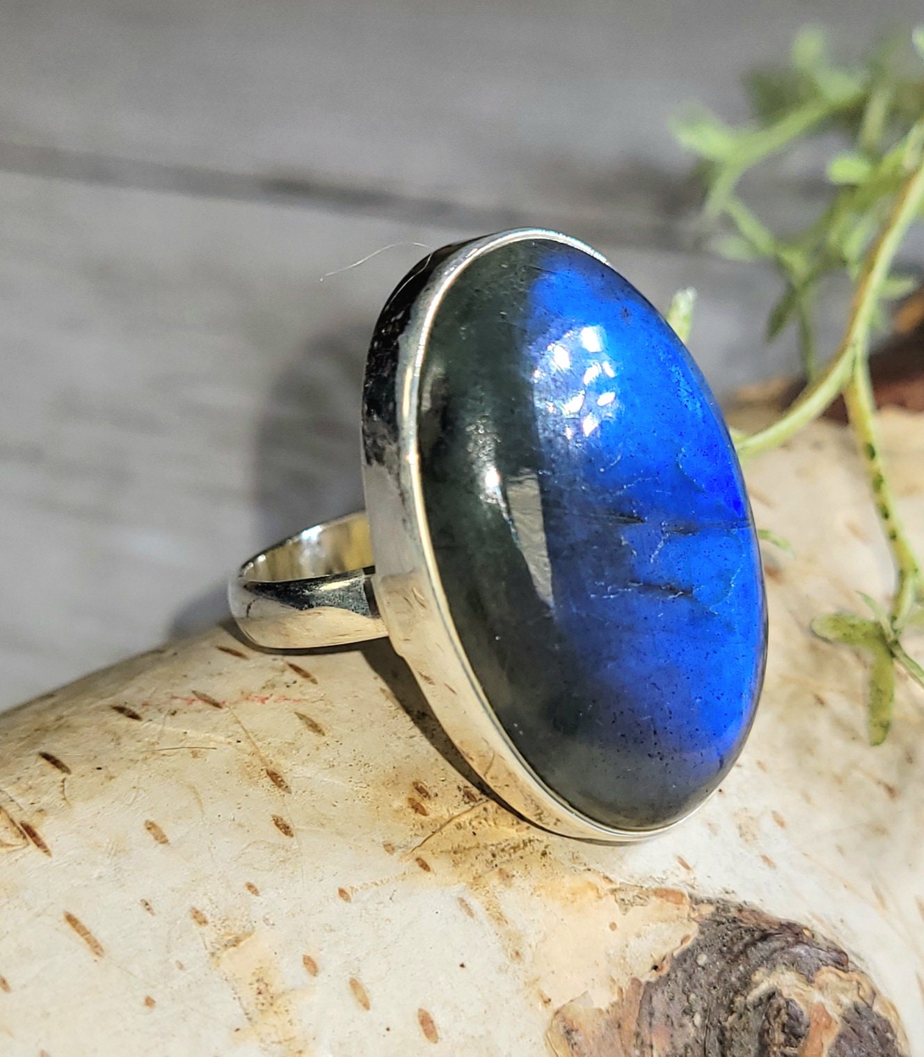 Natural AAA Grade Blue Flash Oval Labradorite Handmade .925 Sterling Silver Ring Size 7 11.4 Grams 1 3/16" x 7/8" GR11. This is a handpicked natural stone, the exact one shown in picture. The sterling silver is .925 and stamped. Each piece is hand made by artisans in my shop. The quality of the stones and the silver workmanship is impressive. Please look at other items in my store. I sell ready made jewelry with hand crafted silver work, pendants with a sterling silver bails and beautiful unique cabochons for jewelry wire wrapping and weaving. You will pay exact amount on shipping plus $1 for supplies and labor. All items are shipped within a couple of days after payment and are shipped USPS first class or international first class. Items are available for combined shipping, if invoice does not combine please email me and I will combine for you. Average shipping will be $4 to 4.50 for USPS first class. International shipping is available for exact amount of shipping plus $1 for labor and supplies also. We also accept returns for refund or exchange. Thanks for viewing my store