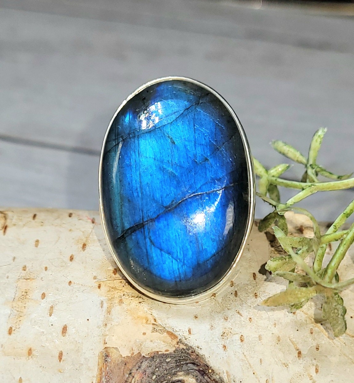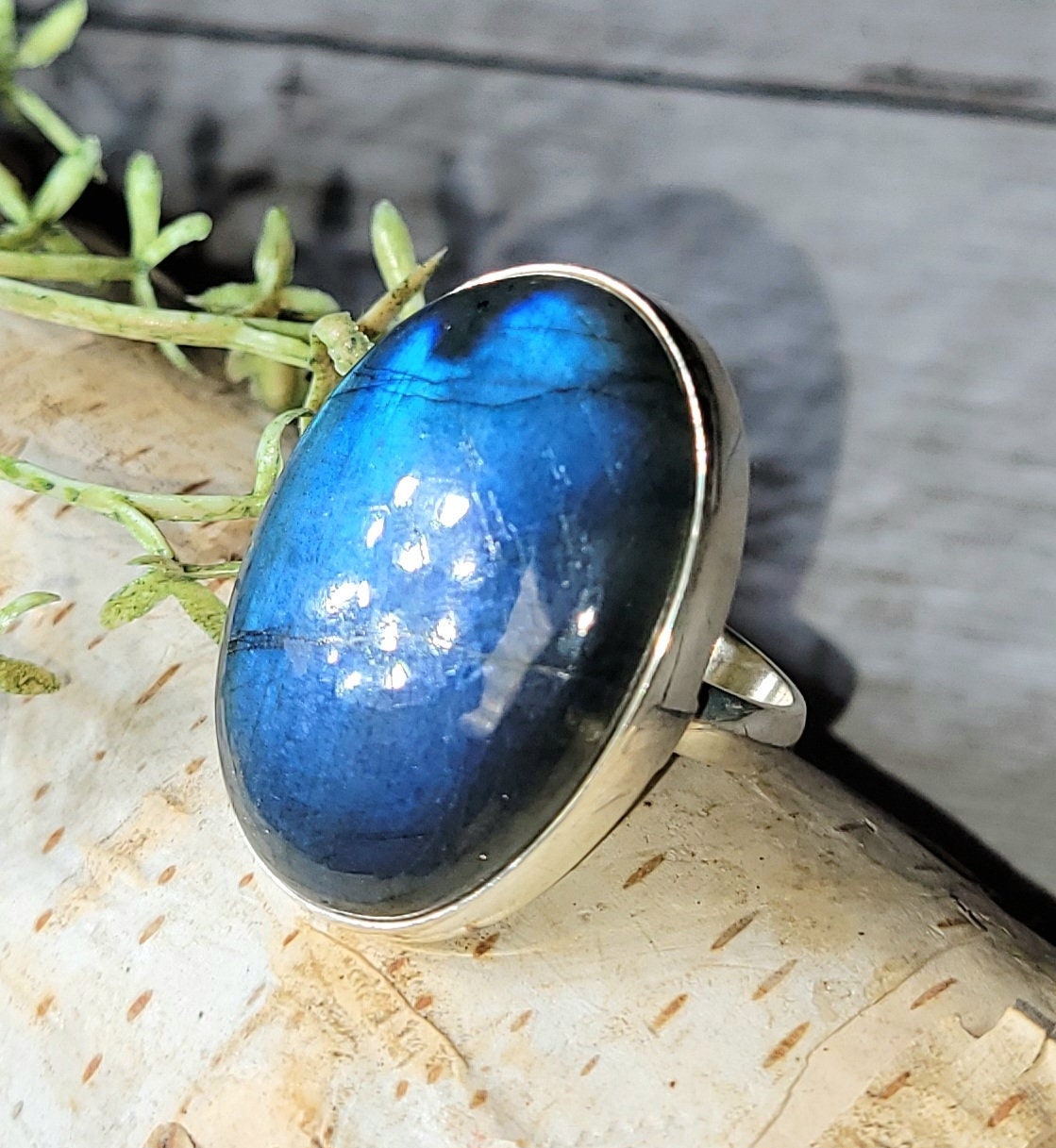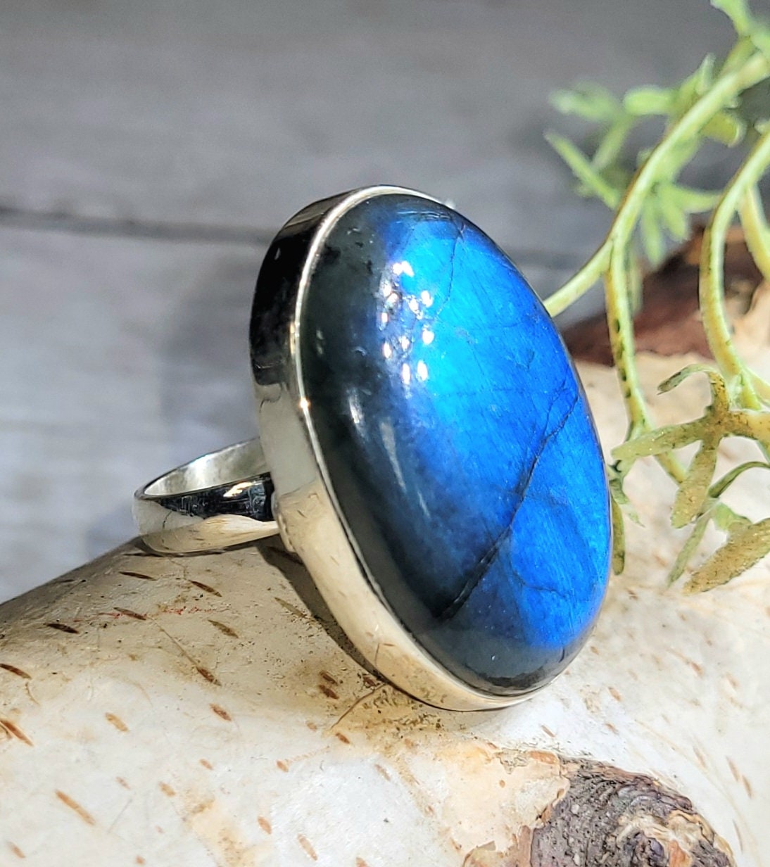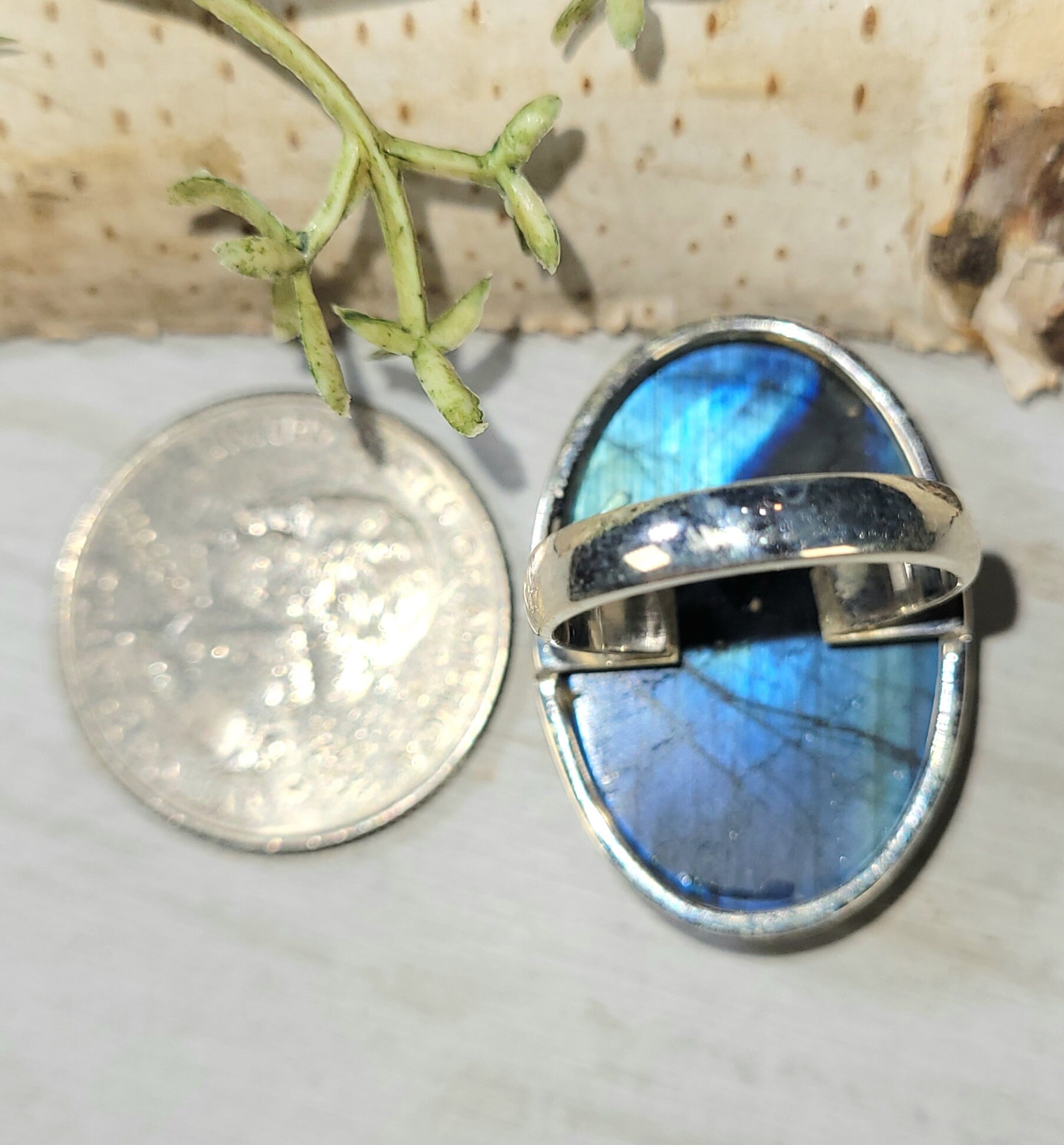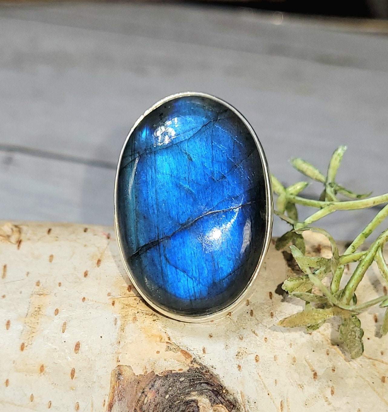 Natural AAA Grade Blue Flash Oval Labradorite Handmade .925 Sterling Silver Ring Size 7 11.3 Grams 1 1/8" x 7/8" GR17. This is a handpicked natural stone, the exact one shown in picture. The sterling silver is .925 and stamped. Each piece is hand made by artisans in my shop. The quality of the stones and the silver workmanship is impressive. Please look at other items in my store. I sell ready made jewelry with hand crafted silver work, pendants with a sterling silver bails and beautiful unique cabochons for jewelry wire wrapping and weaving. You will pay exact amount on shipping plus $1 for supplies and labor. All items are shipped within a couple of days after payment and are shipped USPS first class or international first class. Items are available for combined shipping, if invoice does not combine please email me and I will combine for you. Average shipping will be $4 to 4.50 for USPS first class. International shipping is available for exact amount of shipping plus $1 for labor and supplies also. We also accept returns for refund or exchange. Thanks for viewing my store