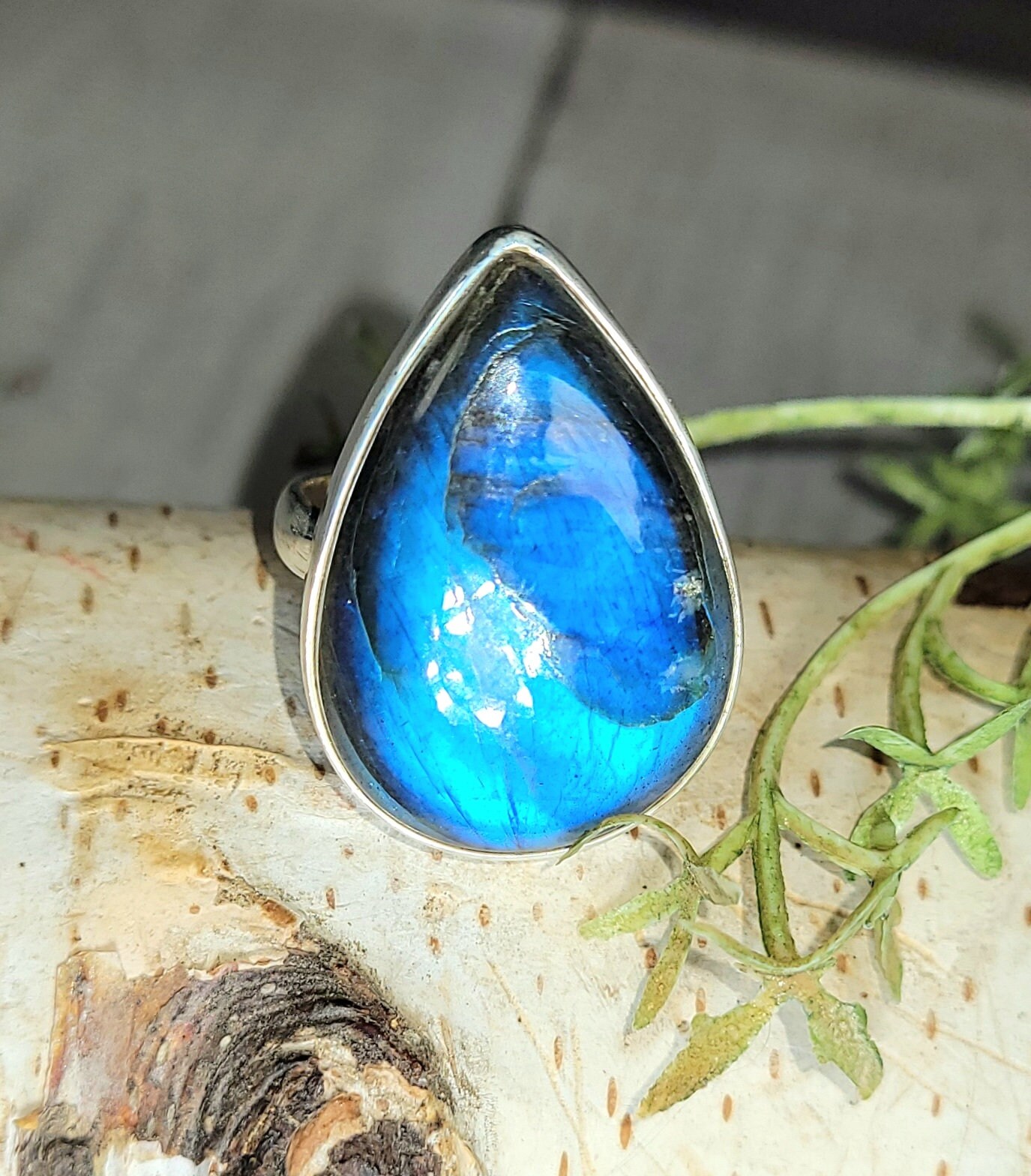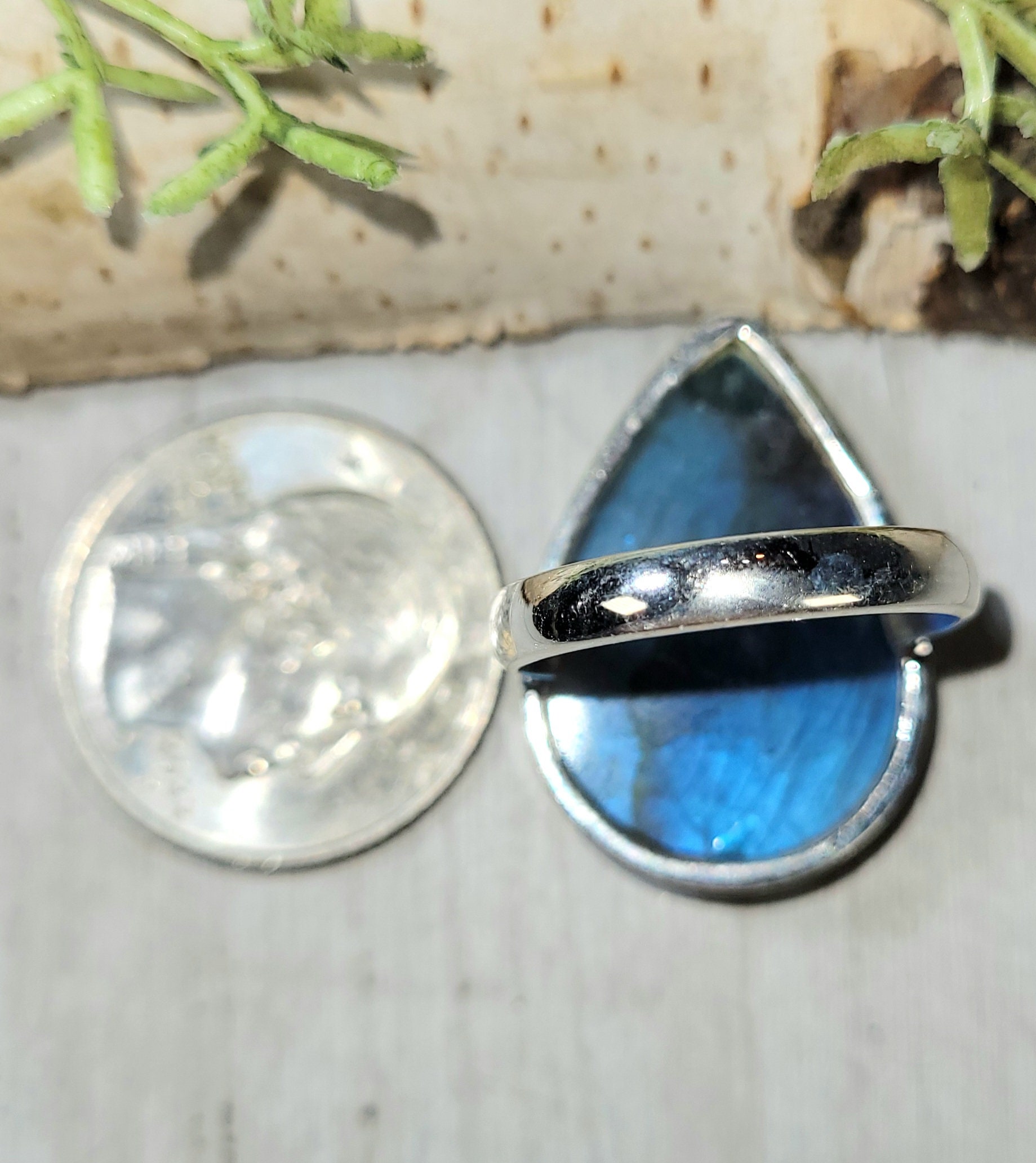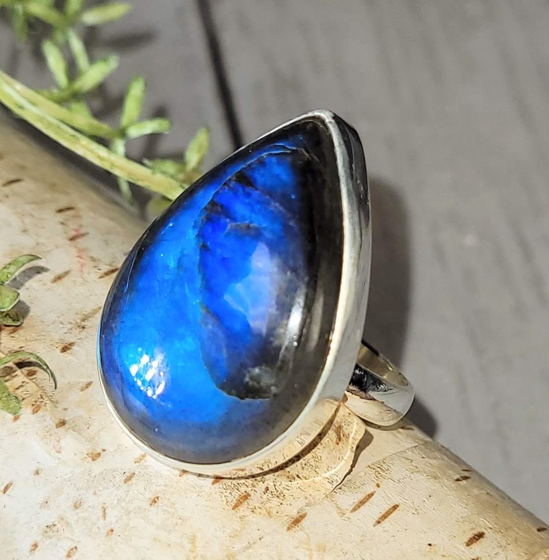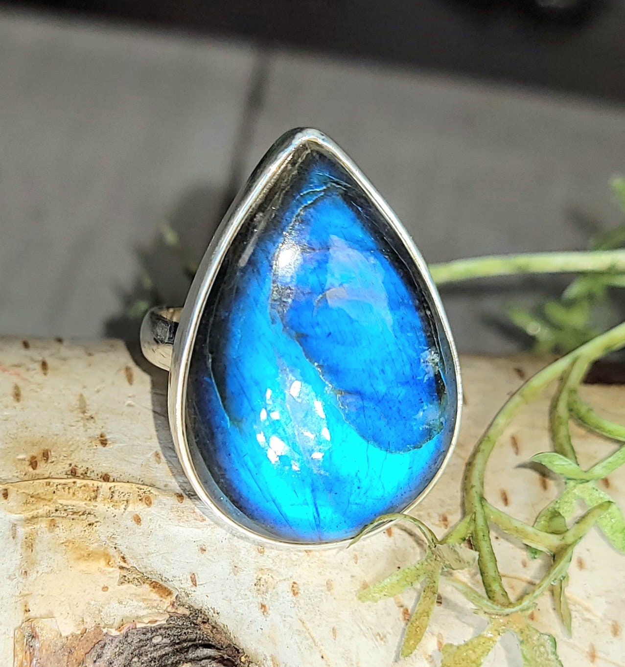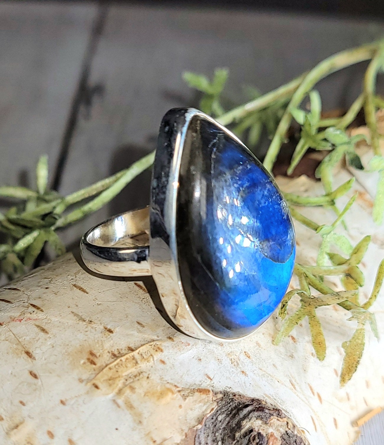 Natural AAA Grade Blue Flash Pear Labradorite Handmade .925 Sterling Silver Ring Size 7.5 8.7 Grams face measures slightly over an 1" x 7/8" GS27. This is a handpicked natural stone, the exact one shown in picture. The sterling silver is .925 and stamped. Each piece is hand made by artisans in my shop. The quality of the stones and the silver workmanship is impressive. Please look at other items in my store. I sell ready made jewelry with hand crafted silver work, pendants with a sterling silver bails and beautiful unique cabochons for jewelry wire wrapping and weaving. You will pay exact amount on shipping plus $1 for supplies and labor. All items are shipped within a couple of days after payment and are shipped USPS first class or international first class. Items are available for combined shipping, if invoice does not combine please email me and I will combine for you. Average shipping will be $4 to 4.50 for USPS first class. International shipping is available for exact amount of shipping plus $1 for labor and supplies also. We also accept returns for refund or exchange. Thanks for viewing my store