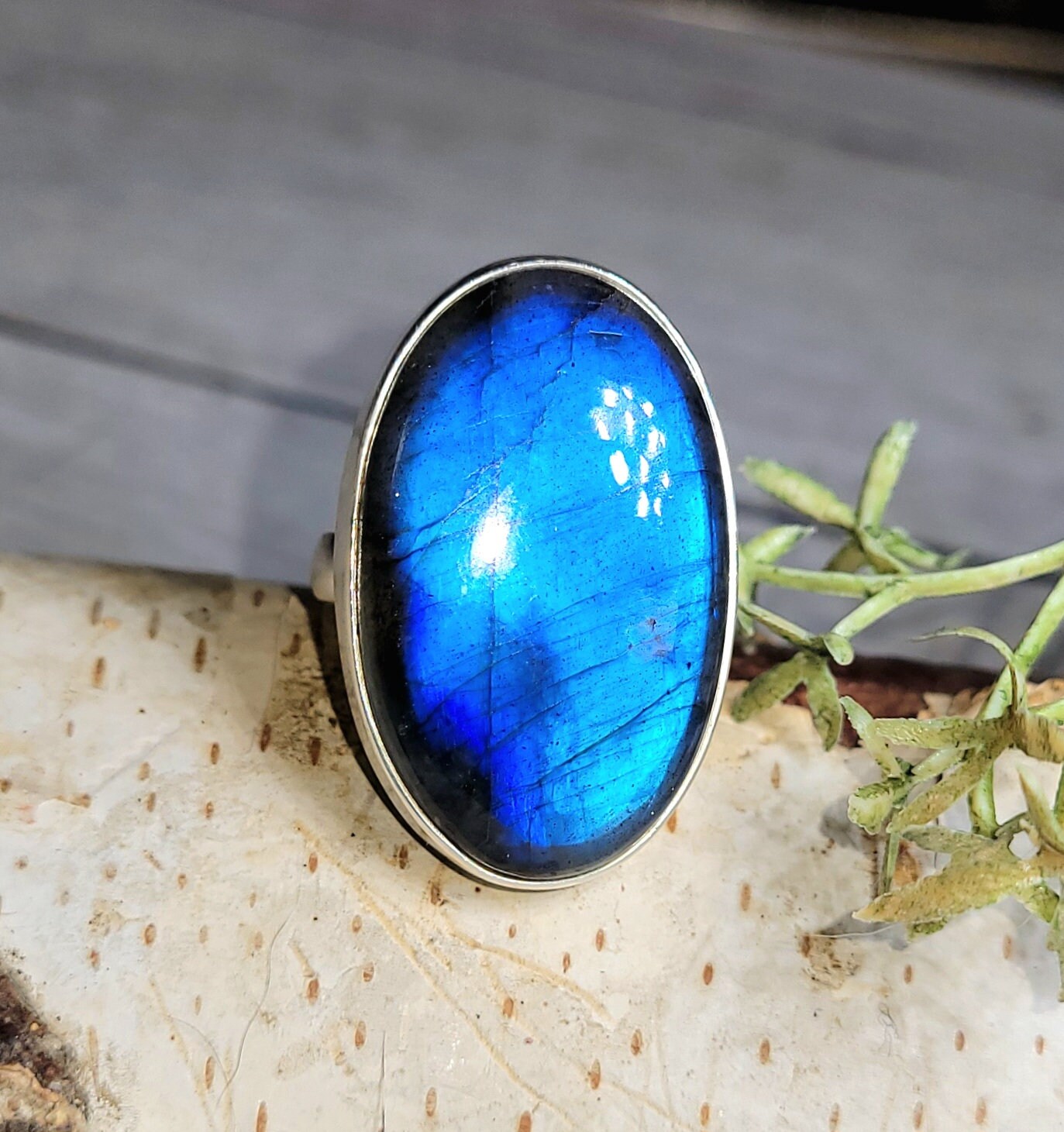 Natural AAA Grade Blue Flash Oval Labradorite Handmade .925 Sterling Silver Ring Size 6 13.7 Grams 1 1/4" x 15/16" GR12. This is a handpicked natural stone, the exact one shown in picture. The sterling silver is .925 and stamped. Each piece is hand made by artisans in my shop. The quality of the stones and the silver workmanship is impressive. Please look at other items in my store. I sell ready made jewelry with hand crafted silver work, pendants with a sterling silver bails and beautiful unique cabochons for jewelry wire wrapping and weaving. You will pay exact amount on shipping plus $1 for supplies and labor. All items are shipped within a couple of days after payment and are shipped USPS first class or international first class. Items are available for combined shipping, if invoice does not combine please email me and I will combine for you. Average shipping will be $4 to 4.50 for USPS first class. International shipping is available for exact amount of shipping plus $1 for labor and supplies also. We also accept returns for refund or exchange. Thanks for viewing my store