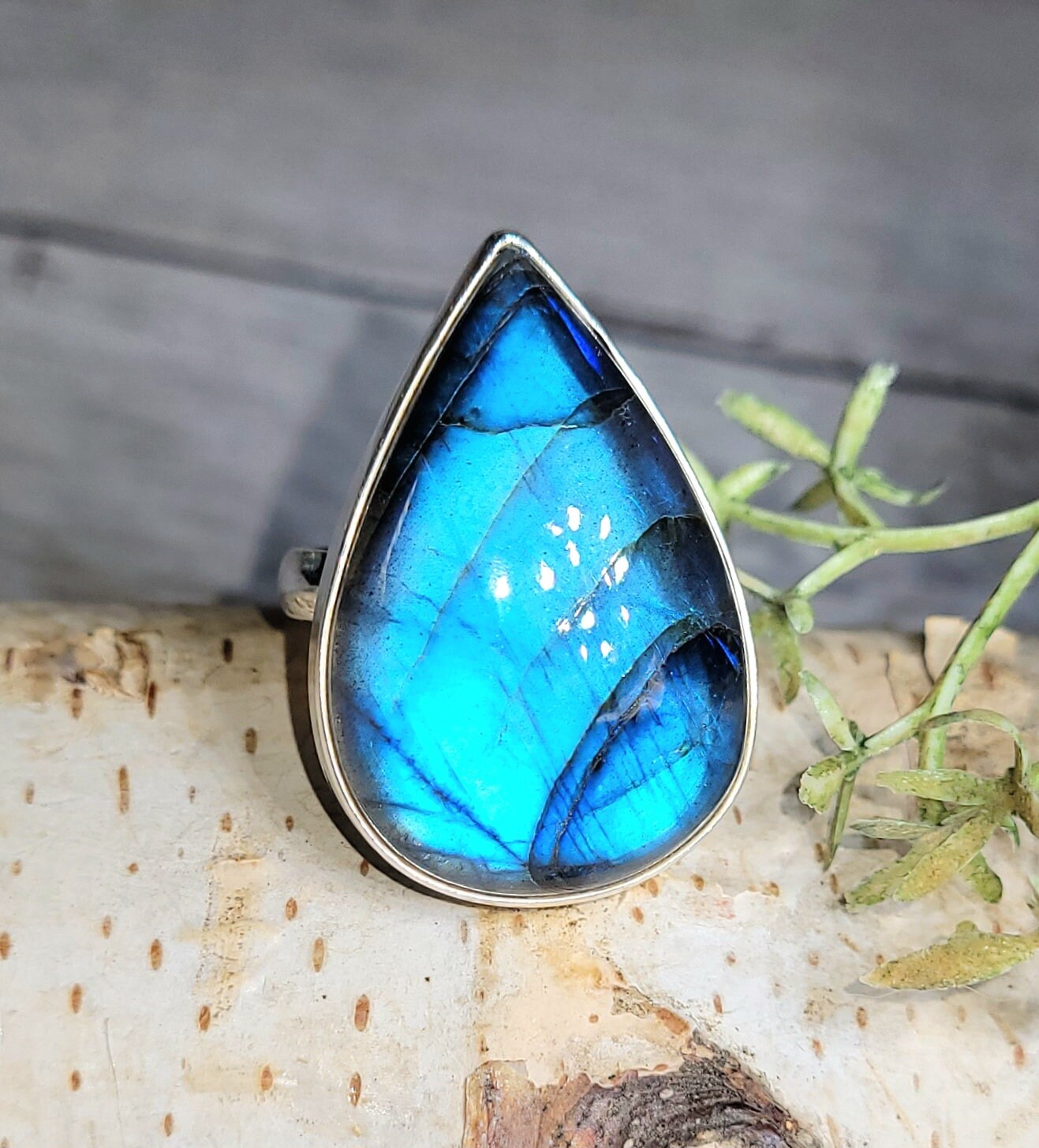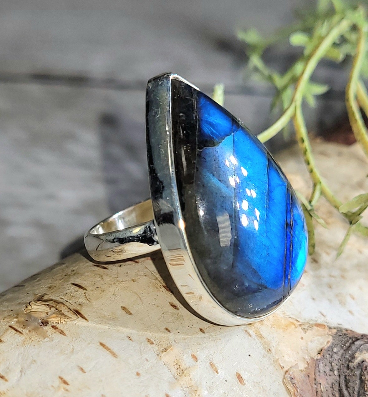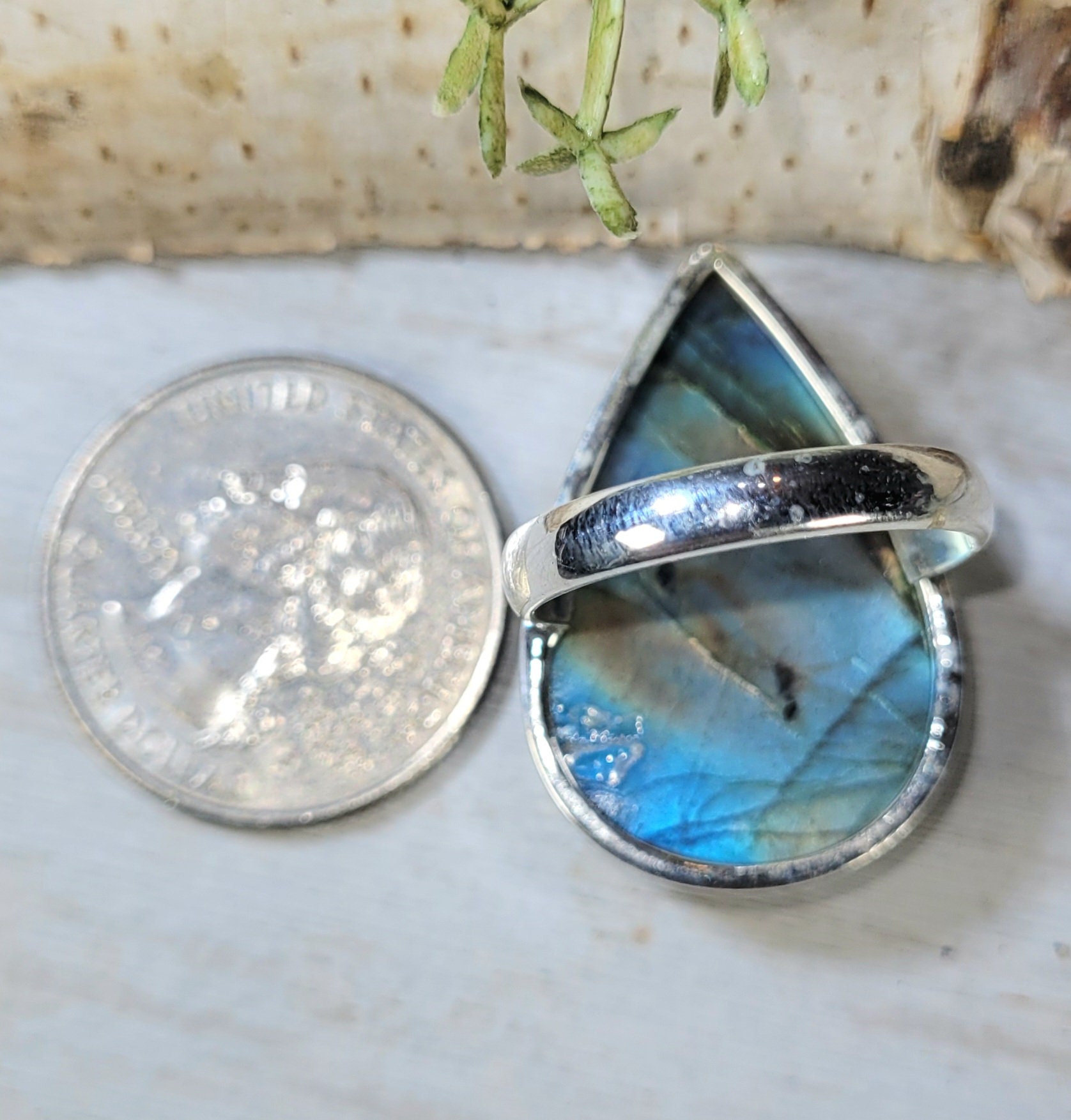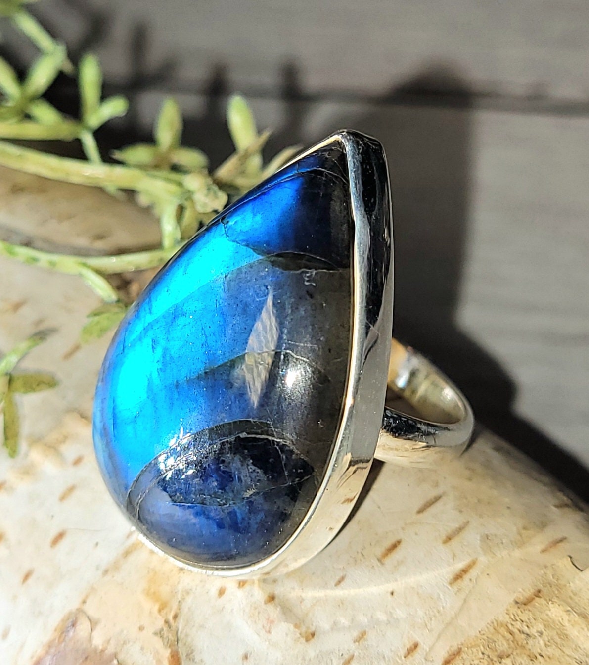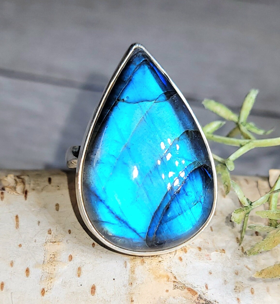 Natural AAA Grade Blue Flash Pear Labradorite Handmade .925 Sterling Silver Ring Size 7.75 10 Grams 1 3/16" x 15/16" GR18. This is a handpicked natural stone, the exact one shown in picture. The sterling silver is .925 and stamped. Each piece is hand made by artisans in my shop. The quality of the stones and the silver workmanship is impressive. Please look at other items in my store. I sell ready made jewelry with hand crafted silver work, pendants with a sterling silver bails and beautiful unique cabochons for jewelry wire wrapping and weaving. You will pay exact amount on shipping plus $1 for supplies and labor. All items are shipped within a couple of days after payment and are shipped USPS first class or international first class. Items are available for combined shipping, if invoice does not combine please email me and I will combine for you. Average shipping will be $4 to 4.50 for USPS first class. International shipping is available for exact amount of shipping plus $1 for labor and supplies also. We also accept returns for refund or exchange. Thanks for viewing my store