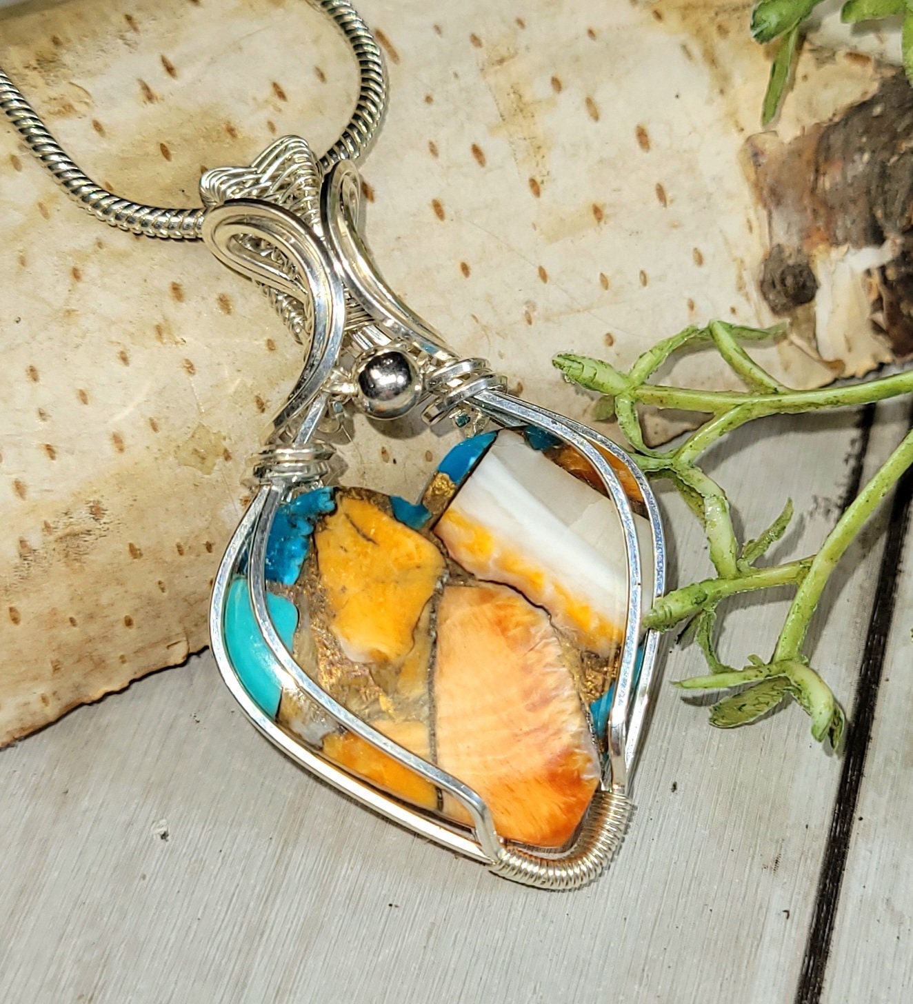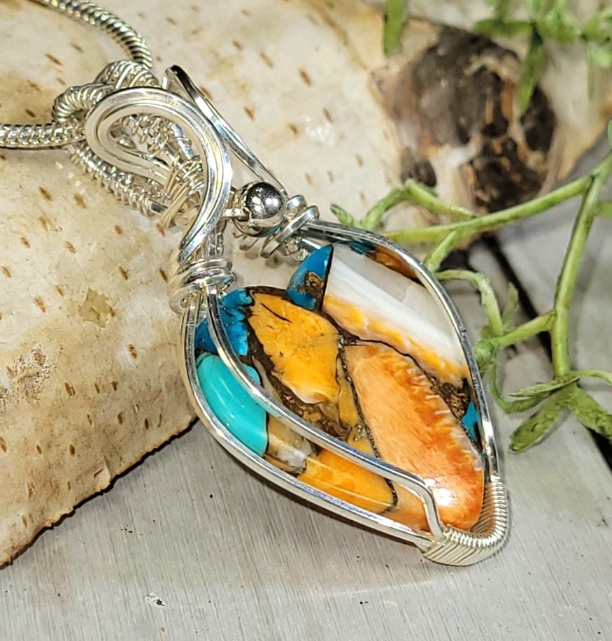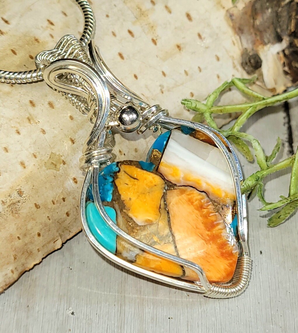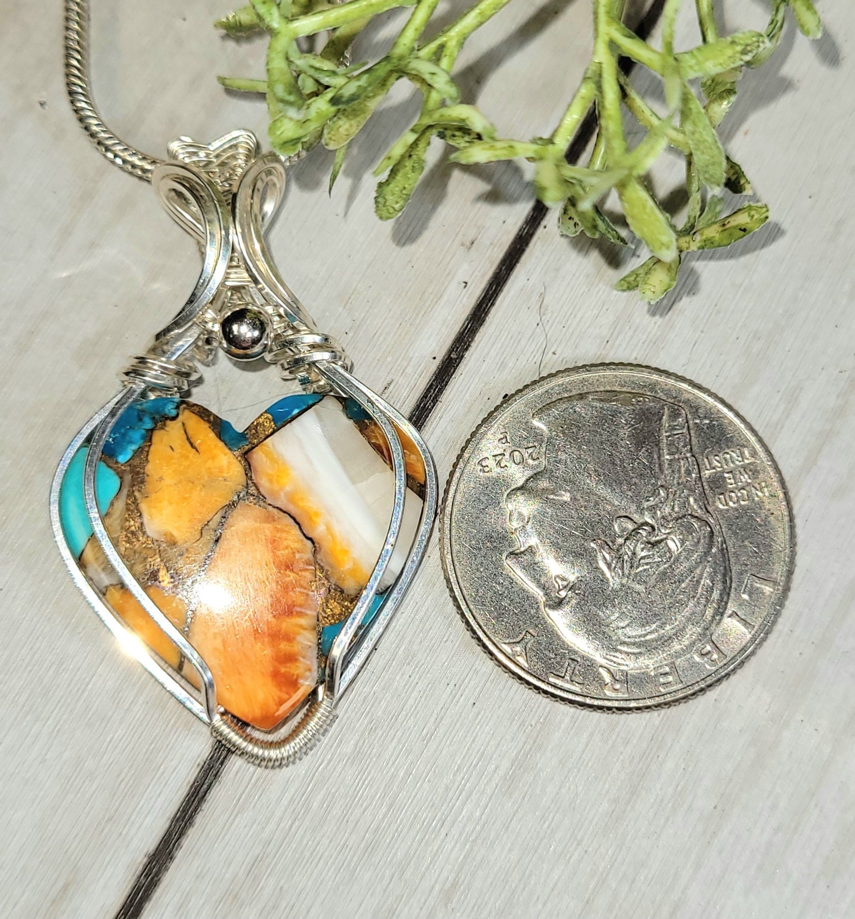 Natural Premium Multi Color Spiny Copper Oyster Turquoise Wire Wrapped .925 Sterling Silver Pendant 1 3/4" & 1" 6.6 Grams HD16. Handmade Heart-Shaped Wrapped Solid Sterling Silver. Absolutely gorgeous designer hand wrapped Sterling Silver with stunning detailed craftmanship. If you are unhappy with any of our items please email us before you leave review. We stand behind our jewelry 100% with full refund if not completely satisfied!! This is a handpicked natural stone, the exact one shown in picture. The sterling silver is .925 and stamped. Each piece is handmade by artisans in my shop. The quality of the stones and the silver craftmanship is impressive in all items. Please look at other items in my store. I sell ready made jewelry with handcrafted silver work, pendants with a sterling silver bails and beautiful unique stones for jewelry wire wrapping and weaving. You will pay exact amount on shipping plus $1 for supplies and labor. All items are shipped within a couple of days after payment and are shipped USPS first class or international first class. Items are available for combined shipping, if invoice does not combine please email me and I will combine for you. Average shipping will be $4 to 4.50 for USPS first class. International shipping is available for exact amount of shipping plus $1 for labor and supplies also. We also accept returns for refund or exchange. Thanks for viewing my store.