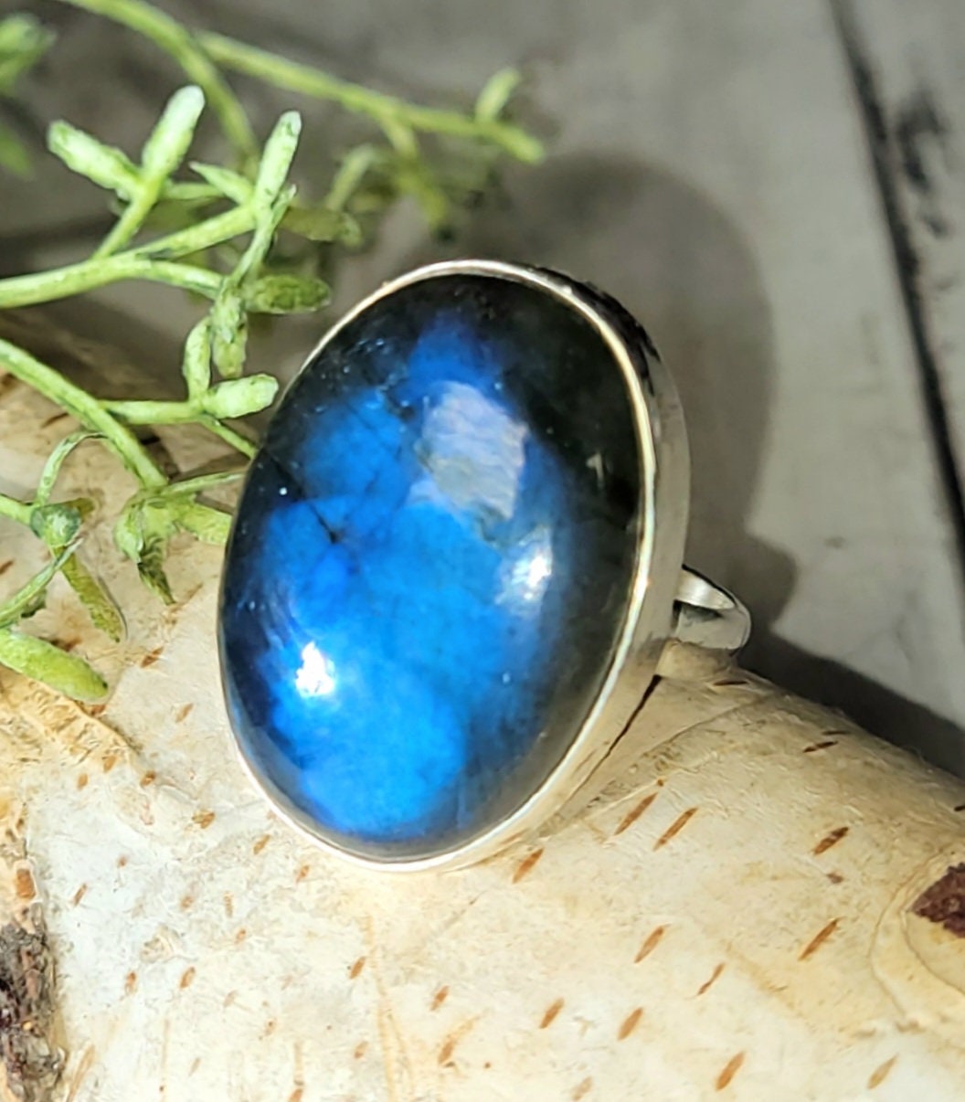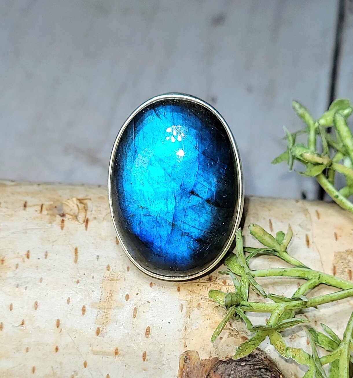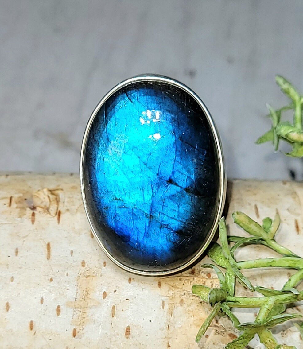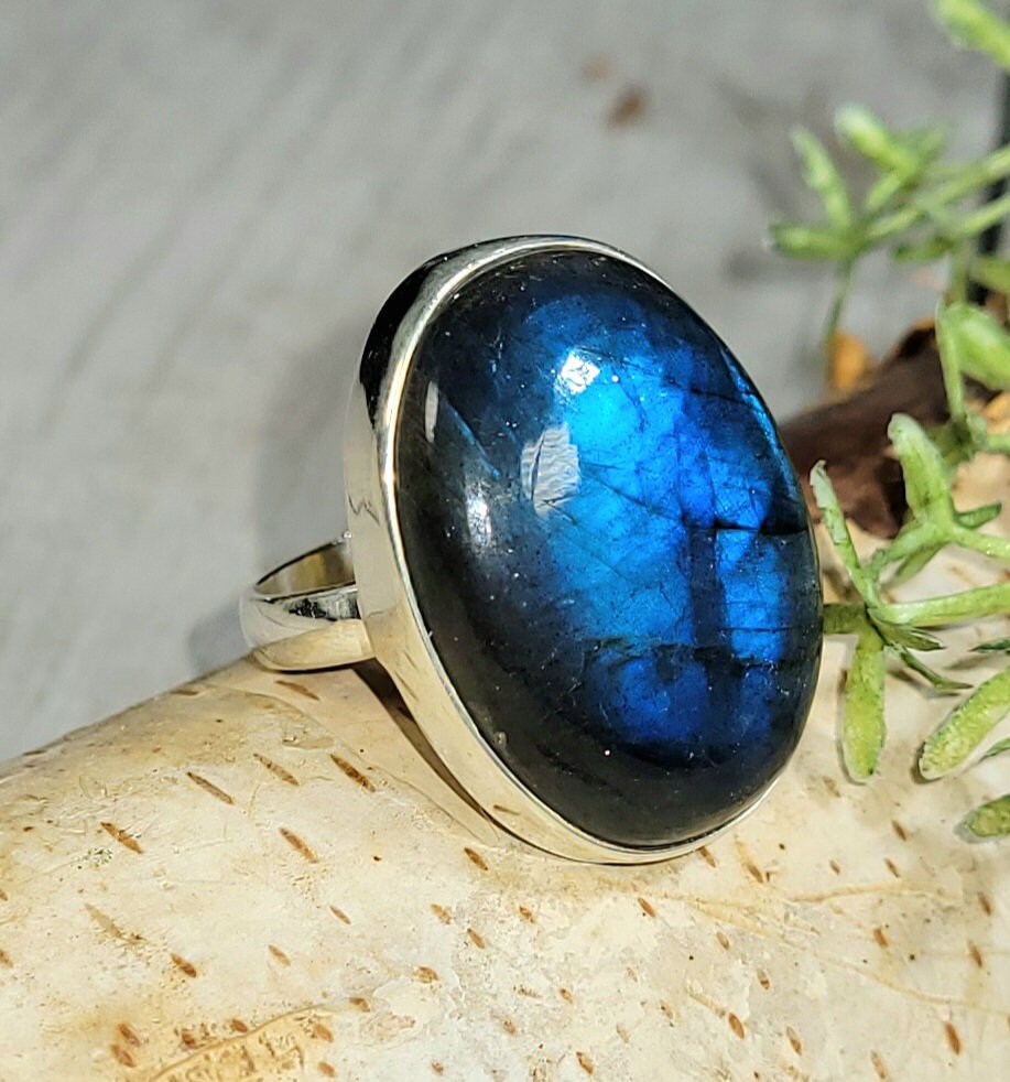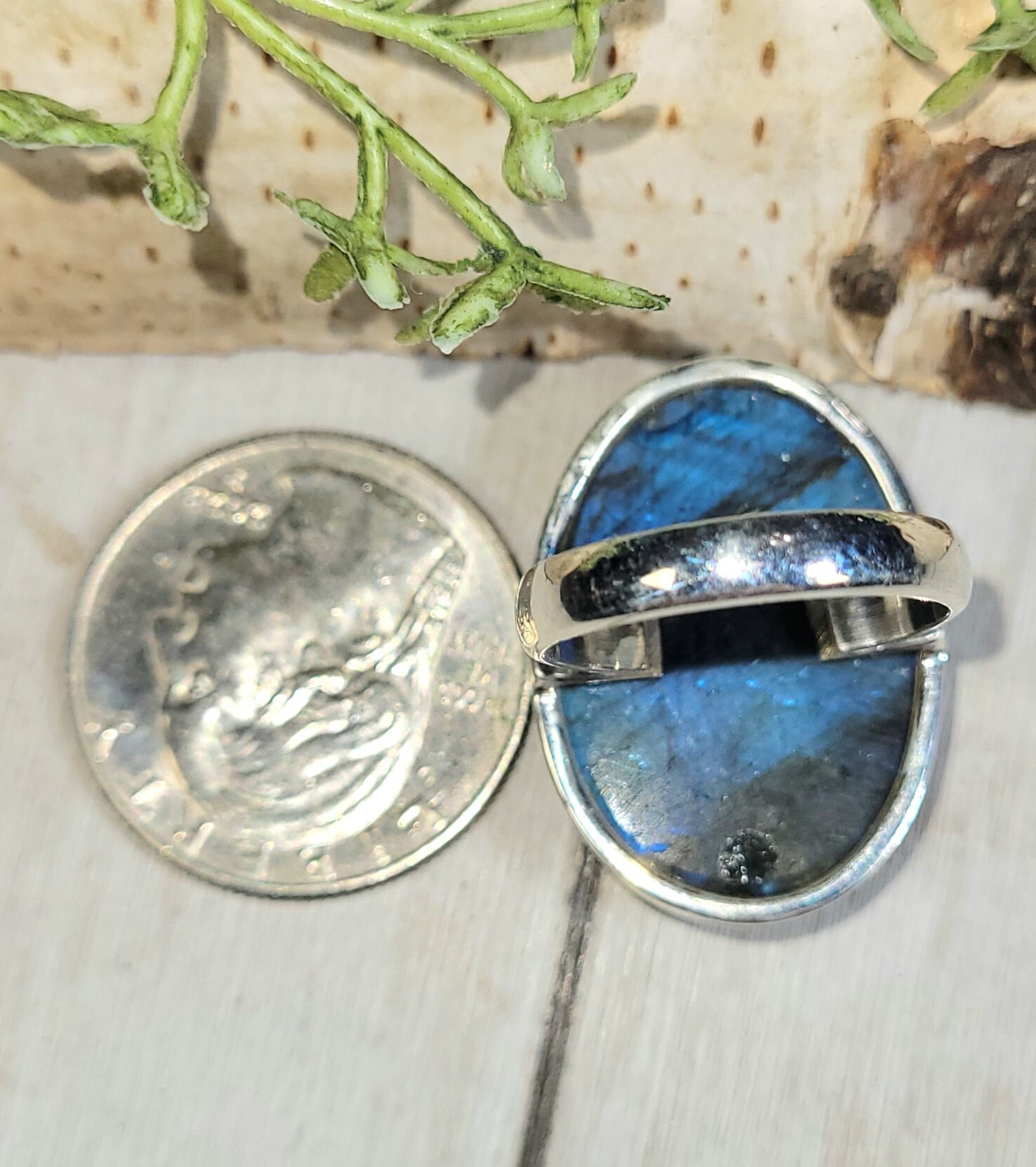Natural AAA Grade Blue Flash Oval Labradorite Handmade .925 Sterling Silver Ring Size 7 10.6 Grams measures a little over 1" x 13/16" HD33. This is a handpicked natural stone, the exact one shown in picture. The sterling silver is .925 and stamped. Each piece is hand made by artisans in my shop. The quality of the stones and the silver workmanship is impressive. Please look at other items in my store. I sell ready made jewelry with hand crafted silver work, pendants with a sterling silver bails and beautiful unique cabochons for jewelry wire wrapping and weaving. You will pay exact amount on shipping plus $1 for supplies and labor. All items are shipped within a couple of days after payment and are shipped USPS first class or international first class. Items are available for combined shipping, if invoice does not combine please email me and I will combine for you. Average shipping will be $4 to 4.50 for USPS first class. International shipping is available for exact amount of shipping plus $1 for labor and supplies also. We also accept returns for refund or exchange. Thanks for viewing my store