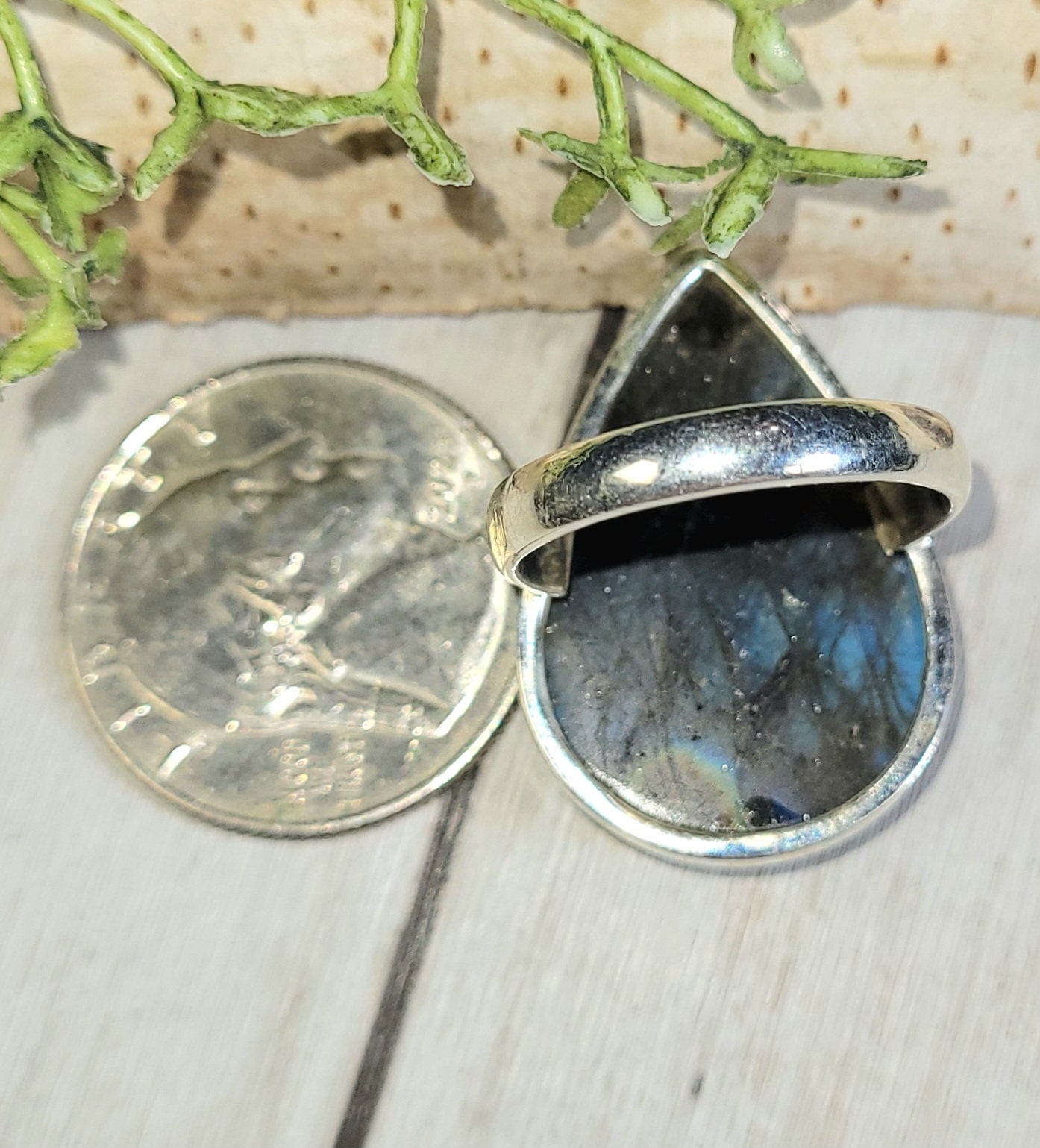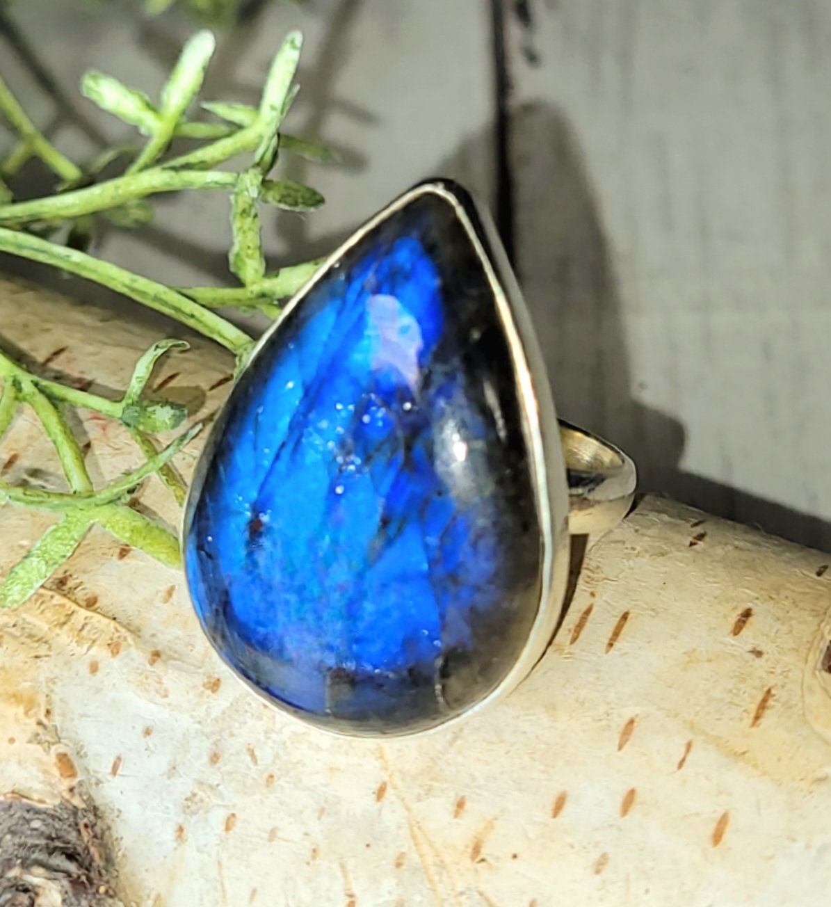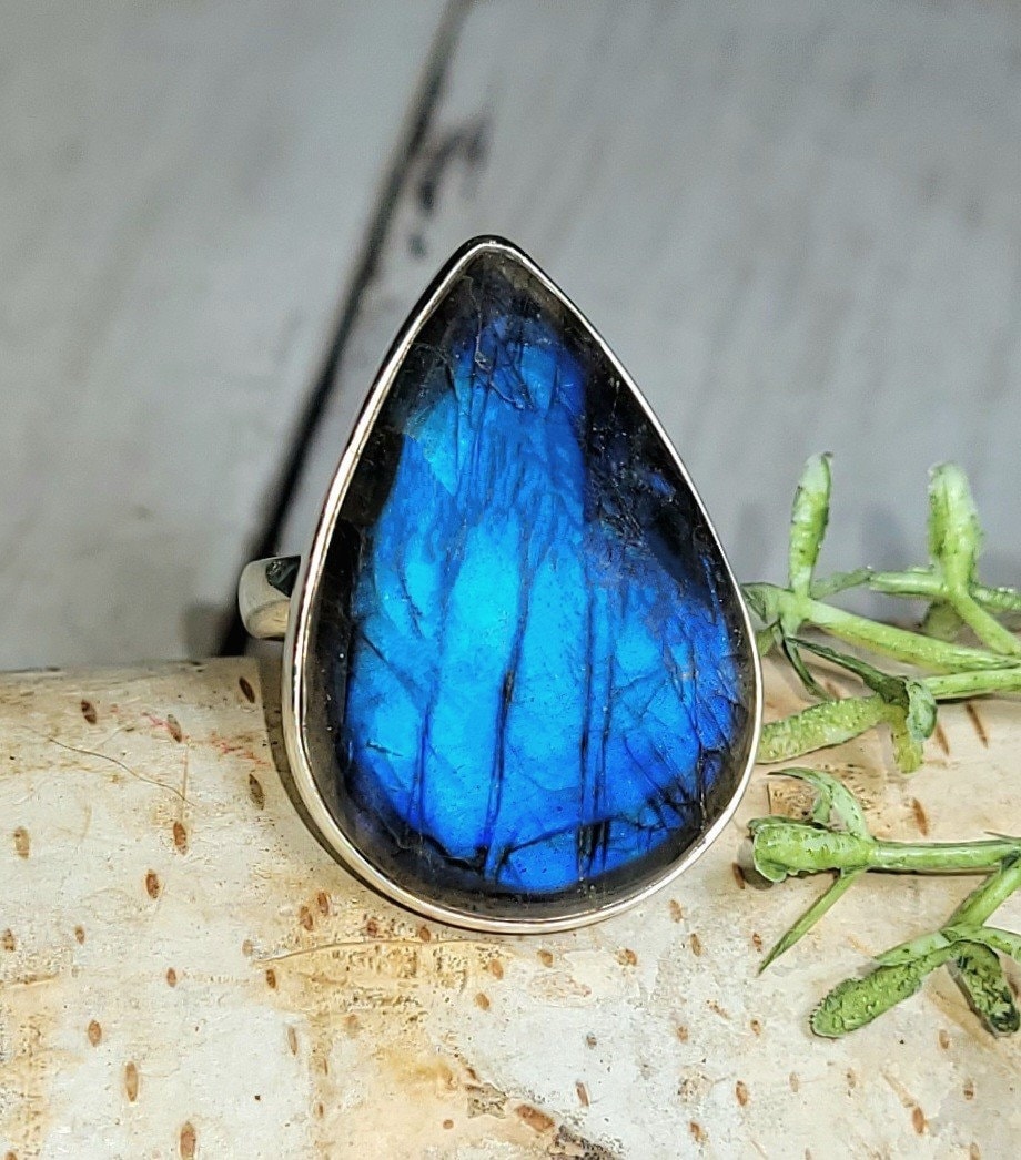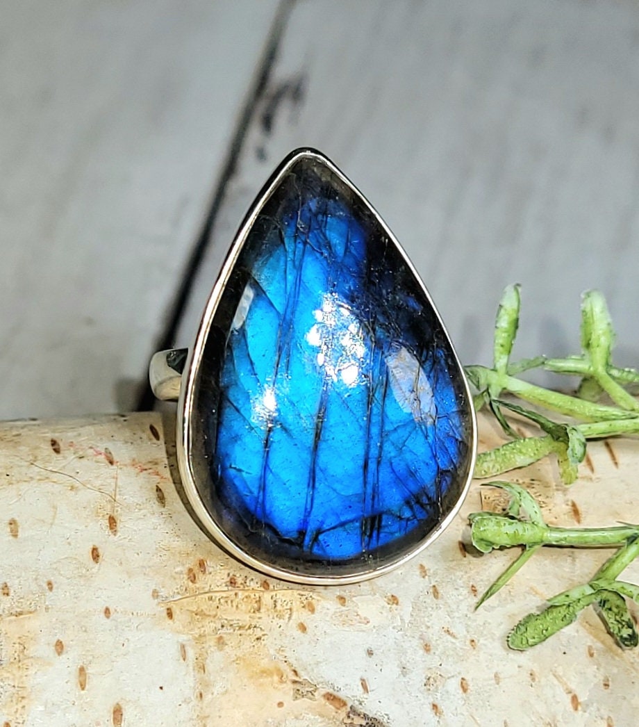 Natural AAA Grade Blue Flash Pear Labradorite Handmade .925 Sterling Silver Ring Size 7.5 9.1 Grams face measures slightly over an 1 1/8" x 13/16" HD34. This is a handpicked natural stone, the exact one shown in picture. The sterling silver is .925 and stamped. Each piece is hand made by artisans in my shop. The quality of the stones and the silver workmanship is impressive. Please look at other items in my store. I sell ready made jewelry with hand crafted silver work, pendants with a sterling silver bails and beautiful unique cabochons for jewelry wire wrapping and weaving. You will pay exact amount on shipping plus $1 for supplies and labor. All items are shipped within a couple of days after payment and are shipped USPS first class or international first class. Items are available for combined shipping, if invoice does not combine please email me and I will combine for you. Average shipping will be $4 to 4.50 for USPS first class. International shipping is available for exact amount of shipping plus $1 for labor and supplies also. We also accept returns for refund or exchange. Thanks for viewing my store