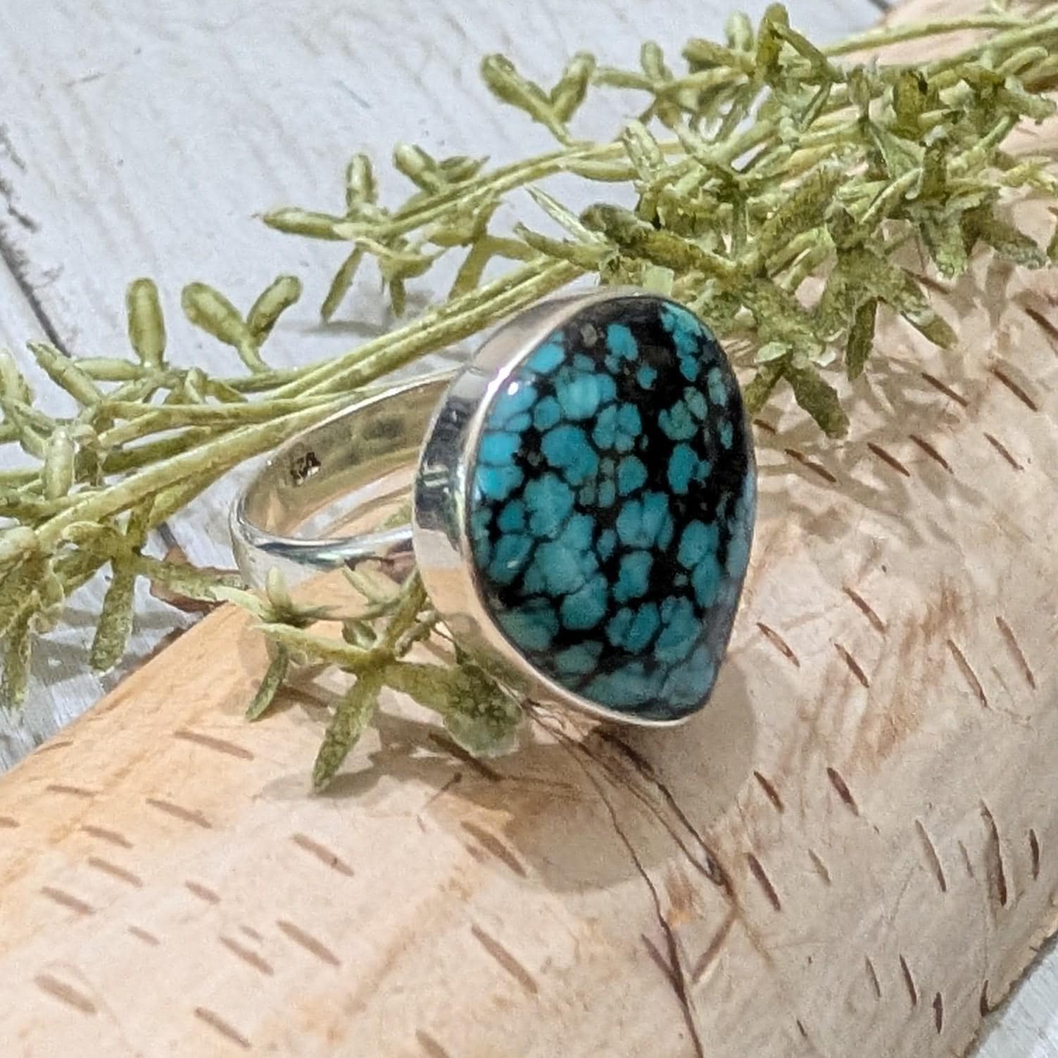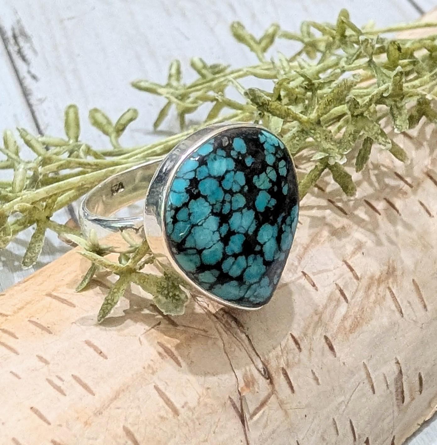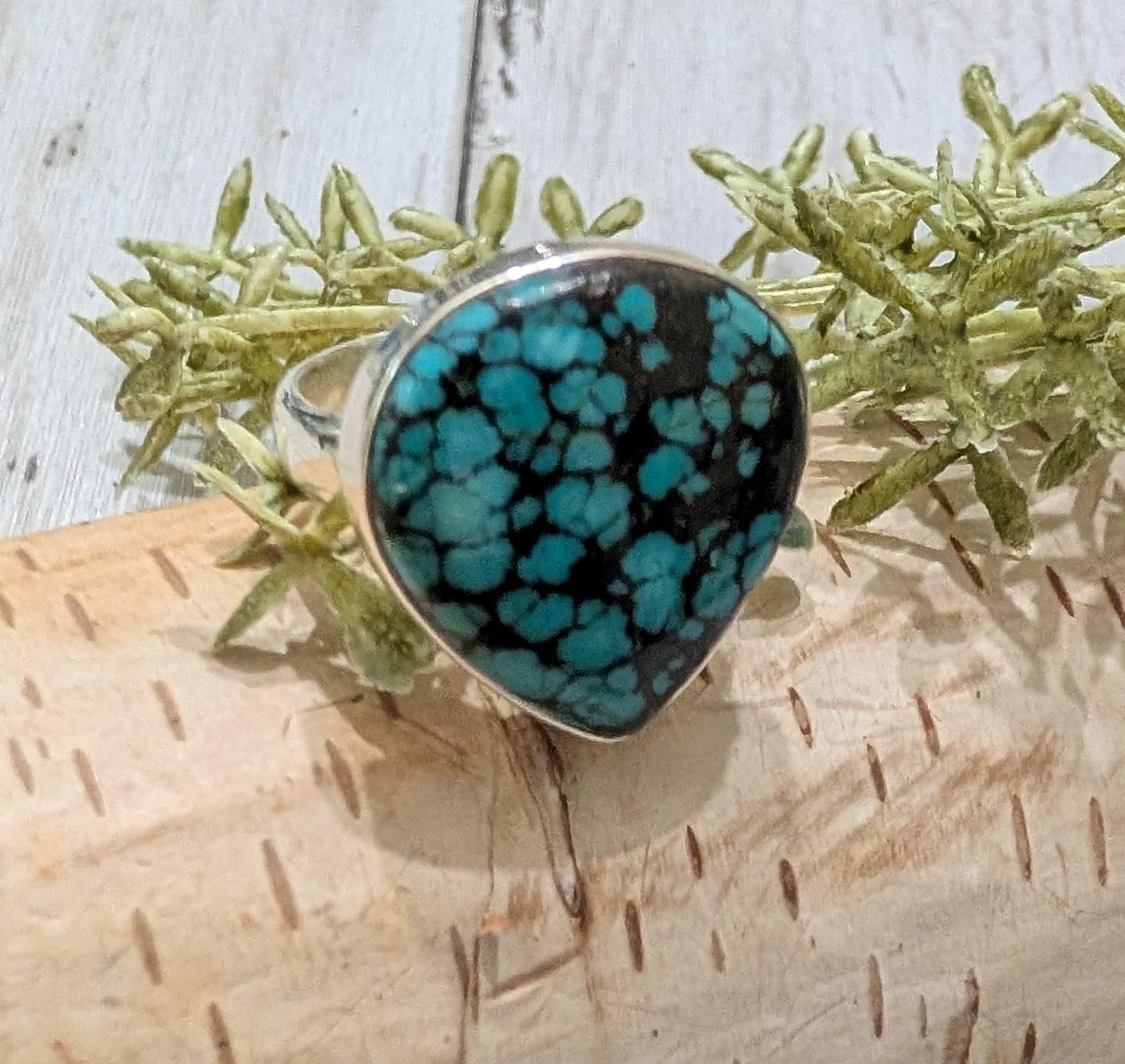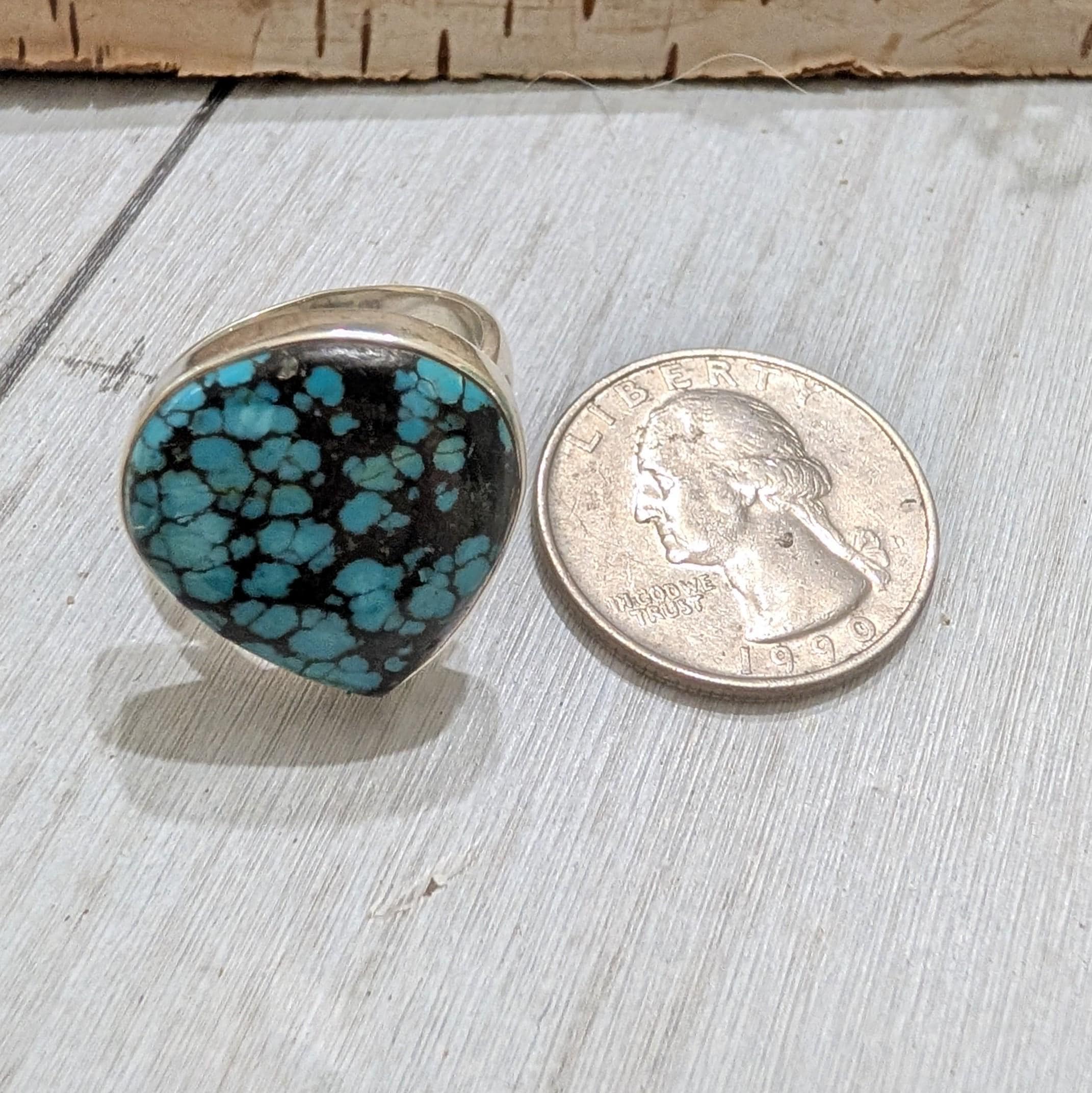 Natural Premium Grade Tibet Turquoise Handmade .925 Sterling Silver Ring Size 7.5 Ring weighs 8.2 Grams and Face measures 7/8"x 3/4" HS13 -This is a handpicked natural stone, the exact one shown in picture. The sterling silver is .925 and stamped. Each piece is hand made by artisans in my shop. The quality of the stones and the silver workmanship is impressive. All items are .925 Sterling Silver and natural gemstones. The gemstones are handpicked from all over world and then jewelry is created by gifted artisans who are members of our shop. Free shipping for items over $35. Please look at other items in my store. I sell ready made jewelry with hand crafted silver work, pendants with a sterling silver bails and beautiful unique cabochons for jewelry wire wrapping and weaving. If you buy over $35 of merchandise, we will ship for free to US. You will pay exact amount on shipping plus $1 for supplies and labor on all orders under $35 or international orders. All items are shipped within a couple of days after payment and are shipped USPS first class or international first class. Items are available for combined shipping, if invoice does not combine, please email me and I will combine for you. Average shipping will be $4 to 4.50 for USPS first class. International shipping is available for exact amount of shipping plus $1 for labor and supplies also. We also accept returns for refund or exchange. Thanks so much for viewing my store