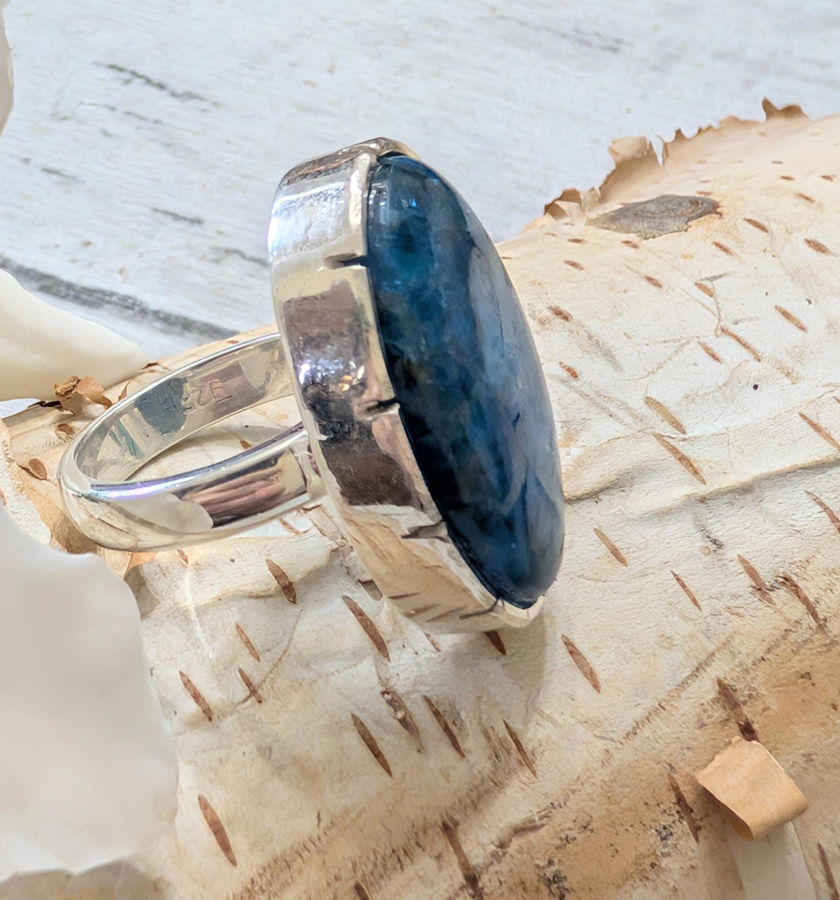 Natural Premium Grade Apatite Handmade Pear.925 Sterling Silver Ring Size 5 1/2 weighing 10.8 Grams Face of ring measures 1" x 3/4" HV31. This is a handpicked natural stone, the exact one shown in picture. The sterling silver is .925 and stamped. Each piece is hand made by artisans in my shop. The quality of the stones and the silver workmanship is impressive. Please look at other items in my store. I sell both ready-made jewelry with hand crafted silver work pendants with sterling silver bails and beautiful unique cabochons for jewelry wire wrapping and weaving. FREE shipping for all domestic orders over $35. On all other items you will pay exact amount on shipping plus $1 for supplies and labor. All items are shipped within a couple of days after payment and are shipped USPS first class or international first class. Items are available for combined shipping, if invoice does not combine, please email me and I will combine your order for you. Average shipping will be $4 to 4.50 for USPS first class. International shipping is available for exact amount of shipping plus $1 for labor and supplies also. I also accept returns for refund or exchange. Thanks for viewing my store!