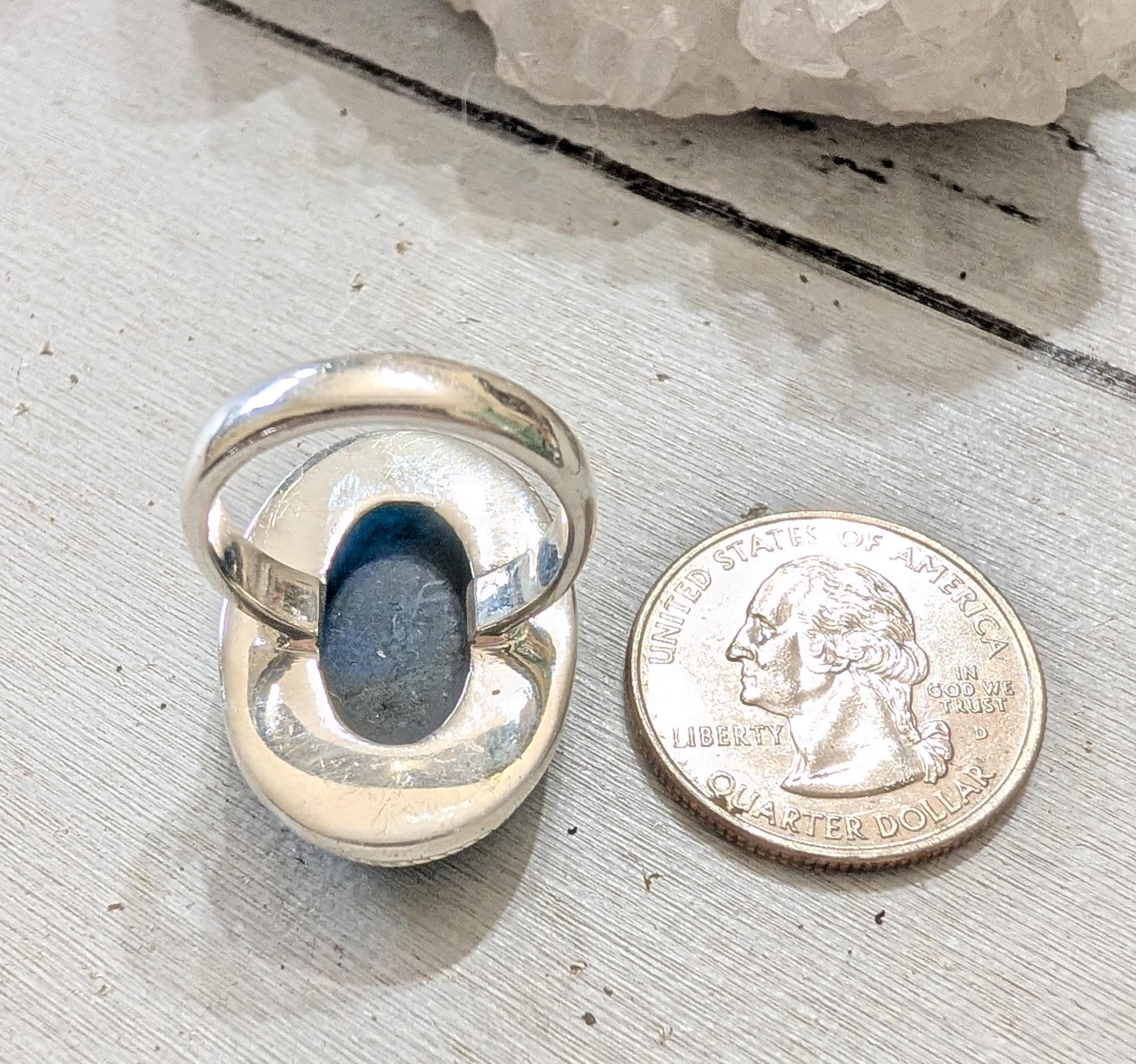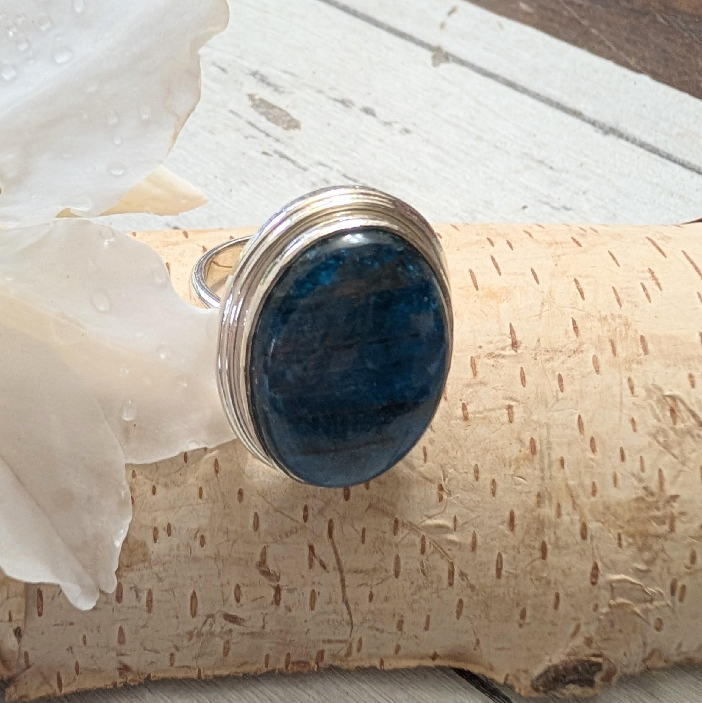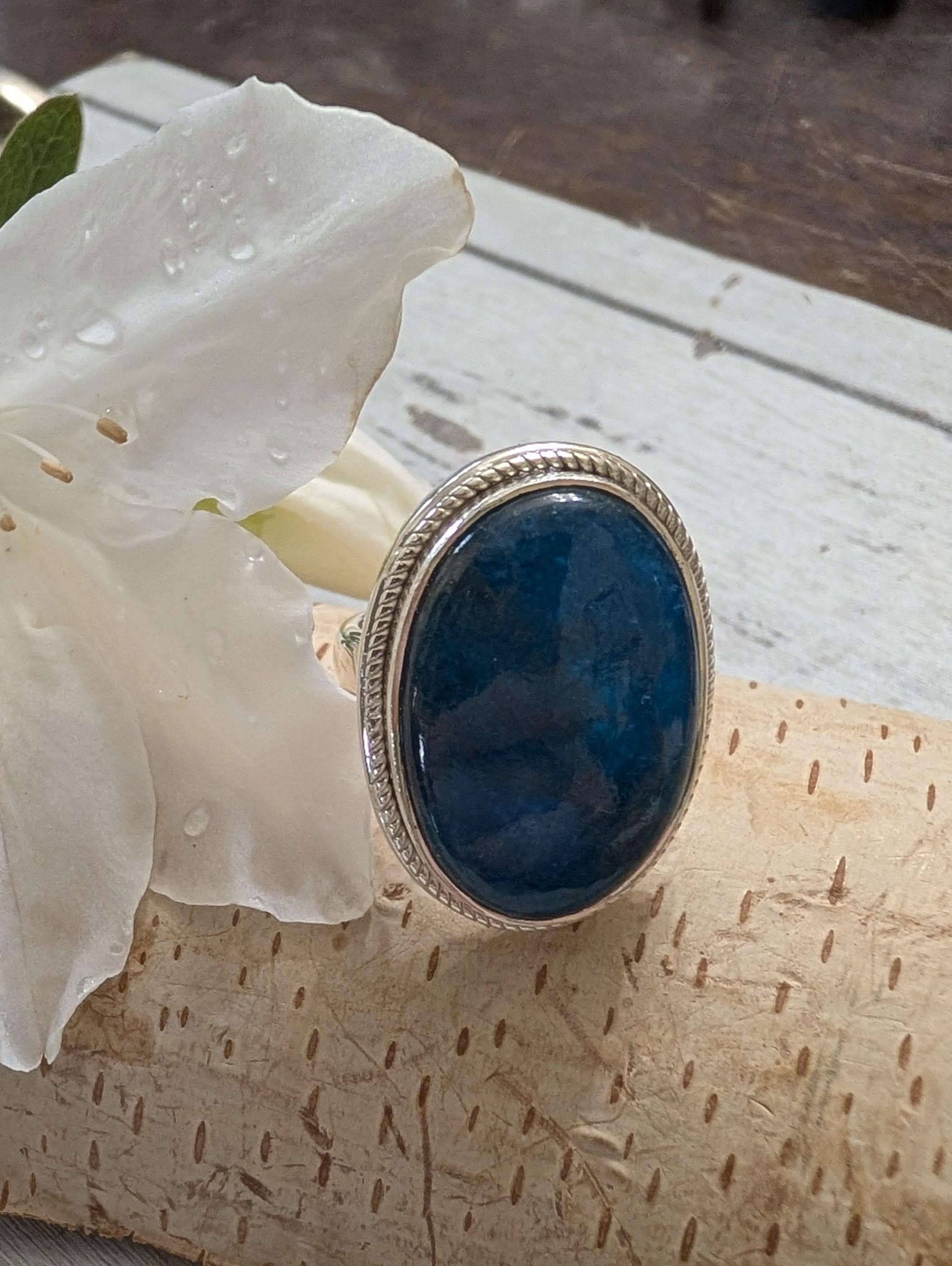 Natural Premium Grade Apatite Handmade Pear.925 Sterling Silver Ring Size 6 1/4 weighing 13 Grams Face of ring measures 1 1/8" x 3/4" HV34. This is a handpicked natural stone, the exact one shown in picture. The sterling silver is .925 and stamped. Each piece is hand made by artisans in my shop. The quality of the stones and the silver workmanship is impressive. Please look at other items in my store. I sell both ready-made jewelry with hand crafted silver work pendants with sterling silver bails and beautiful unique cabochons for jewelry wire wrapping and weaving. FREE shipping for all domestic orders over $35. On all other items you will pay exact amount on shipping plus $1 for supplies and labor. All items are shipped within a couple of days after payment and are shipped USPS first class or international first class. Items are available for combined shipping, if invoice does not combine, please email me and I will combine your order for you. Average shipping will be $4 to 4.50 for USPS first class. International shipping is available for exact amount of shipping plus $1 for labor and supplies also. I also accept returns for refund or exchange. Thanks for viewing my store!