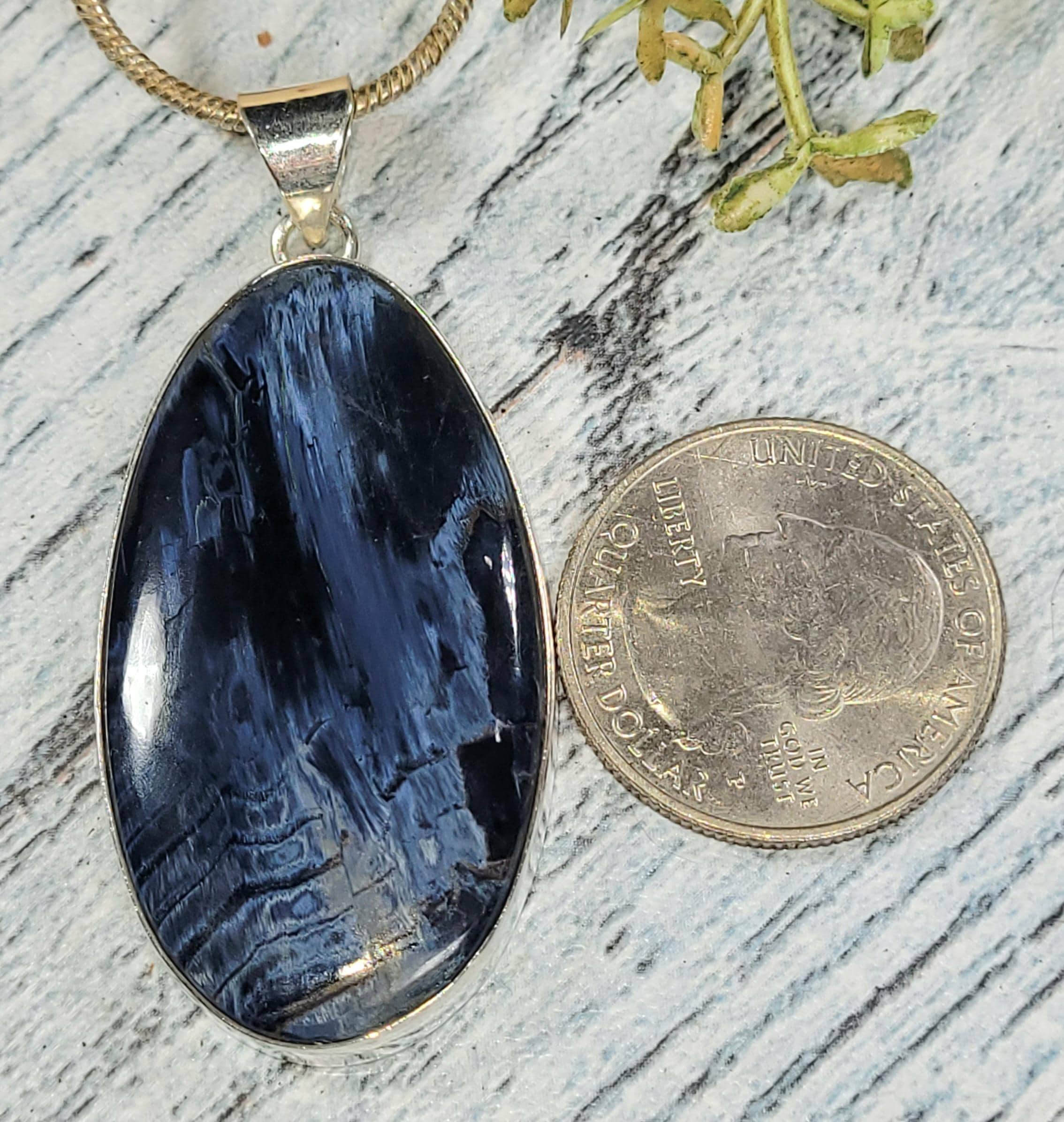 Natural Premium Grade Pietersite Oval .925 Sterling Silver Pendant measures 2 1/4" x 1" and weighs 12.6 grams JD30. If you're not pleased with the item you receive please email us before leaving review. We stand behind our jewelry 100% and will refund you or send a replacement to make sure you're happy with your purchase!! This is a handpicked natural stone, the exact one shown in picture. The sterling silver is .925 and stamped. Each piece is handmade by artisans in my shop. The quality of the stones and the silver craftmanship is impressive. Please look at other items in my store. I sell ready made jewelry with handcrafted silver work, pendants with a sterling silver bails and beautiful unique stones for jewelry wire wrapping and weaving. You will pay exact amount on shipping plus $1 for supplies and labor. All items are shipped within a couple of days after payment and are shipped USPS first class or international first class. Items are available for combined shipping, if invoice does not combine please email me and I will combine for you. Average shipping will be $4 to 4.50 for USPS first class. International shipping is available for exact amount of shipping plus $1 for labor and supplies also. We also accept returns for refund or exchange. Thanks for viewing my store.