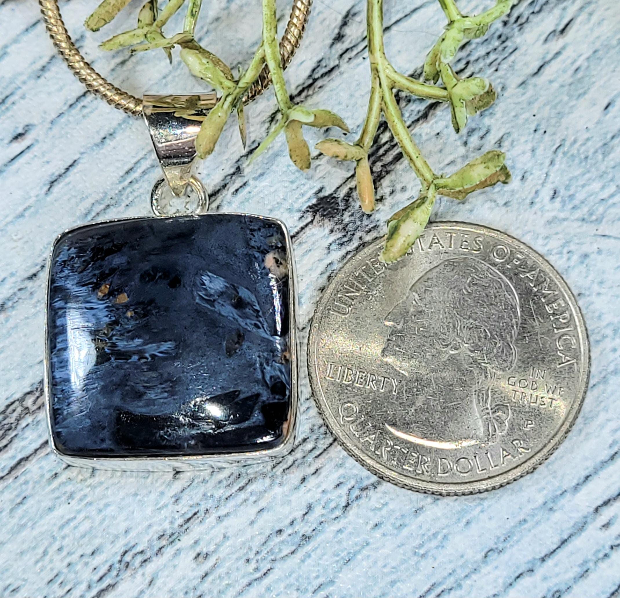 Natural Premium Grade Pietersite Square .925 Sterling Silver Pendant measures 1 3/8" x 7/8" and weighs 7.8 grams JD35. If you're not pleased with the item you receive please email us before leaving review. We stand behind our jewelry 100% and will refund you or send a replacement to make sure you're happy with your purchase!! This is a handpicked natural stone, the exact one shown in picture. The sterling silver is .925 and stamped. Each piece is handmade by artisans in my shop. The quality of the stones and the silver craftmanship is impressive. Please look at other items in my store. I sell ready made jewelry with handcrafted silver work, pendants with a sterling silver bails and beautiful unique stones for jewelry wire wrapping and weaving. You will pay exact amount on shipping plus $1 for supplies and labor. All items are shipped within a couple of days after payment and are shipped USPS first class or international first class. Items are available for combined shipping, if invoice does not combine please email me and I will combine for you. Average shipping will be $4 to 4.50 for USPS first class. International shipping is available for exact amount of shipping plus $1 for labor and supplies also. We also accept returns for refund or exchange. Thanks for viewing my store.