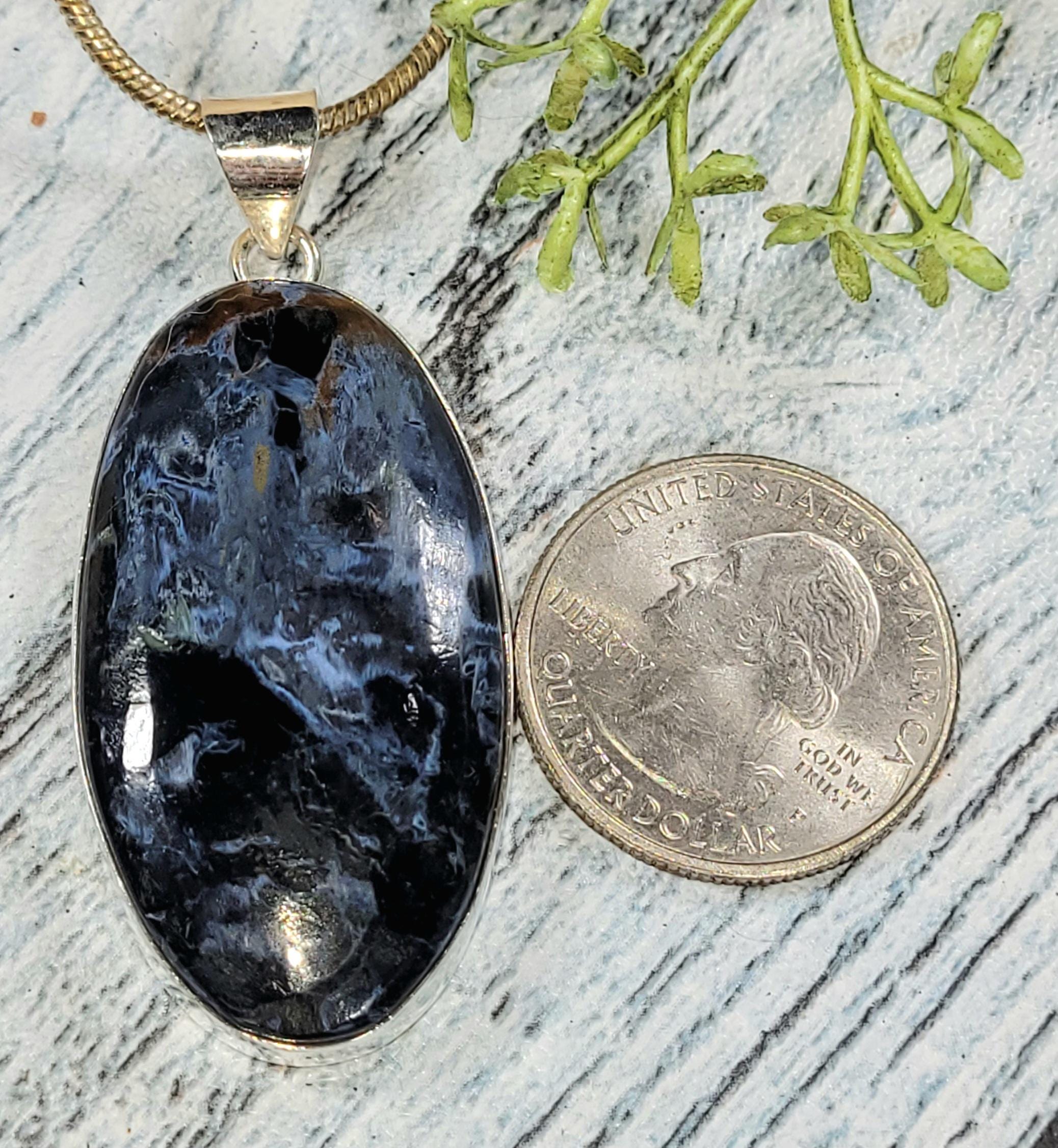 Natural Premium Grade Pietersite Oval .925 Sterling Silver Pendant measures 2 1/4" x 15/16" and weighs 13.5 grams JD33. If you're not pleased with the item you receive please email us before leaving review. We stand behind our jewelry 100% and will refund you or send a replacement to make sure you're happy with your purchase!! This is a handpicked natural stone, the exact one shown in picture. The sterling silver is .925 and stamped. Each piece is handmade by artisans in my shop. The quality of the stones and the silver craftmanship is impressive. Please look at other items in my store. I sell ready made jewelry with handcrafted silver work, pendants with a sterling silver bails and beautiful unique stones for jewelry wire wrapping and weaving. You will pay exact amount on shipping plus $1 for supplies and labor. All items are shipped within a couple of days after payment and are shipped USPS first class or international first class. Items are available for combined shipping, if invoice does not combine please email me and I will combine for you. Average shipping will be $4 to 4.50 for USPS first class. International shipping is available for exact amount of shipping plus $1 for labor and supplies also. We also accept returns for refund or exchange. Thanks for viewing my store.