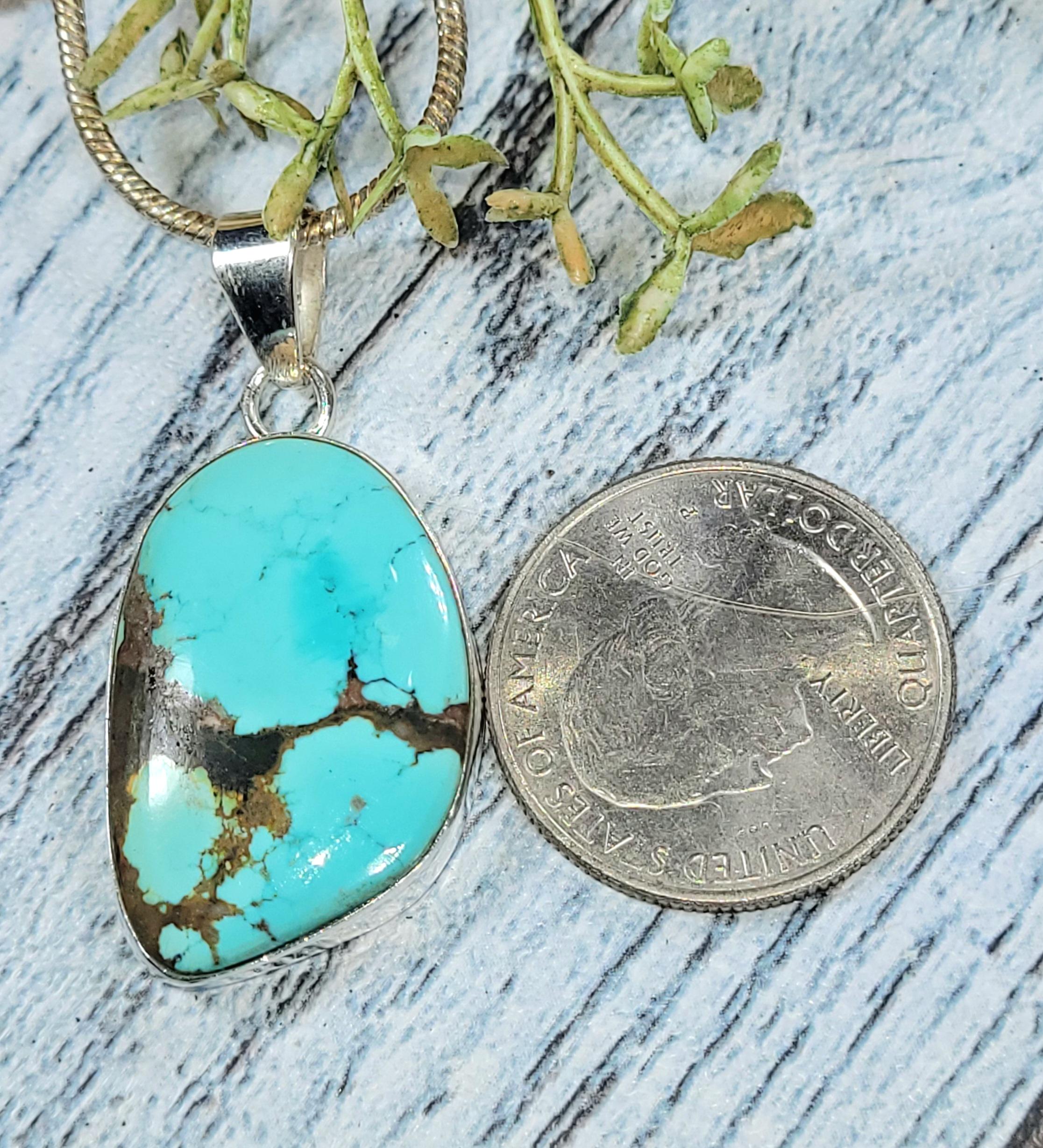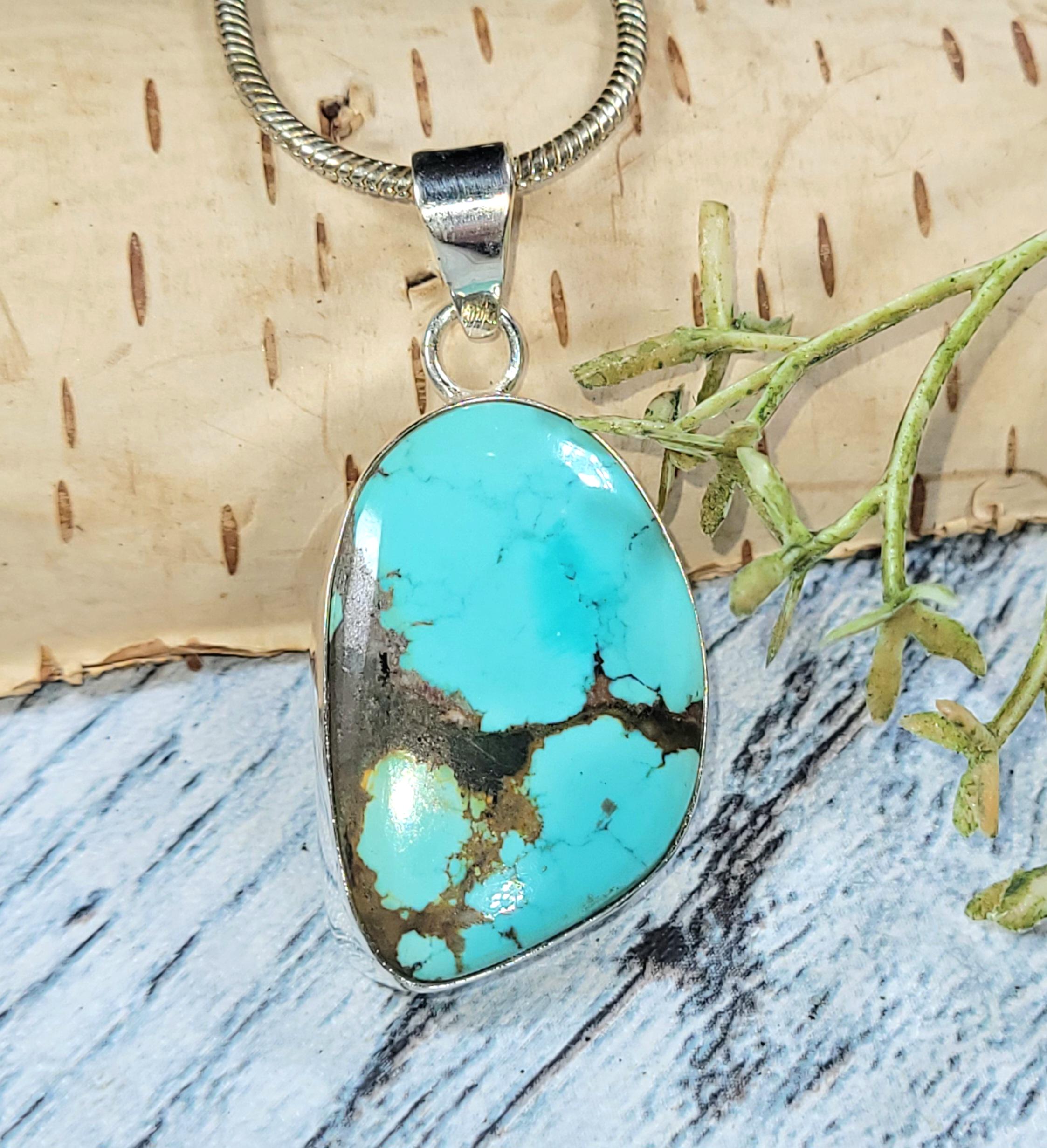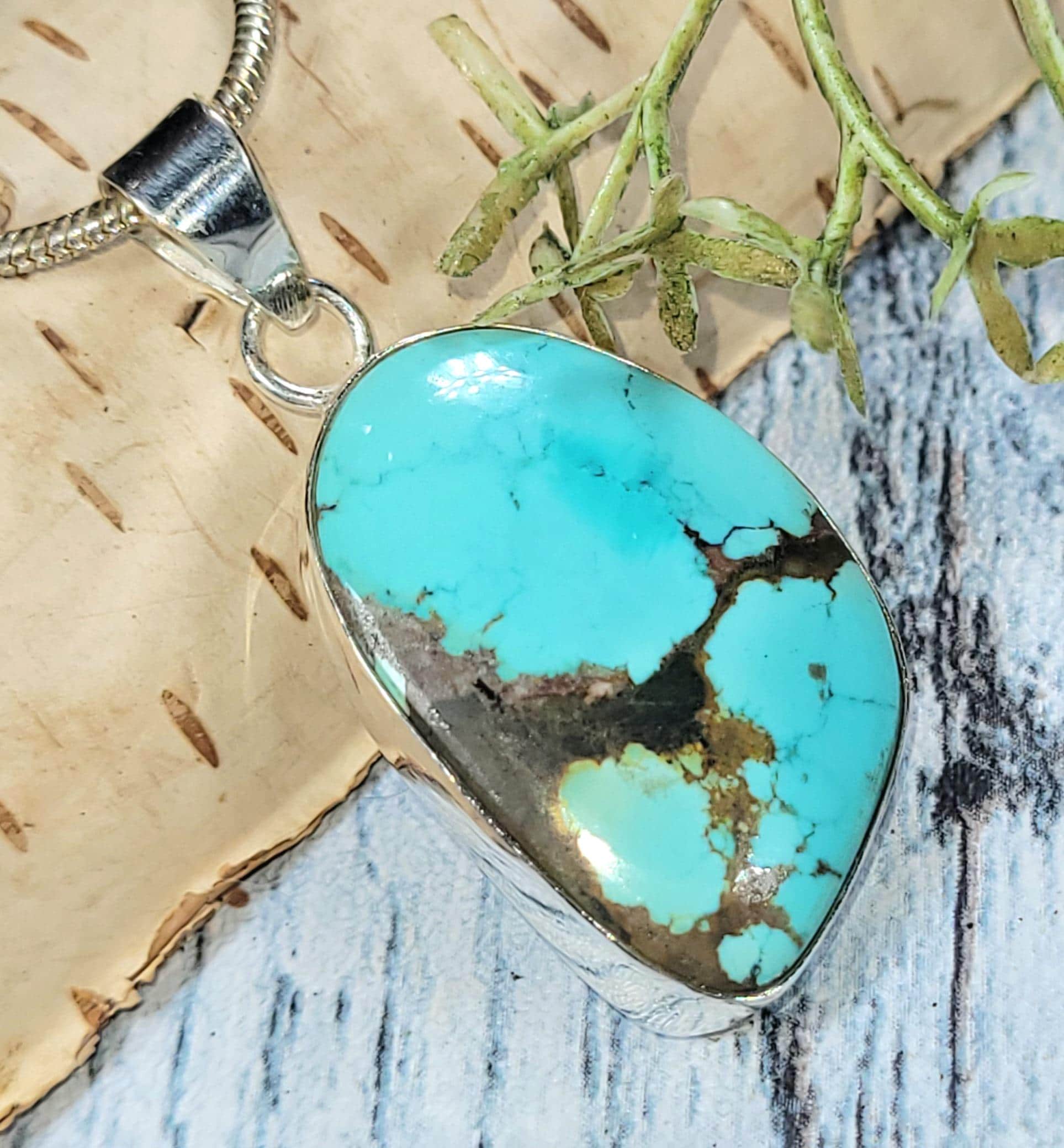 Natural Top-Grade Tibetan Turquoise .925 Sterling Silver Pendant 7.6 grams 1 3/4 x 3/4" JD40. This is a handpicked natural stone, the exact one shown in picture. The sterling silver is .925 and stamped. Each piece is hand made by artisans in our shop. The quality of the stones and the silver workmanship is hard to beat. Please look at other items in our store. We sell ready-made jewelry with hand crafted silver work, pendants with a sterling silver bails, and beautiful unique stones for jewelry wire wrapping and weaving. Free Shipping for orders over $35 You will pay exact amount on shipping plus $1 for supplies and labor. All items are shipped within a couple of days after payment and are shipped USPS first class or international first class. Items are available for combined shipping, if invoice does not combine, please email us and we will combine for you. Average shipping will be $4 to 4.50 for USPS first class. International shipping is available for exact amount of shipping plus $1 for labor and supplies also. We also accept returns for refund or exchange. Thanks for viewing our store.