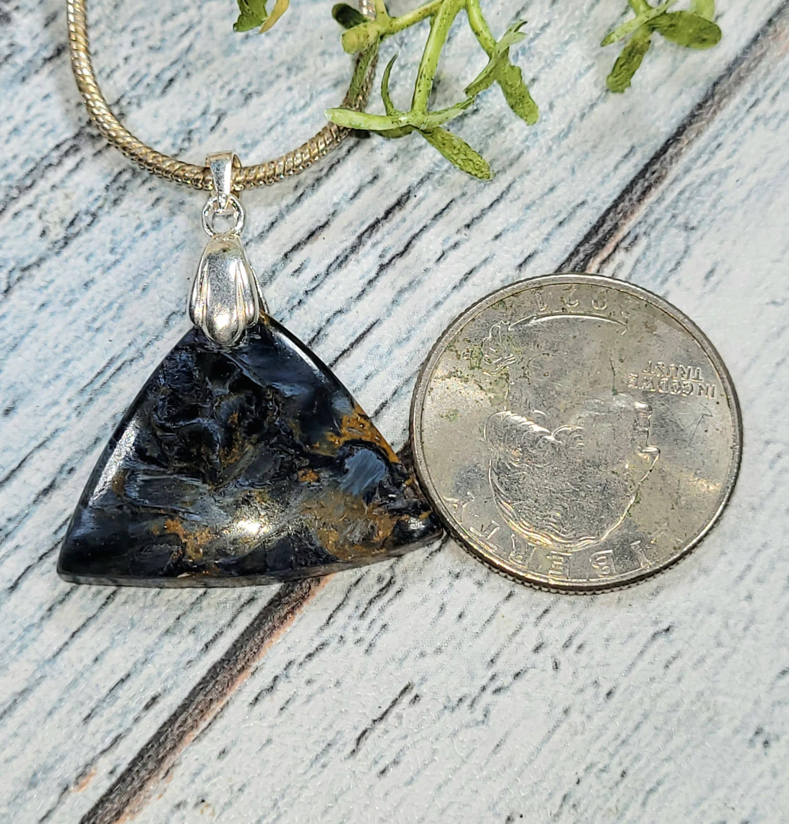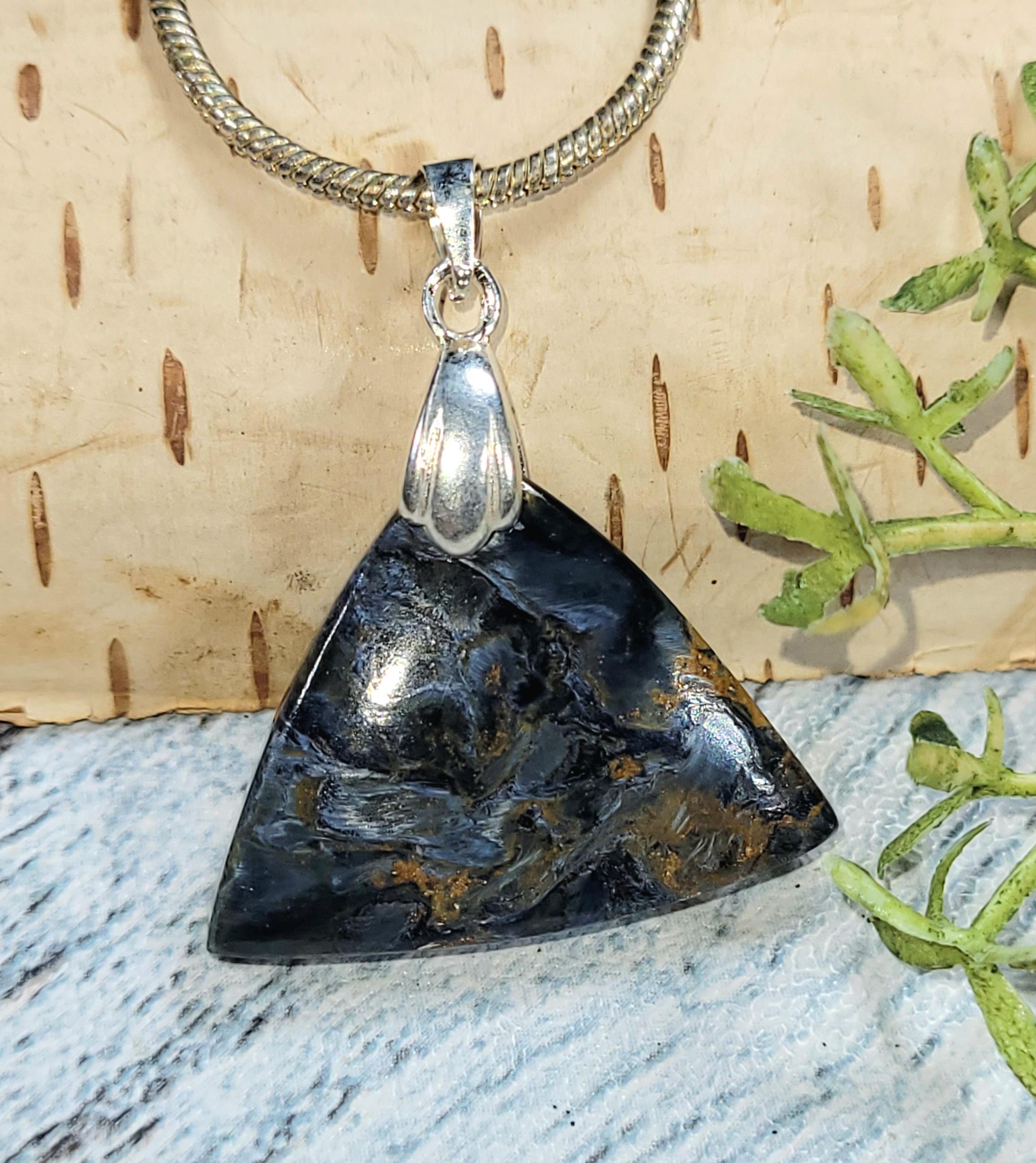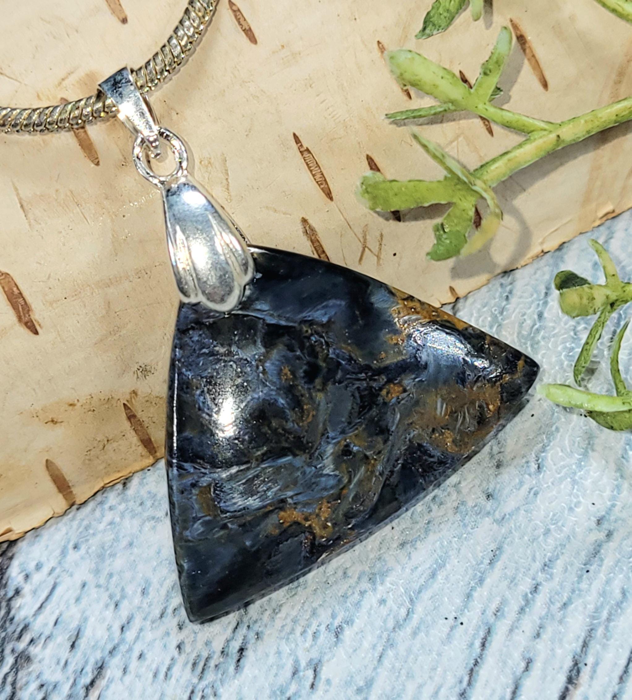Natural High Grade Blue Pietersite Pear Cabochon .925 Sterling Silver Pendant measures 1 3/8" x 1 1/8" and weighs 3.8 grams approximately 15ct JE05. Solid Sterling Silver Rhodium Plated Bail will accommodate up to a 3mm chain and resist tarnishing . If you're not pleased with the item you receive please email us before leaving review. We stand behind our jewelry 100% and will refund you or send a replacement to make sure you're happy with your purchase!! This is a handpicked natural stone, the exact one shown in picture. The sterling silver is .925 and stamped. Each piece is handmade by artisans in my shop. The quality of the stones and the silver craftmanship is impressive. Please look at other items in my store. I sell ready made jewelry with handcrafted silver work, pendants with a sterling silver bails and beautiful unique stones for jewelry wire wrapping and weaving. You will pay exact amount on shipping plus $1 for supplies and labor. All items are shipped within a couple of days after payment and are shipped USPS first class or international first class. Items are available for combined shipping, if invoice does not combine please email me and I will combine for you. Average shipping will be $4 to 4.50 for USPS first class. International shipping is available for exact amount of shipping plus $1 for labor and supplies also. We also accept returns for refund or exchange. Thanks for viewing my store.