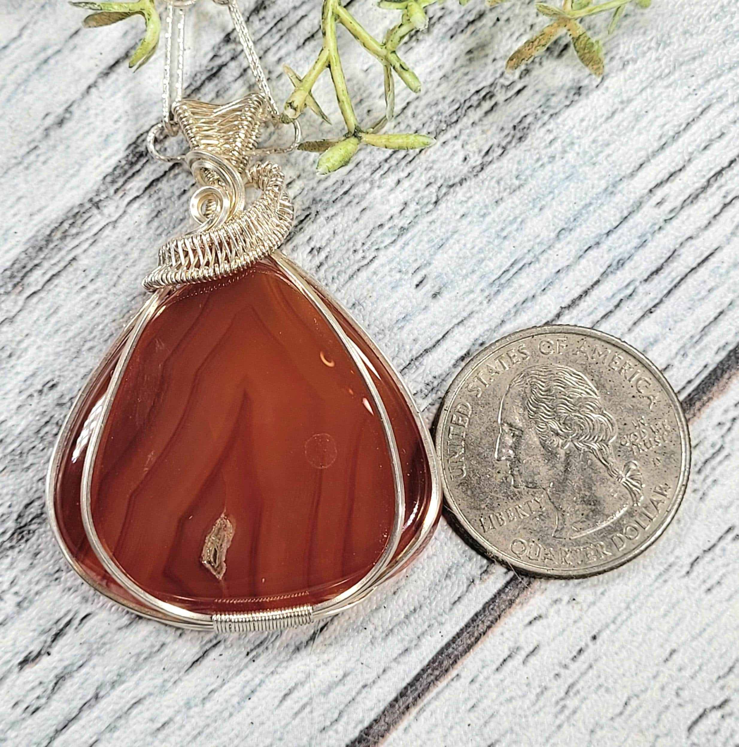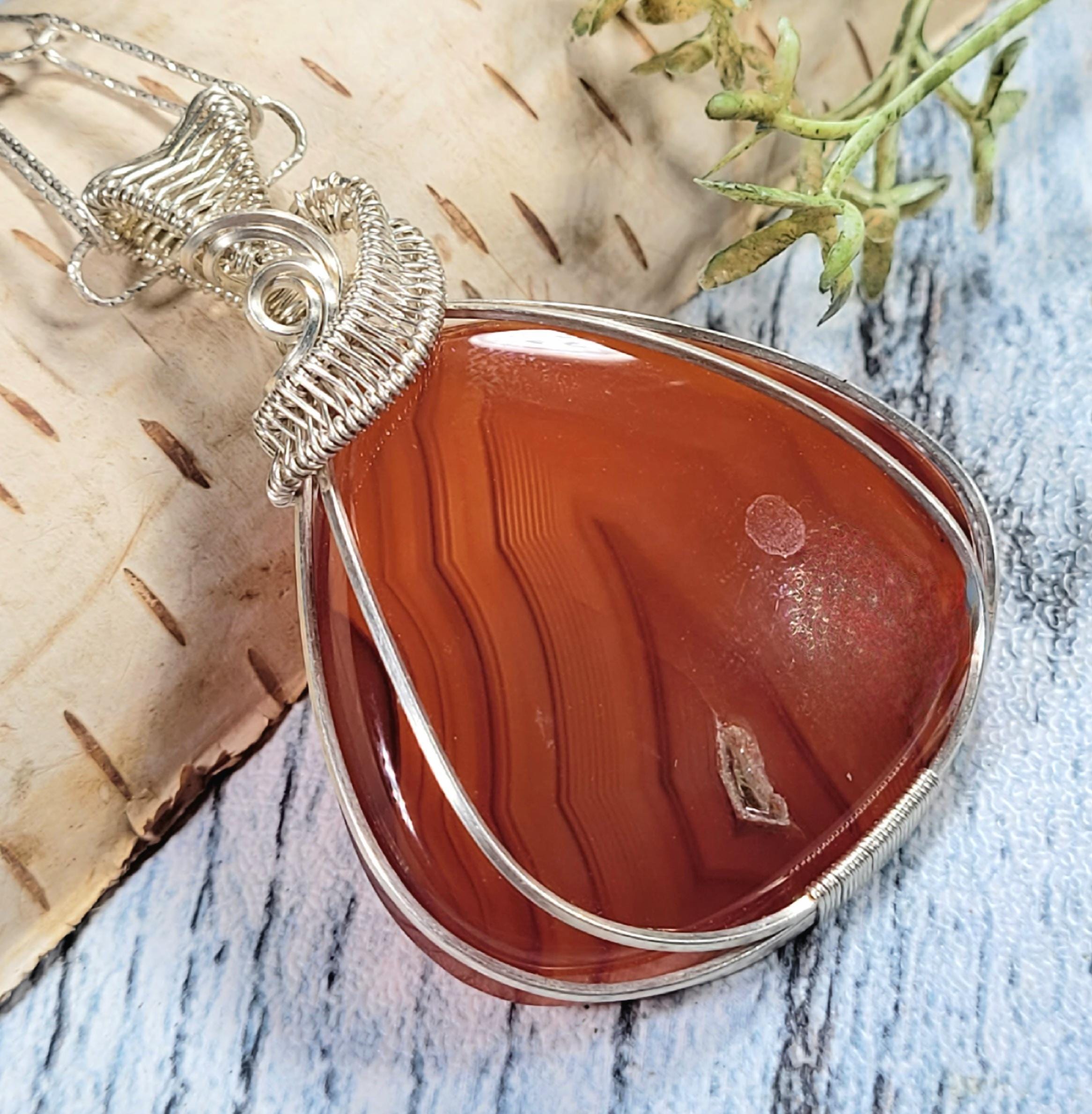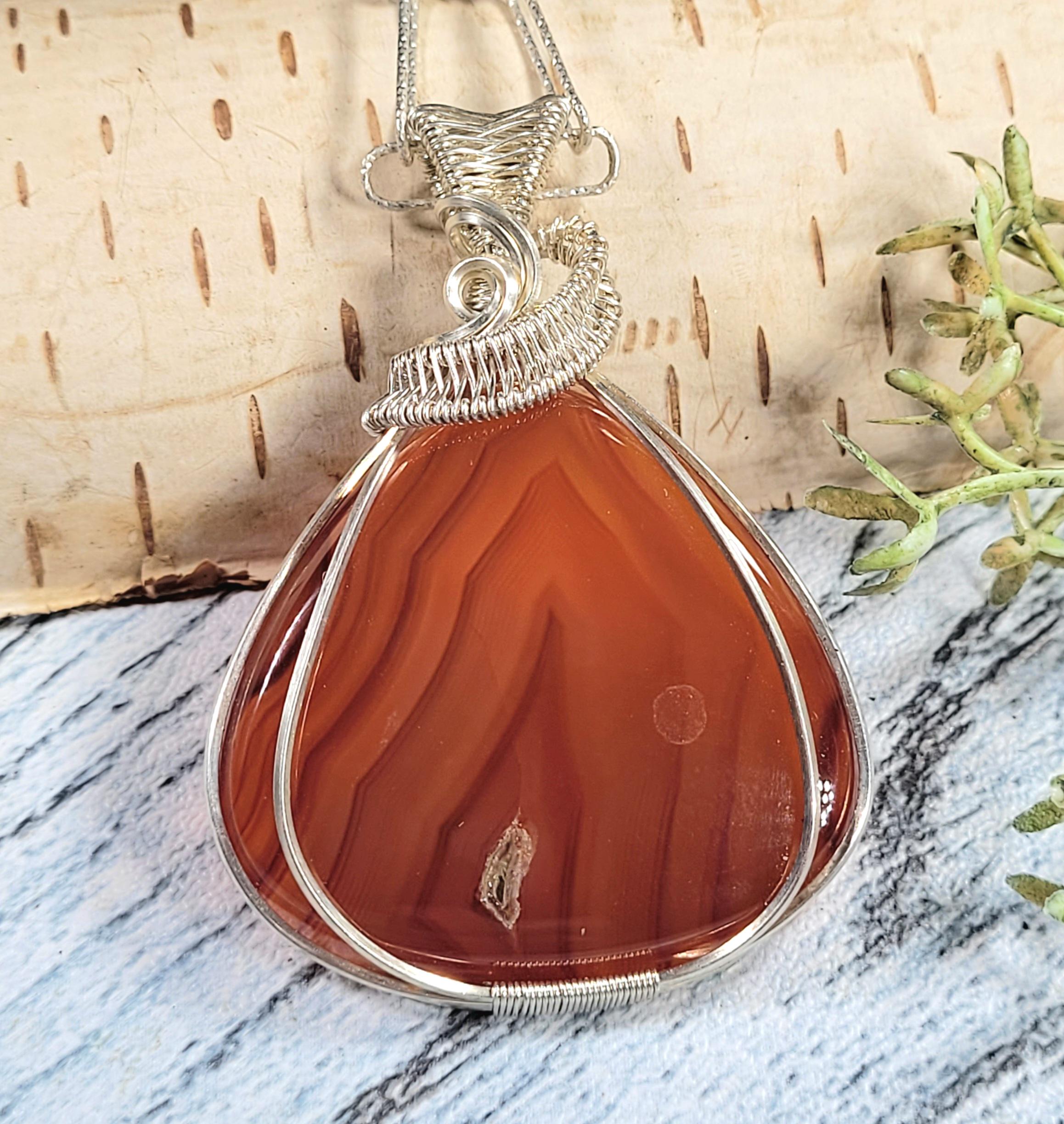 Natural Premium Grade Carnelian Pear Wire Wrapped .925 Sterling Silver Pendant 2 1/8" x 1 1/2" 16.5 Grams JE15. Handmade Wrapped Solid Sterling Silver. Absolutely gorgeous designer hand wrapped Sterling Silver with stunning detailed craftmanship. If you are unhappy with any of our items please email us before you leave review. We stand behind our jewelry 100% with full refund if not completely satisfied!! This is a handpicked natural stone, the exact one shown in picture. The sterling silver is .925 and stamped. Each piece is handmade by artisans in my shop. The quality of the stones and the silver craftmanship is impressive in all items. Please look at other items in my store. I sell ready made jewelry with handcrafted silver work, pendants with a sterling silver bails and beautiful unique stones for jewelry wire wrapping and weaving. You will pay exact amount on shipping plus $1 for supplies and labor. All items are shipped within a couple of days after payment and are shipped USPS first class or international first class. Items are available for combined shipping, if invoice does not combine please email me and I will combine for you. Average shipping will be $4 to 4.50 for USPS first class. International shipping is available for exact amount of shipping plus $1 for labor and supplies also. We also accept returns for refund or exchange. Thanks for viewing my store.