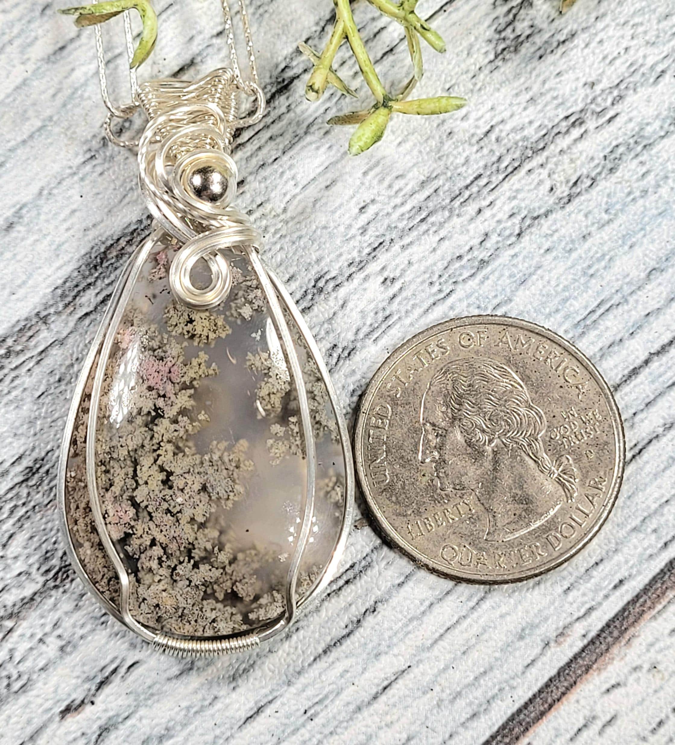 Natural AAA Moss Agate Oval Cabochon Wire wrapped .925 Sterling Silver Pendant 2 1/8" x 1" weighs 10.9 grams JE16. This is a handpicked natural stone, exact one shown in picture. This is a solid sterling silver wire wrapped pendant. Each piece is hand made by artisans in my shop. All silver is .925 solid silver. The quality of the stones and the silver workmanship is impressive. Please look at other items in my store. I sell ready made jewelry with handcrafted silver work, pendants with a sterling silver bails and beautiful unique stones for jewelry wire wrapping and weaving. All items over $35 ship for free in US. For items under $35 or international orders you will pay exact amount on shipping plus $1 for supplies and labor. All items are shipped within a couple of days after payment and are shipped USPS first class or international first class. Items are available for combined shipping, if invoice does not combine please email me and I will combine for you. Average shipping will be $4 to 4.50 for USPS first class. International shipping is available for exact amount of shipping plus $1 for labor and supplies also. We also accept returns for refund or exchange. Thanks for viewing my store.