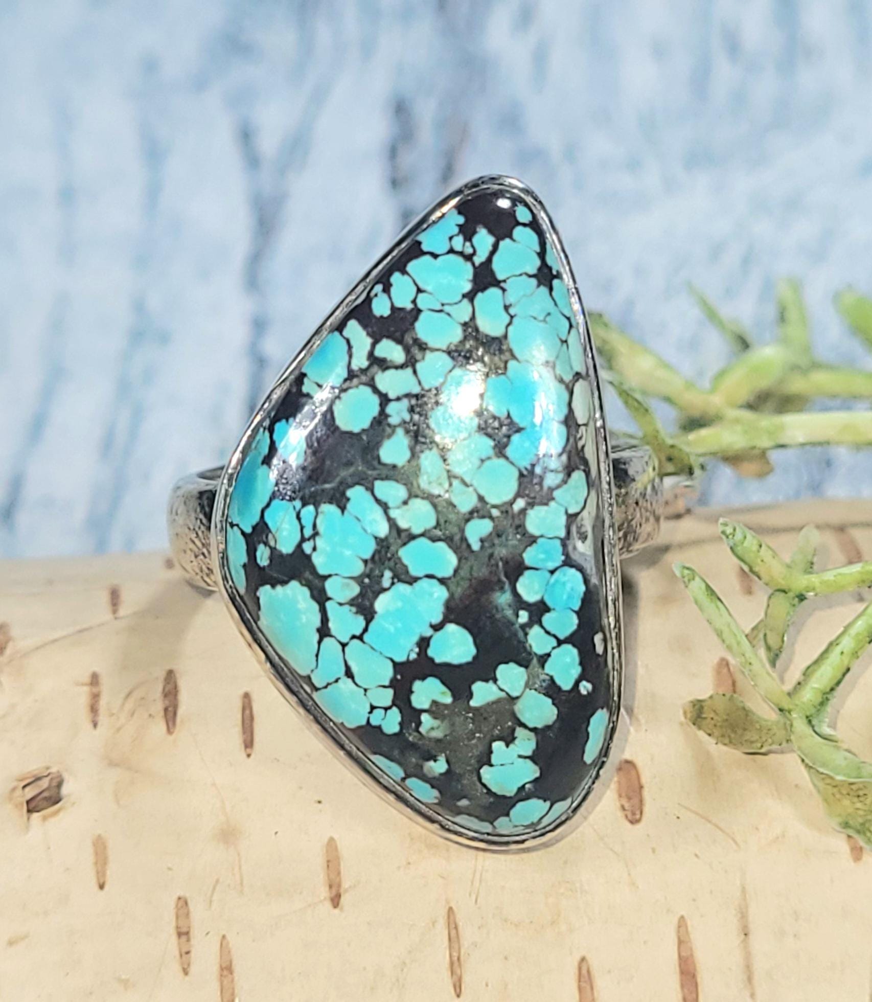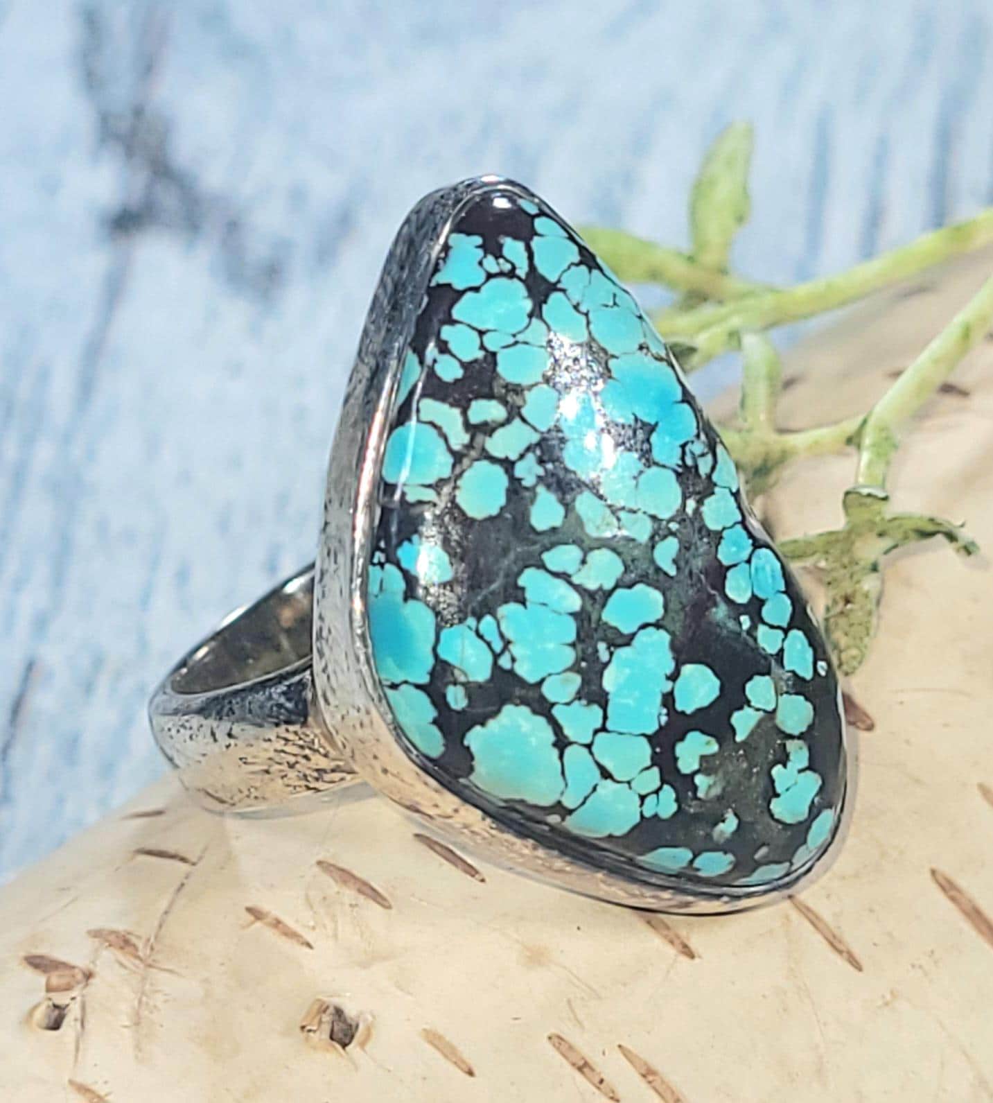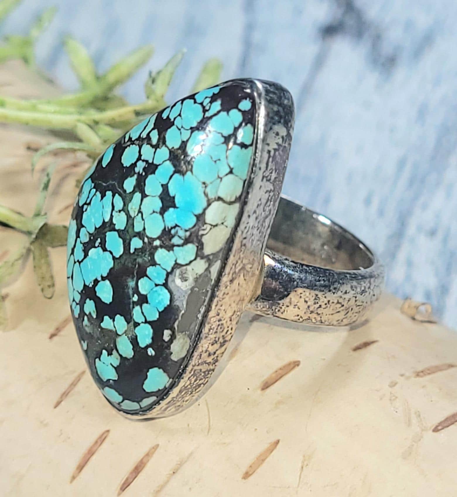 Natural High Grade Tibet Turquoise Freeform Handmade .925 Sterling Silver Ring Size 7 Face measures 1" x 5/8" and weighs 7.2 grams JE30. This is a handpicked natural stone, the exact one shown in picture. The sterling silver is .925 and stamped. Each piece is hand made by artisans in my shop. The quality of the stones and the silver workmanship is impressive. Please look at other items in my store. I sell ready made jewelry with hand crafted silver work, pendants with a sterling silver bails and beautiful unique cabochons for jewelry wire wrapping and weaving. You will pay exact amount on shipping plus $1 for supplies and labor. All items are shipped within a couple of days after payment and are shipped USPS first class or international first class. Items are available for combined shipping, if invoice does not combine please email me and I will combine for you. Average shipping will be $4 to 4.50 for USPS first class. International shipping is available for exact amount of shipping plus $1 for labor and supplies also. We also accept returns for refund or exchange. Thanks for viewing my store