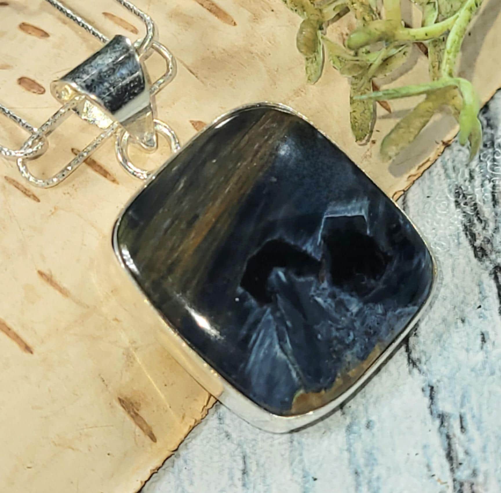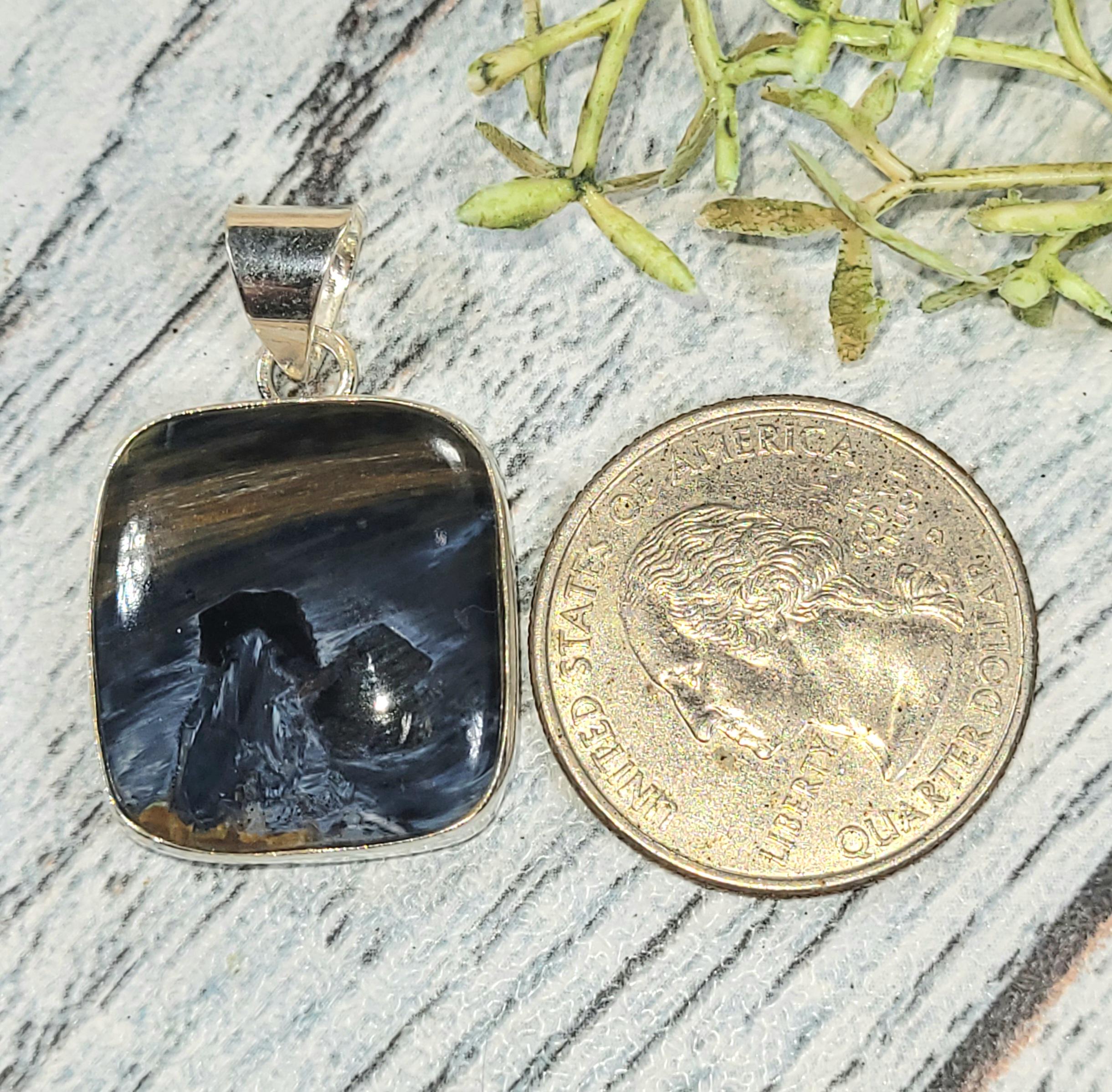 Natural Premium Grade Pietersite Square .925 Sterling Silver Pendant measures 1 3/8" x 13/16" and weighs 6.6 grams JE20. If you're not pleased with the item you receive please email us before leaving review. We stand behind our jewelry 100% and will refund you or send a replacement to make sure you're happy with your purchase!! This is a handpicked natural stone, the exact one shown in picture. The sterling silver is .925 and stamped. Each piece is handmade by artisans in my shop. The quality of the stones and the silver craftmanship is impressive. Please look at other items in my store. I sell ready made jewelry with handcrafted silver work, pendants with a sterling silver bails and beautiful unique stones for jewelry wire wrapping and weaving. You will pay exact amount on shipping plus $1 for supplies and labor. All items are shipped within a couple of days after payment and are shipped USPS first class or international first class. Items are available for combined shipping, if invoice does not combine please email me and I will combine for you. Average shipping will be $4 to 4.50 for USPS first class. International shipping is available for exact amount of shipping plus $1 for labor and supplies also. We also accept returns for refund or exchange. Thanks for viewing my store.