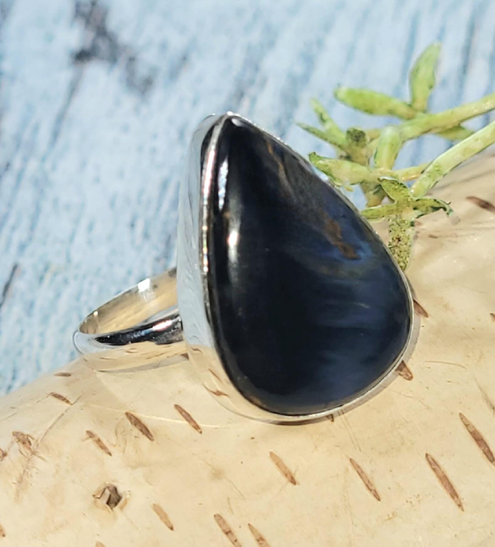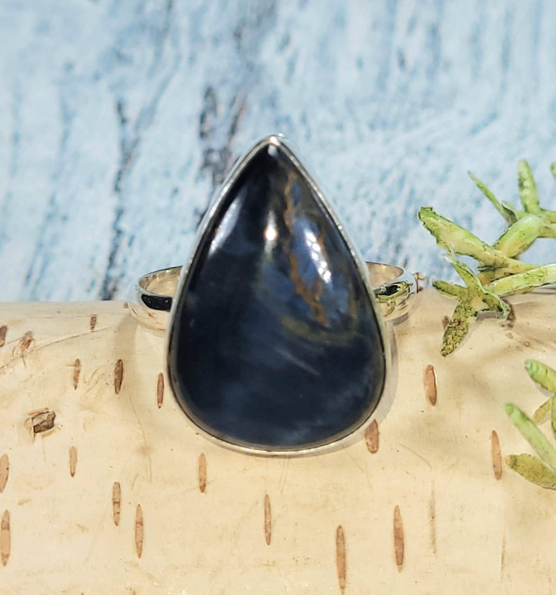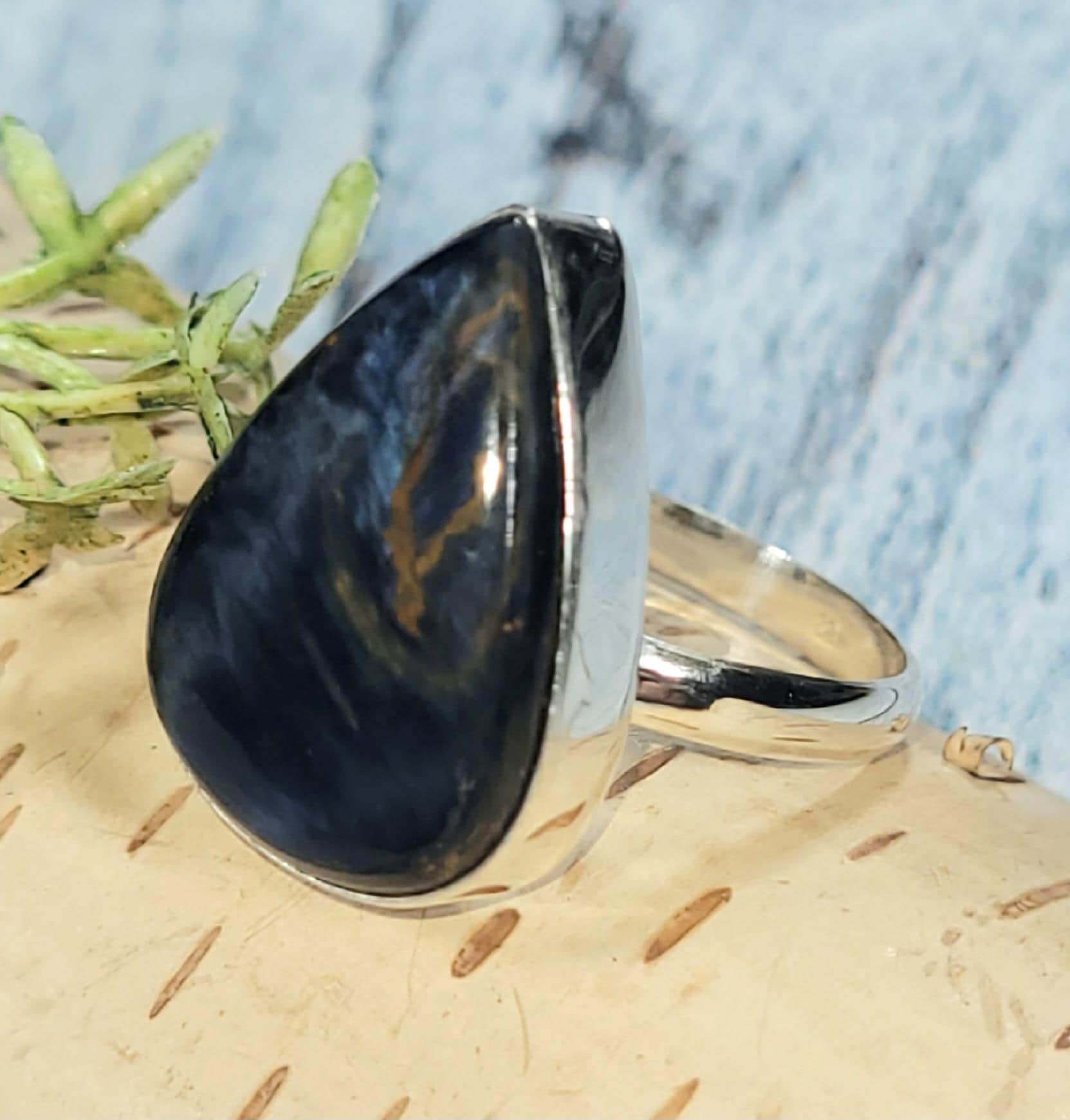 Natural High Grade Pietersite Pear .925 Sterling Silver Ring measures 7/8" x 5/8" and weighs 6.1 grams JE27. Solid Sterling Silver Ring Size 10. Our items are hand picked one of a kind, so if you see one you like, it is the only one like that. If you're not pleased with the item you receive, please email us before leaving review. We stand behind our jewelry 100% and will refund you or send a replacement to make sure you're happy with your purchase!! This is a handpicked natural stone, the exact one shown in picture. The sterling silver is .925 and stamped. Each piece is handmade by artisans in my shop. The quality of the stones and the silver craftmanship is impressive. Please look at other items in my store. I sell ready made jewelry with handcrafted silver work, pendants with a sterling silver bails and beautiful unique stones for jewelry wire wrapping and weaving. You will pay exact amount on shipping plus $1 for supplies and labor. All items are shipped within a couple of days after payment and are shipped USPS first class or international first class. Items are available for combined shipping, if invoice does not combine please email me and I will combine for you. Average shipping will be $4 to 4.50 for USPS first class. International shipping is available for exact amount of shipping plus $1 for labor and supplies also. We also accept returns for refund or exchange. Thanks for viewing my store.