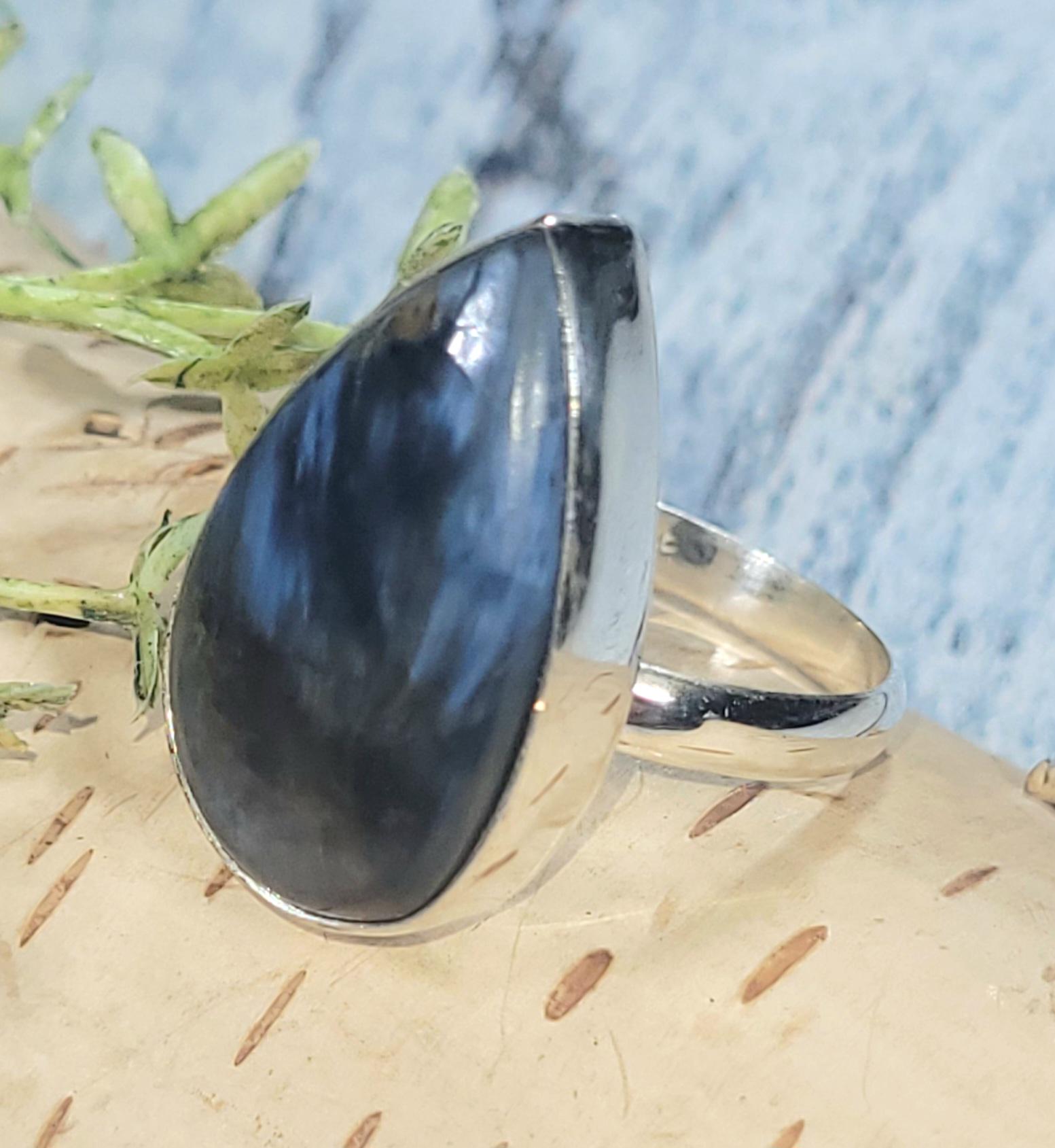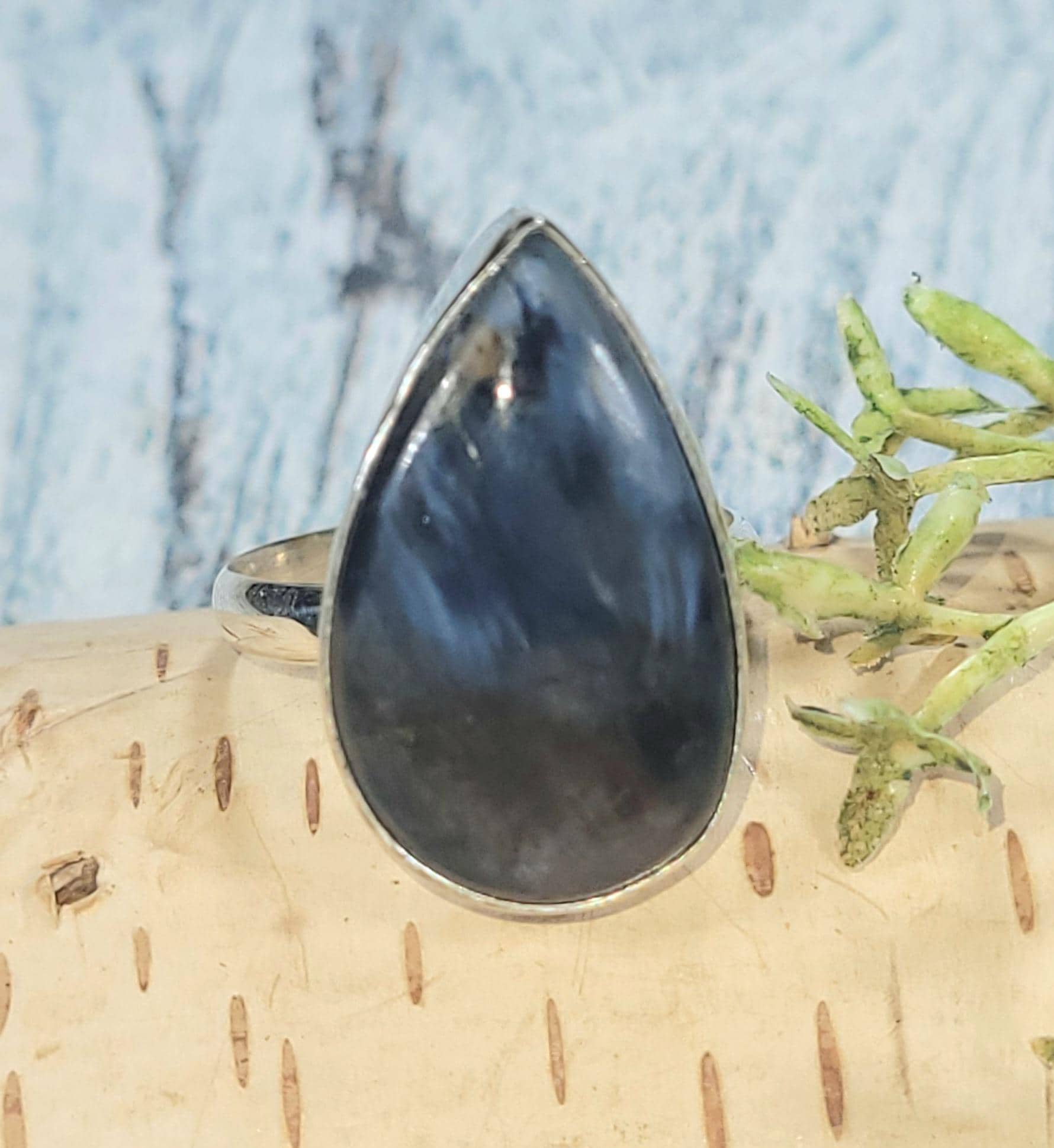 Natural High Grade Pietersite Pear .925 Sterling Silver Ring measures 1" x 9/16" and weighs 5.3 grams JE29. Solid Sterling Silver Ring Size 8. Our items are hand picked one of a kind, so if you see one you like, it is the only one like that. If you're not pleased with the item you receive, please email us before leaving review. We stand behind our jewelry 100% and will refund you or send a replacement to make sure you're happy with your purchase!! This is a handpicked natural stone, the exact one shown in picture. The sterling silver is .925 and stamped. Each piece is handmade by artisans in my shop. The quality of the stones and the silver craftmanship is impressive. Please look at other items in my store. I sell ready made jewelry with handcrafted silver work, pendants with a sterling silver bails and beautiful unique stones for jewelry wire wrapping and weaving. You will pay exact amount on shipping plus $1 for supplies and labor. All items are shipped within a couple of days after payment and are shipped USPS first class or international first class. Items are available for combined shipping, if invoice does not combine please email me and I will combine for you. Average shipping will be $4 to 4.50 for USPS first class. International shipping is available for exact amount of shipping plus $1 for labor and supplies also. We also accept returns for refund or exchange. Thanks for viewing my store.