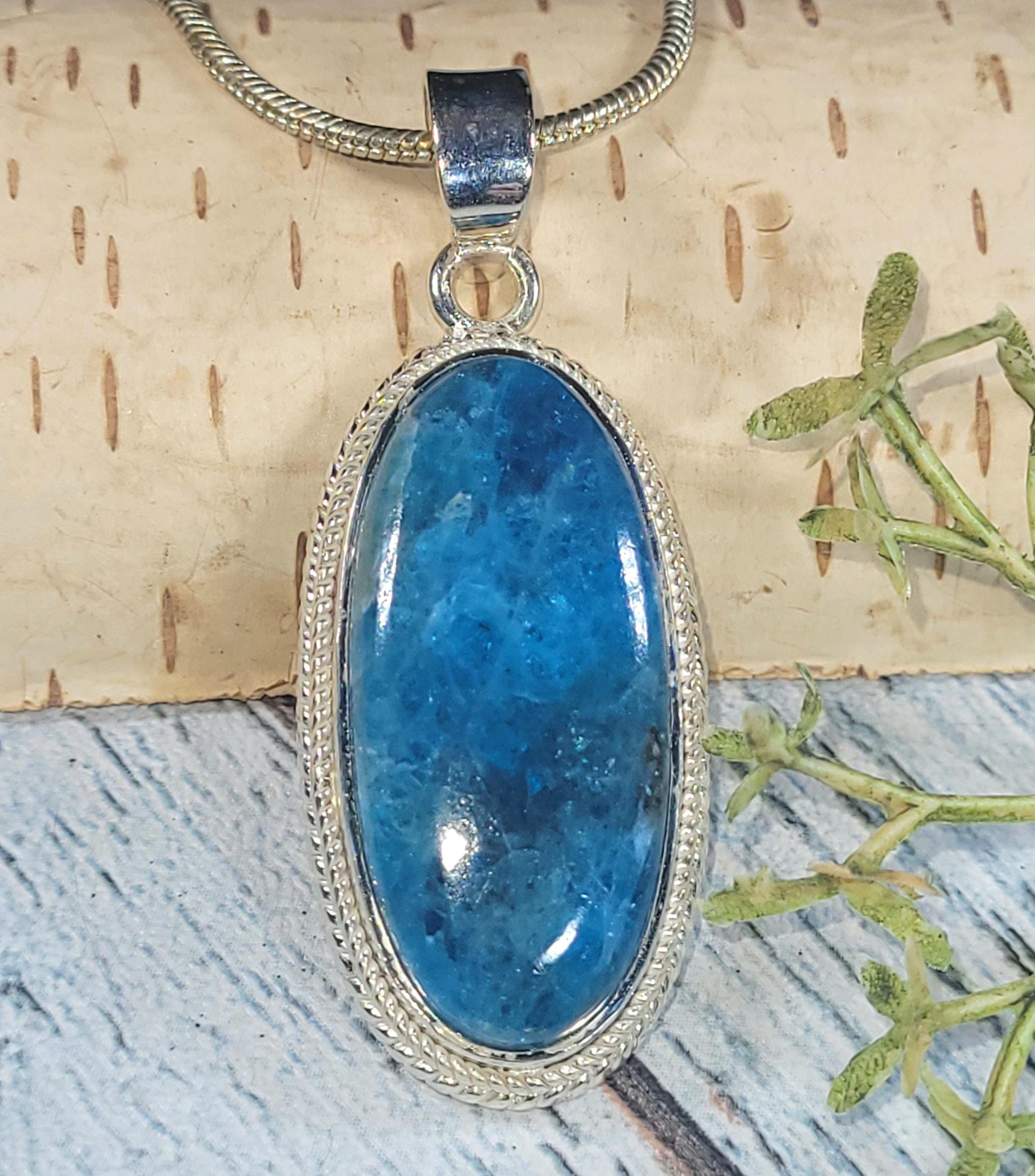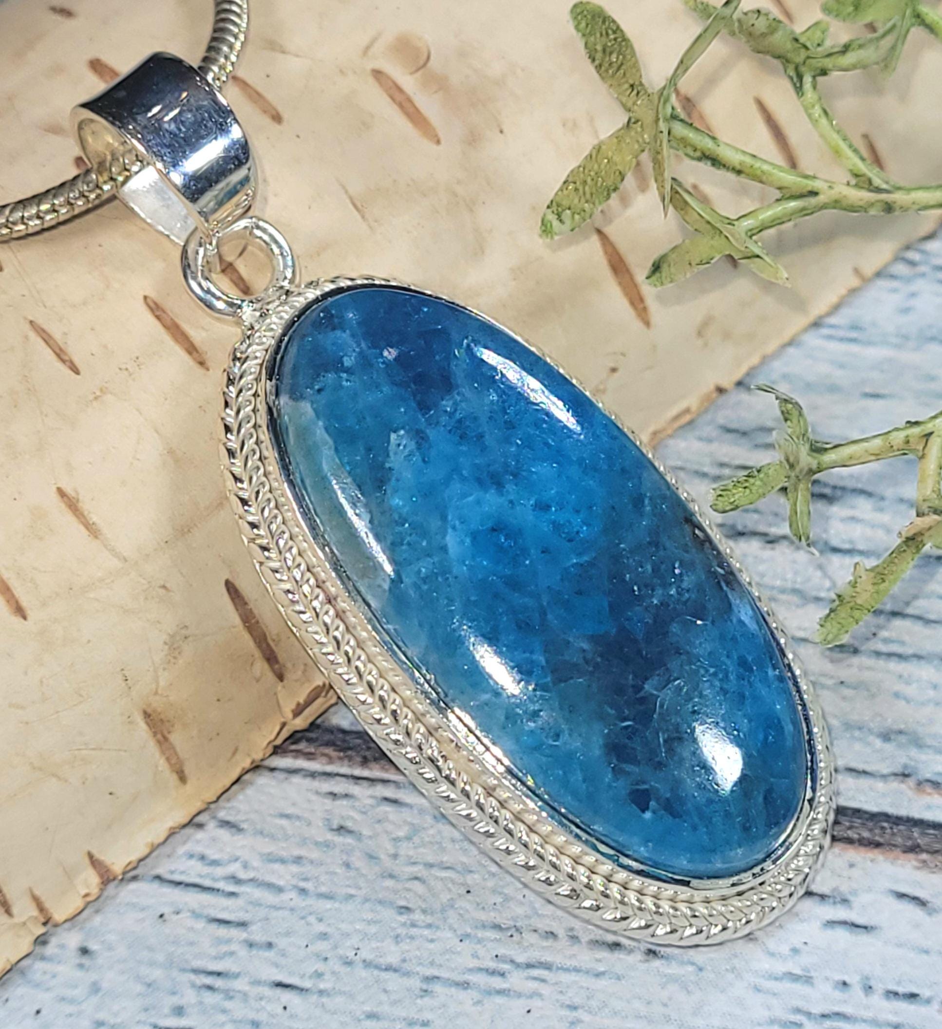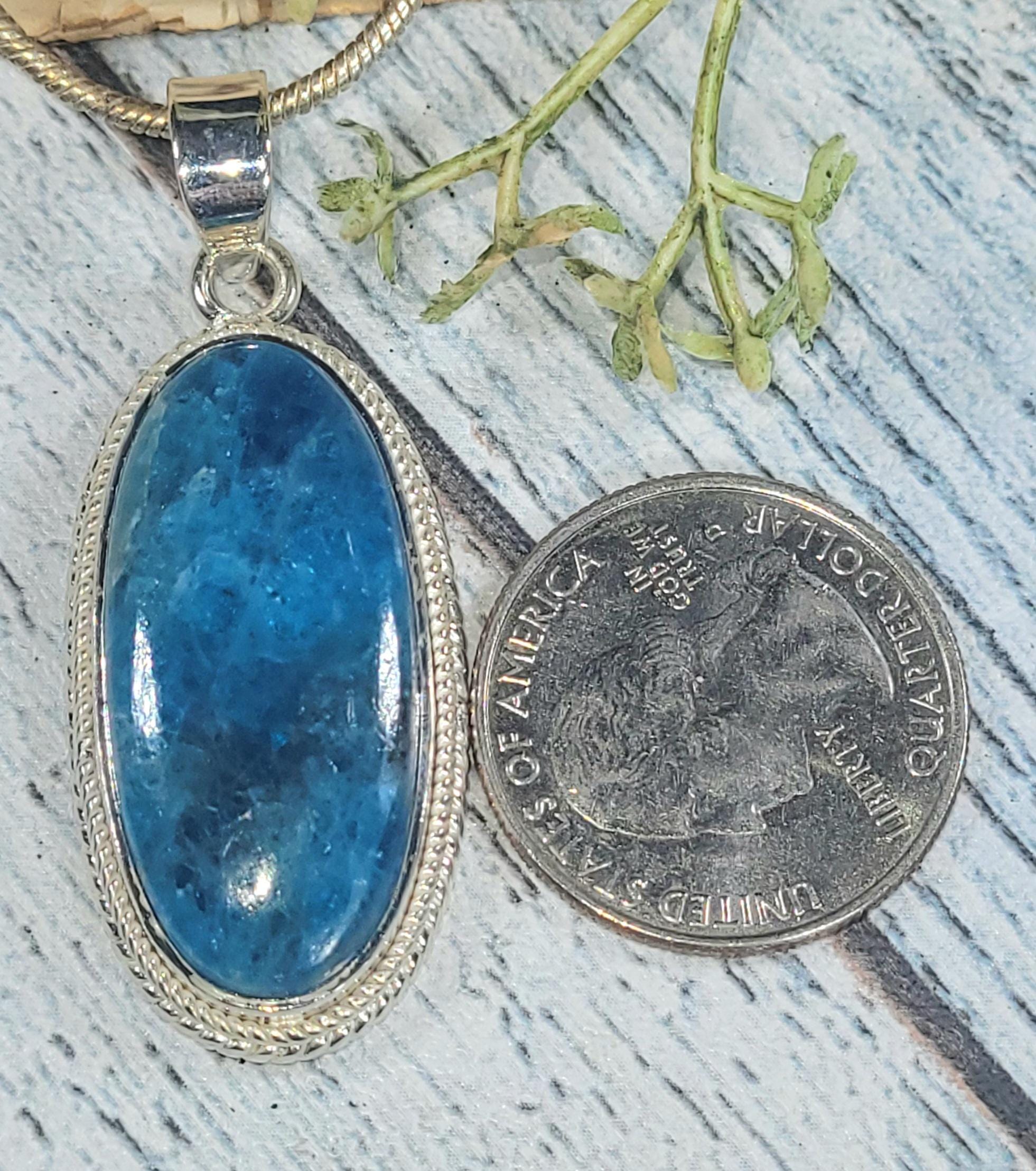 Natural AAA Grade Apatite Oval Handmade .925 Sterling Silver Pendant weighs 14.5 grams measures 2" x 3/4" "Statement Pendant", JH01. This is a handpicked natural stone, the exact one shown in picture. The sterling silver is .925 and stamped. Each piece is hand made by artisans in my shop. The quality of the stones and the silver workmanship is hard to beat. Please look at other items in my store. I sell ready made jewelry with hand crafted silver work, pendants with a sterling silver bails and beautiful unique stones for jewelry wire wrapping and weaving. You will pay exact amount on shipping plus $1 for supplies and labor. All items are shipped within a couple of days after payment and are shipped USPS first class or international first class. Items are available for combined shipping, if invoice does not combine please email me and I will combine for you. Average shipping will be $4 to 4.50 for USPS first class. International shipping is available for exact amount of shipping plus $1 for labor and supplies also. We also accept returns for refund or exchange. Thanks for viewing my store.