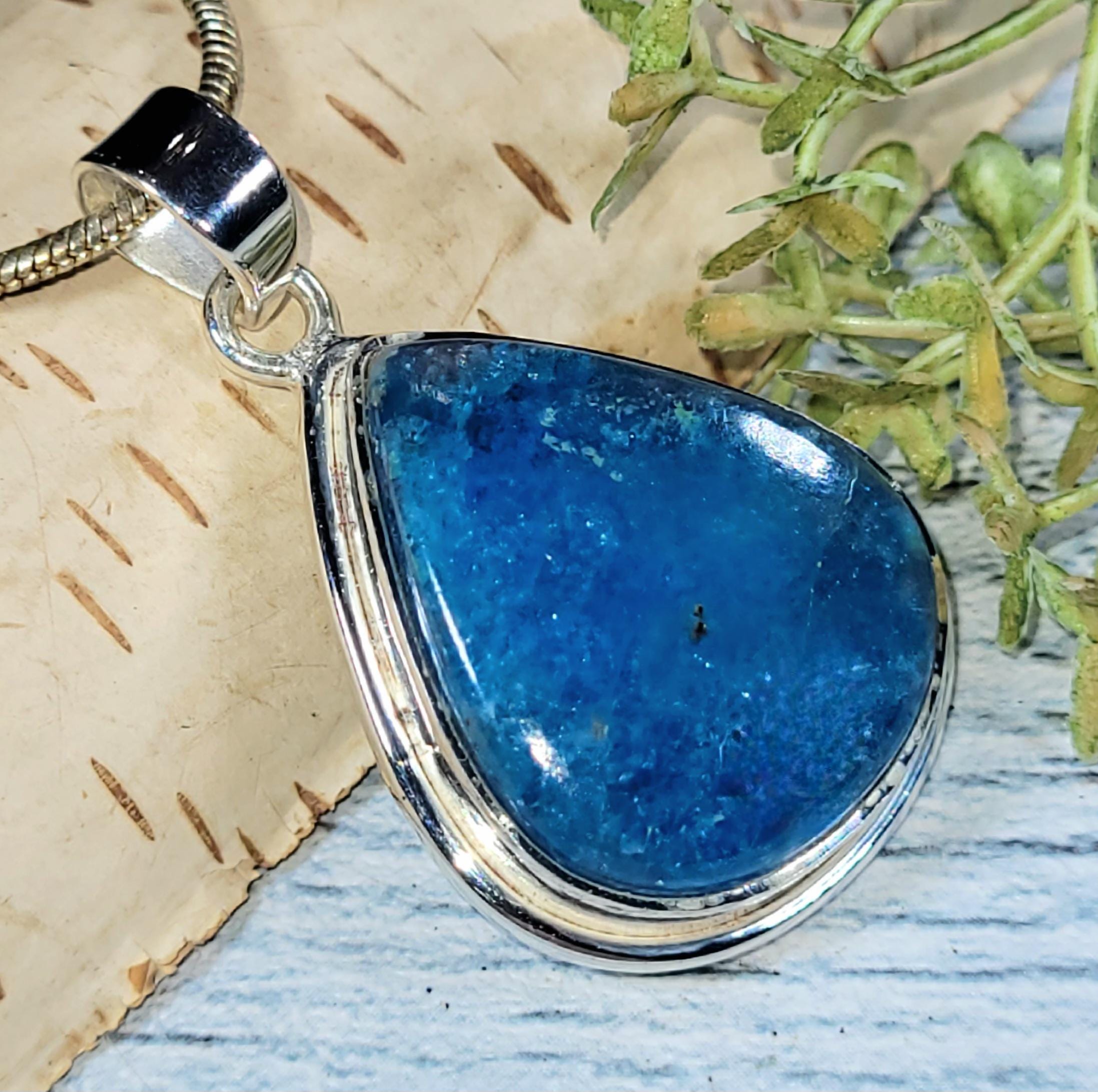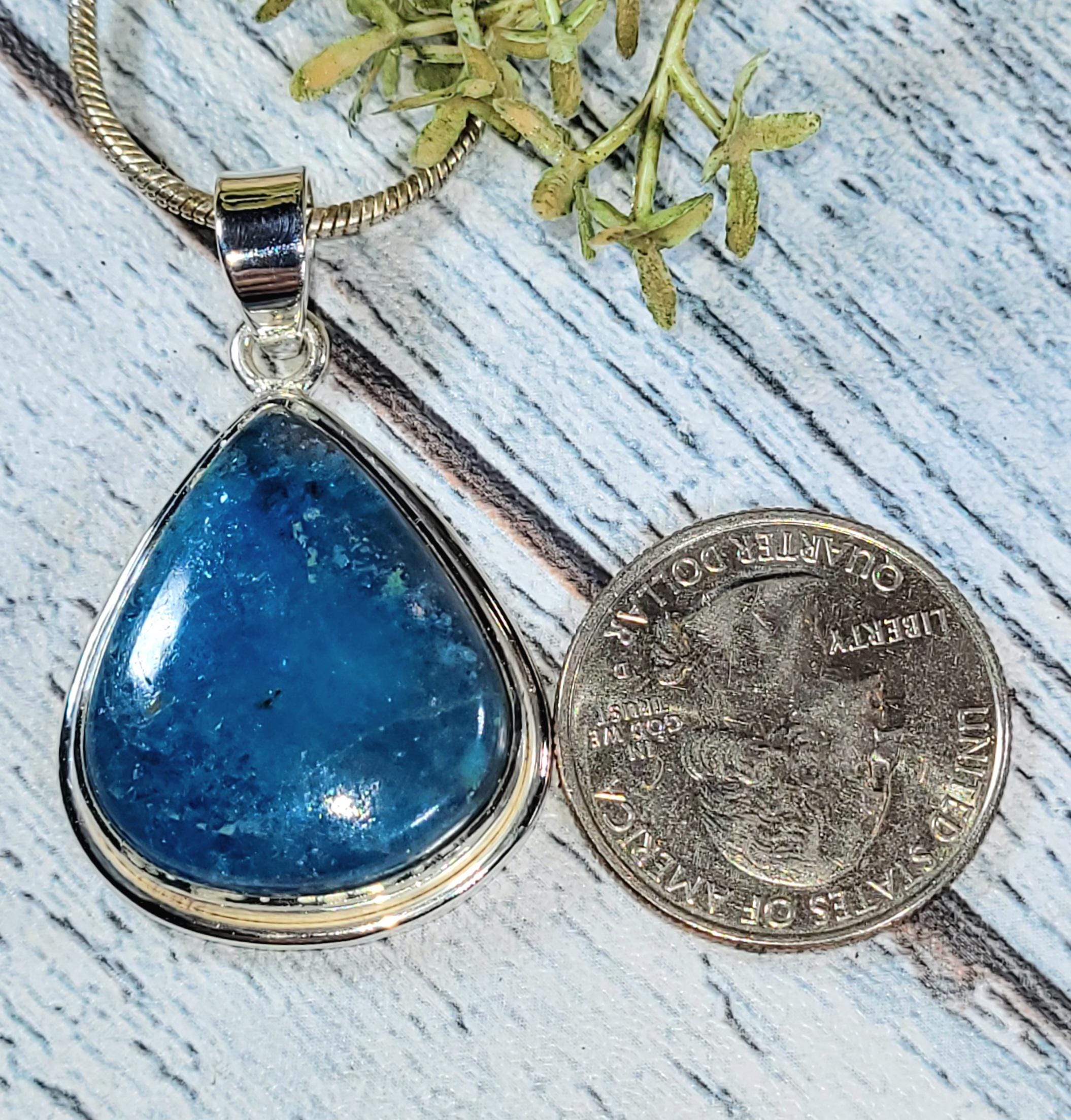 Natural Premium AAA Grade Apatite Pear Handmade .925 Sterling Silver Pendant weighs 12.9 grams measures 1 3/4" x 1". Statement Apatite .925 Silver Pendant JH16. Gift for Her in Solid Sterling Silver. This is a handpicked natural stone, the exact one shown in picture. The sterling silver is .925 and stamped. Each piece is hand made by artisans in my shop. The quality of the stones and the silver workmanship is hard to beat. Please look at other items in my store. I sell ready made jewelry with hand crafted silver work, pendants with a sterling silver bails and and beautiful unique stones for jewelry wire wrapping and weaving. You will pay exact amount on shipping plus $1 for supplies and labor. All items are shipped within a couple of days after payment and are shipped USPS first class or international first class. Items are available for combined shipping, if invoice does not combine please email me and I will combine for you. Average shipping will be $4 to 4.50 for USPS first class. International shipping is available for exact amount of shipping plus $1 for labor and supplies also. We also accept returns for refund or exchange. Thanks for viewing my store.