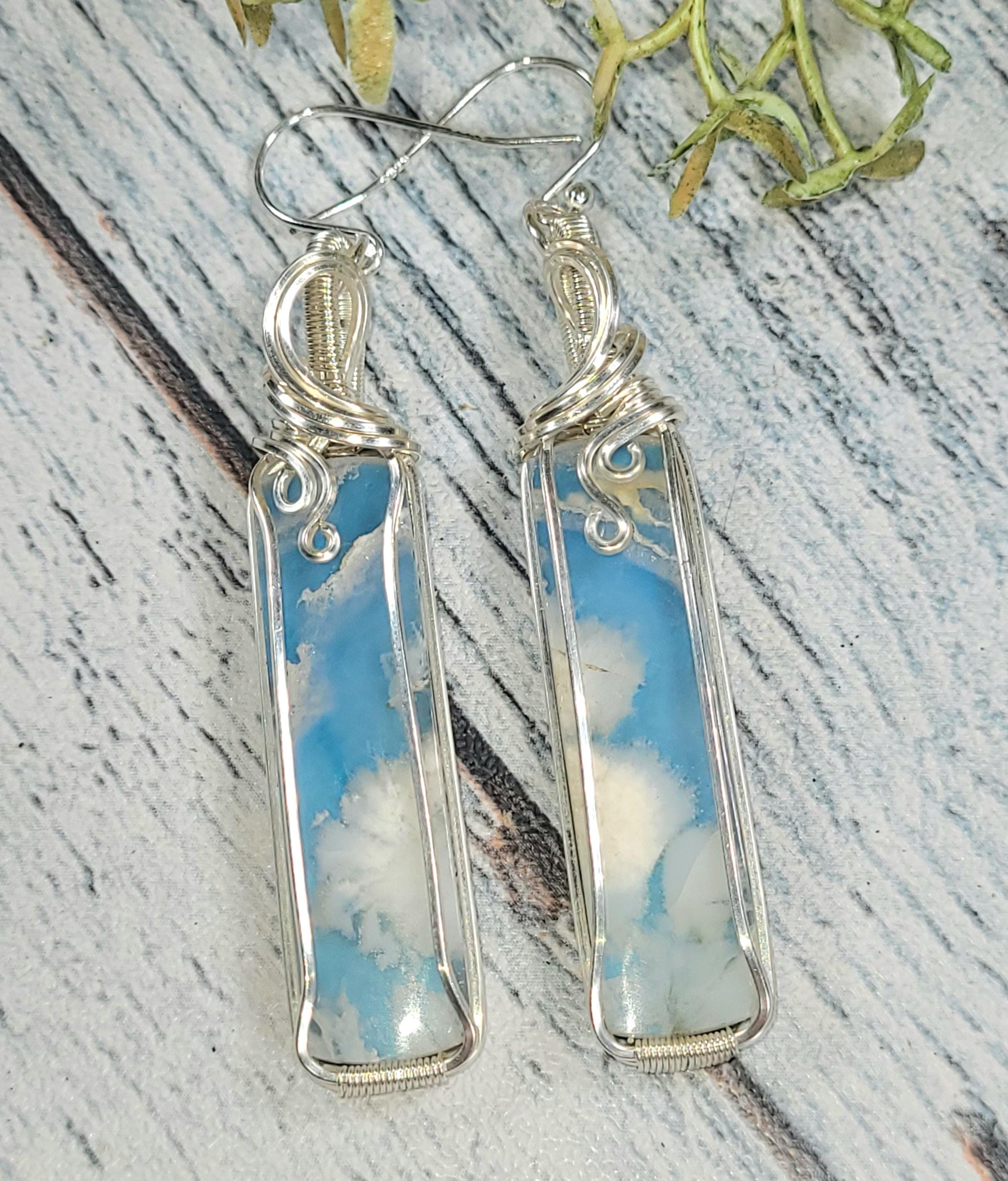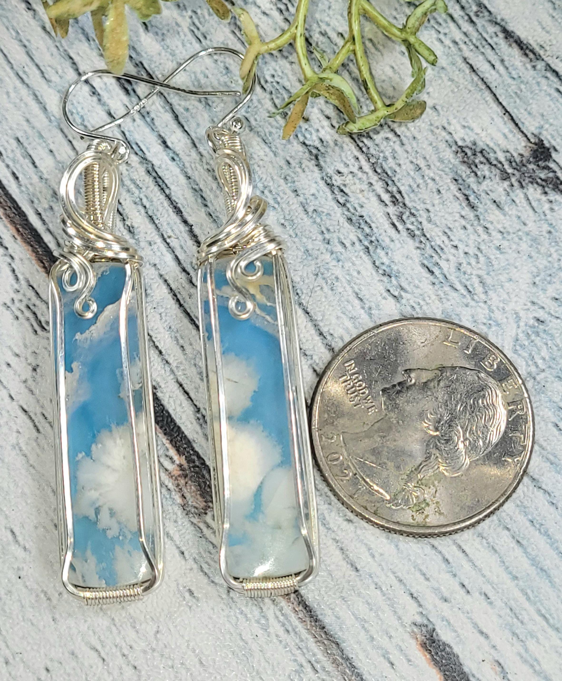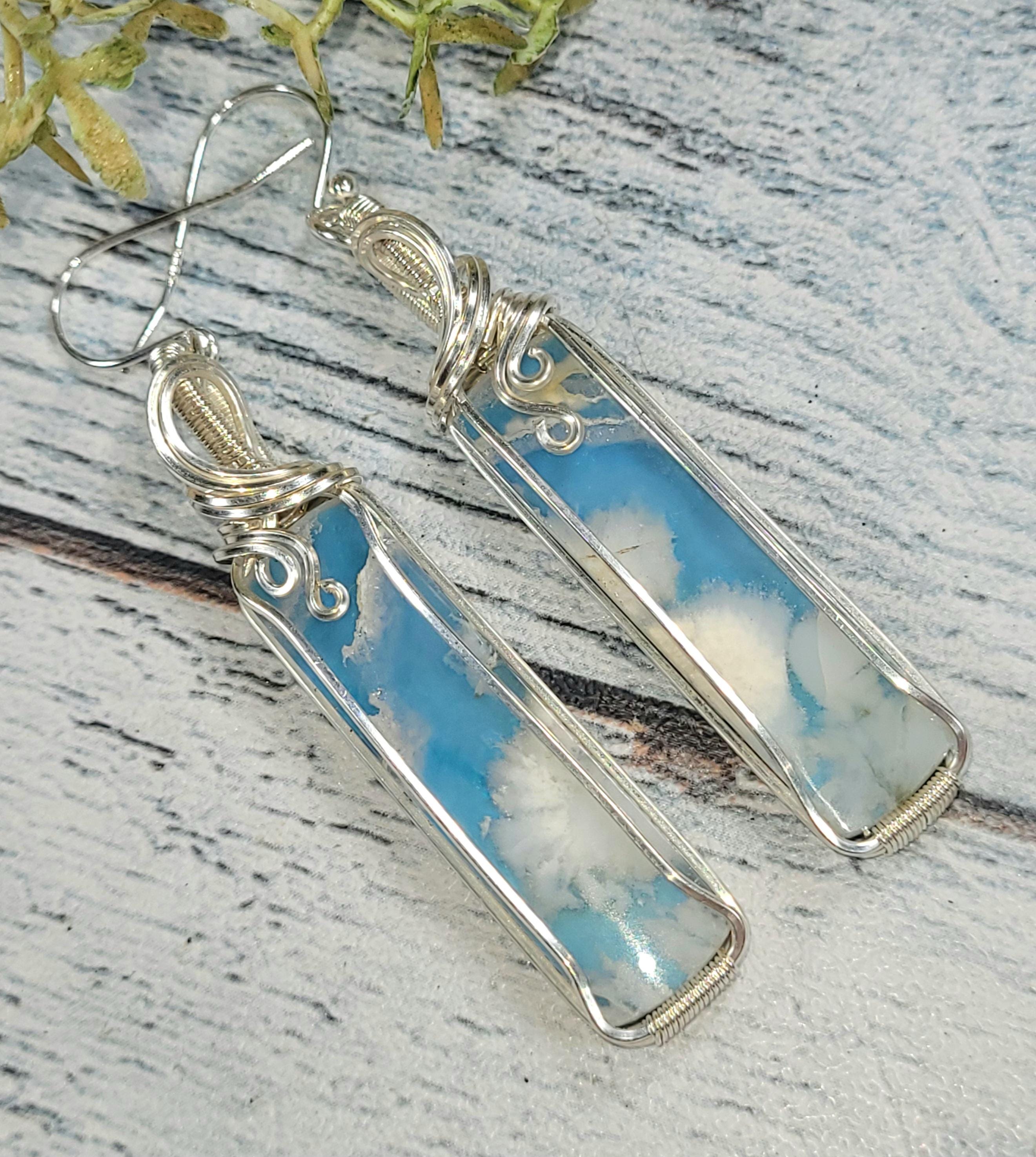 White Plume Doublet Agate Hand Wrapped Wire Weaved .925 Sterling Silver Earrings 2 5/8" x 1/2" weighs 10.1 Grams JG30. Handmade Wrapped Solid Sterling Silver. Absolutely gorgeous designer hand wrapped Sterling Silver with stunning detailed craftmanship. If you are unhappy with any of our items please email us before you leave review. Since we can not mark the wire wrapped pendants, we will refund you immediately if tested not sterling silver. We stand behind our jewelry 100% with full refund if not completely satisfied!! This is a handpicked natural doublet stone, with black onyx on the back of earrings, the exact one shown in picture.. Each piece is handmade by artisans in my shop. The quality of the stones and the silver craftmanship is impressive in all items. Please look at other items in my store. FREE SHIPPING ON ALL ITEMS OVER $35. I sell ready made jewelry with handcrafted silver work, pendants with a sterling silver bails and beautiful unique stones for jewelry wire wrapping and weaving. You will pay exact amount on shipping plus $1 S supplies and labor. All items are shipped within a A day after payment and are shipped USPS first class or international first class. Items are available for combined shipping, if invoice does not combine please email me and I will combine for you. Average shipping will be $4 to 4.50 for USPS first class. International shipping is available for exact amount of shipping plus $1 for labor and supplies also. We also accept returns for refund or exchange. Thanks for viewing my store.