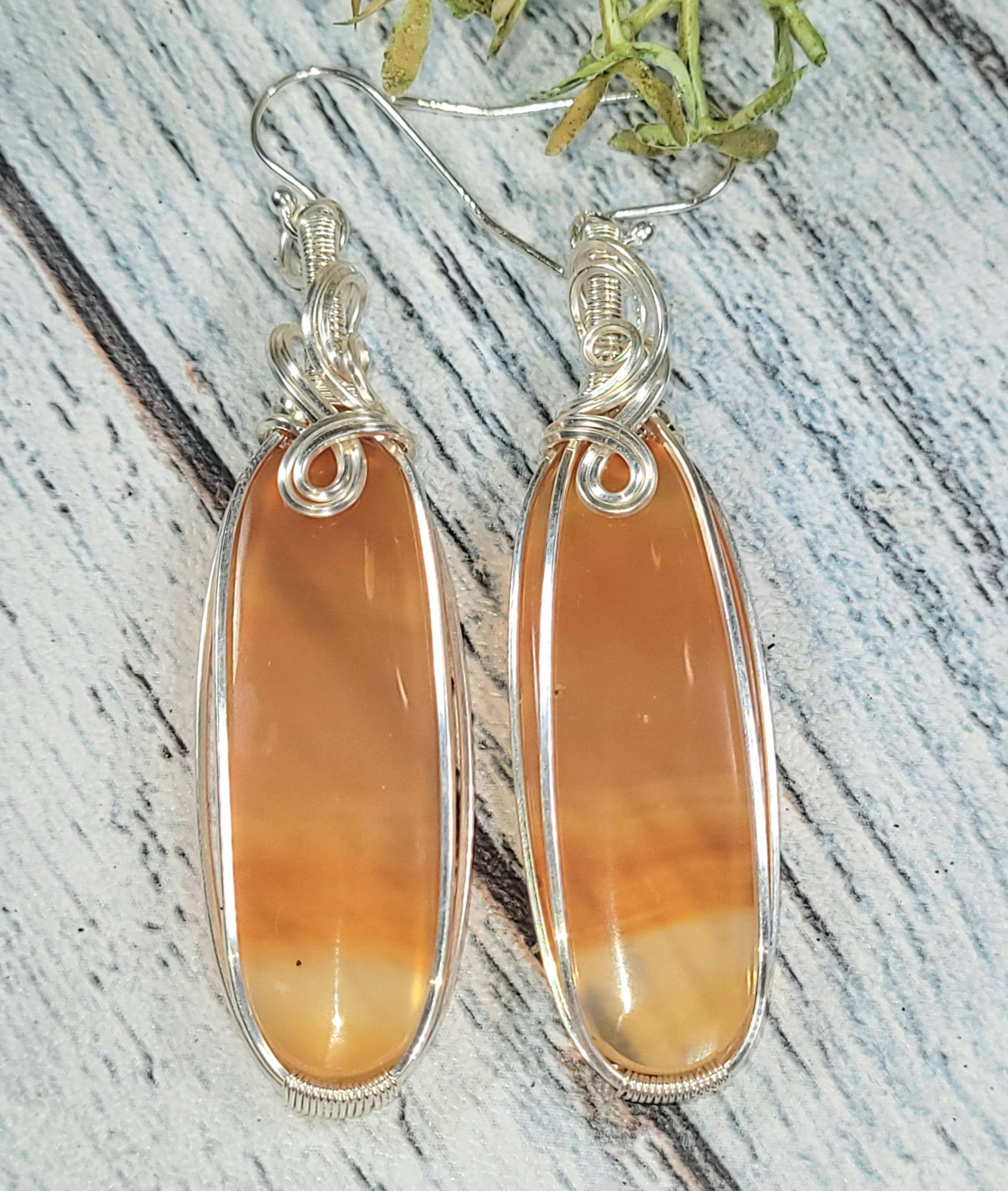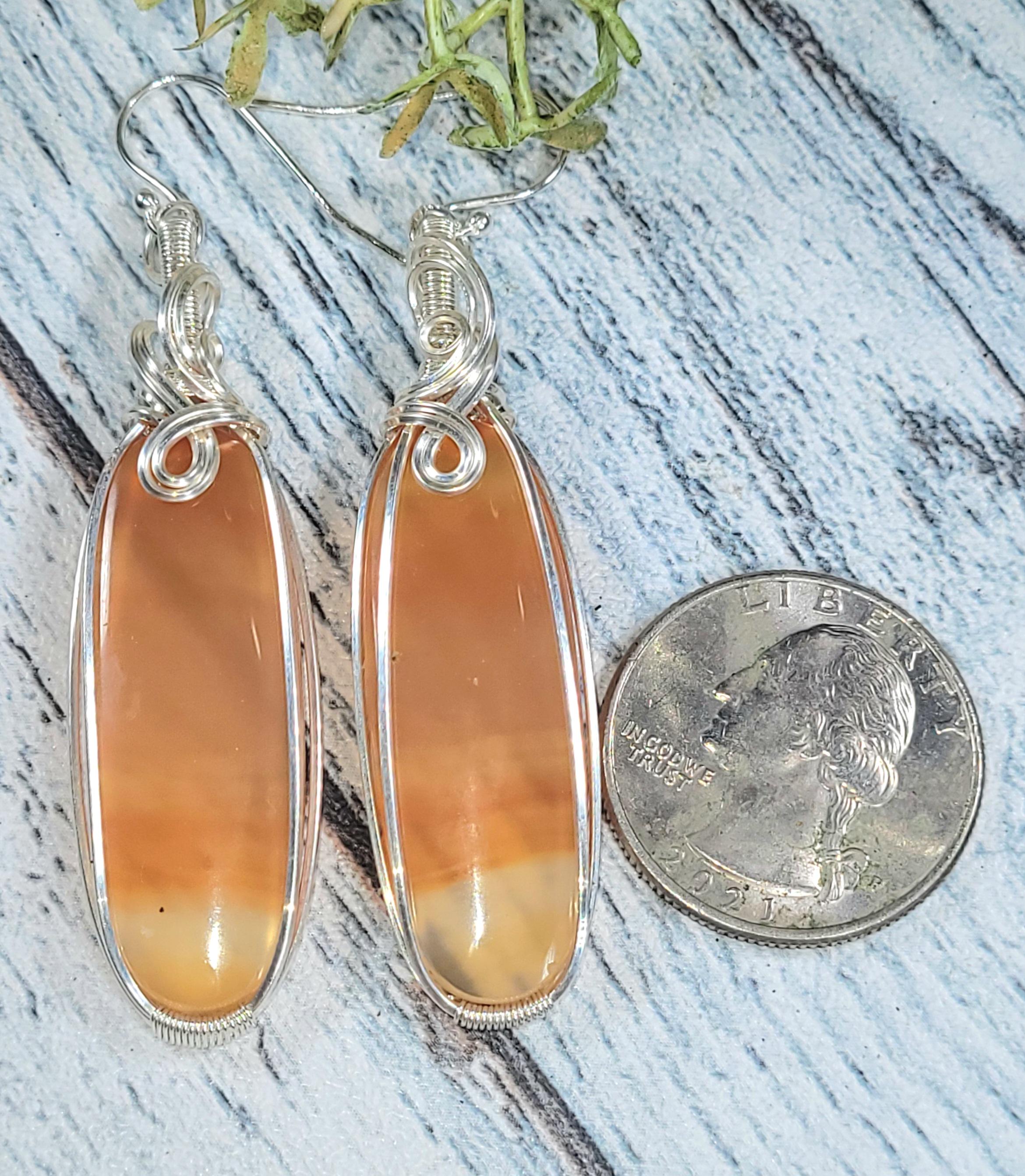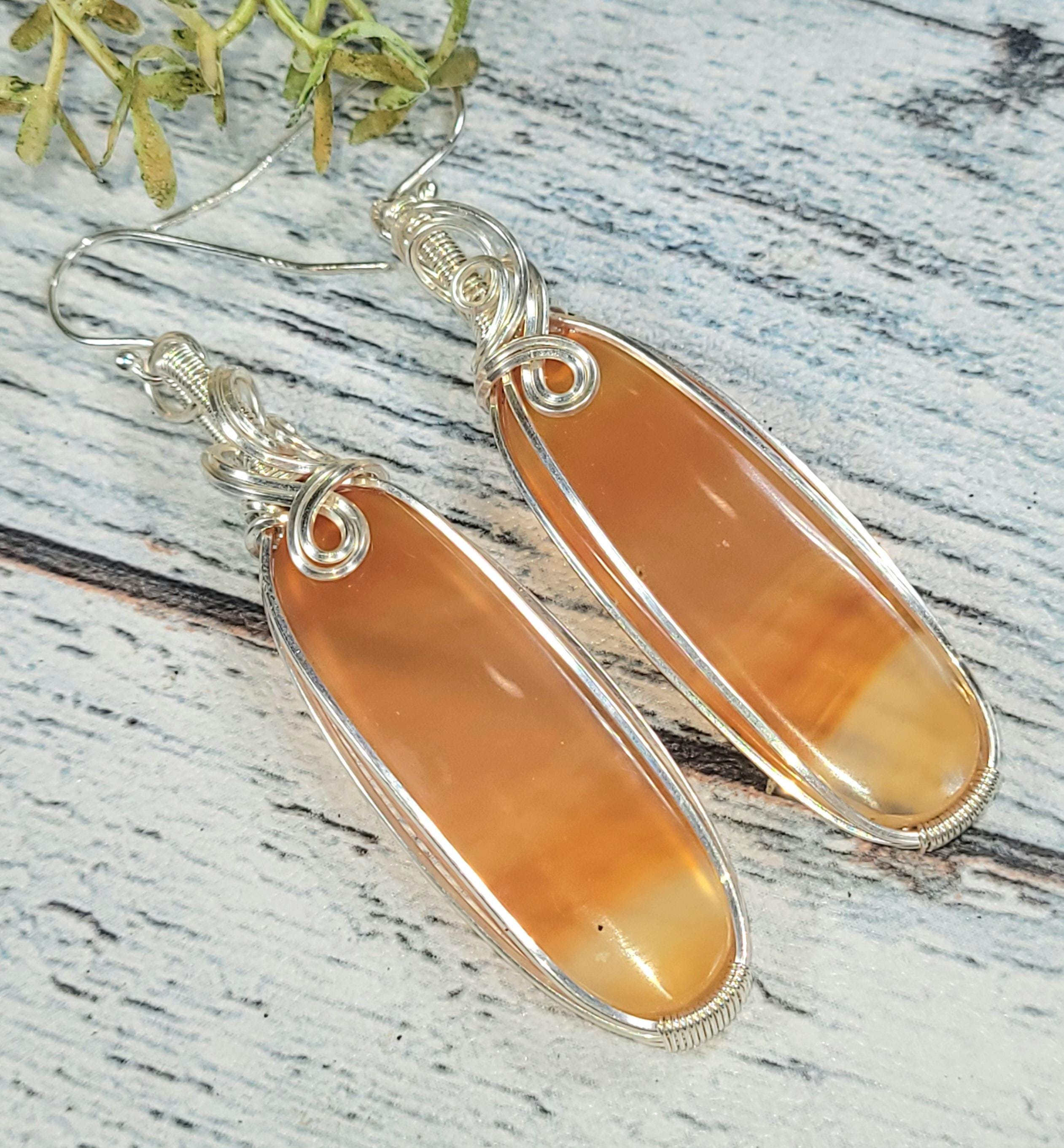 Natural High Quality Oval Carnelian .925 Sterling Silver Hand Wire Wrapped Earrings weigh 13.5 Grams measure 2 5/8" x 5/8" JG31 -This is a handpicked natural stone, the exact one shown in picture. The sterling silver is .925 and stamped. Each piece is handmade by artisans in my shop. The quality of the stones and the silver workmanship is impressive. Please look at other items in my store. I sell ready made jewelry with hand crafted silver work, pendants with a sterling silver bails and beautiful unique stones for jewelry wire wrapping and weaving. You will pay exact amount on shipping plus $1 for supplies and labor. All items are shipped within a couple of days after payment and are shipped USPS first class or international first class. Items are available for combined shipping, if invoice does not combine please email me and I will combine for you. Average shipping will be $4 to 4.50 for USPS first class. International shipping is available for exact amount of shipping plus $1 for labor and supplies also. We also accept returns for refund or exchange. Thanks for viewing my store