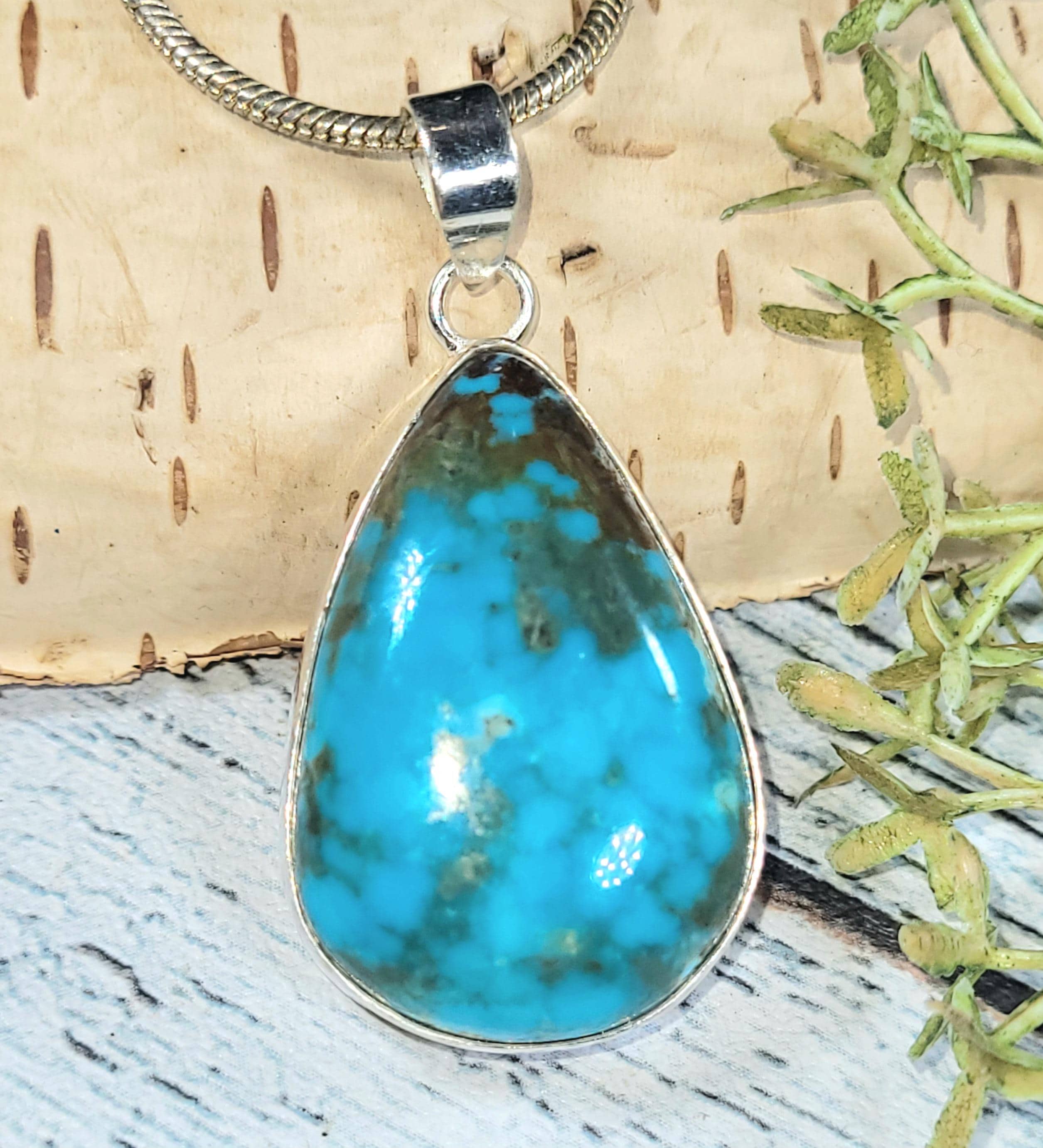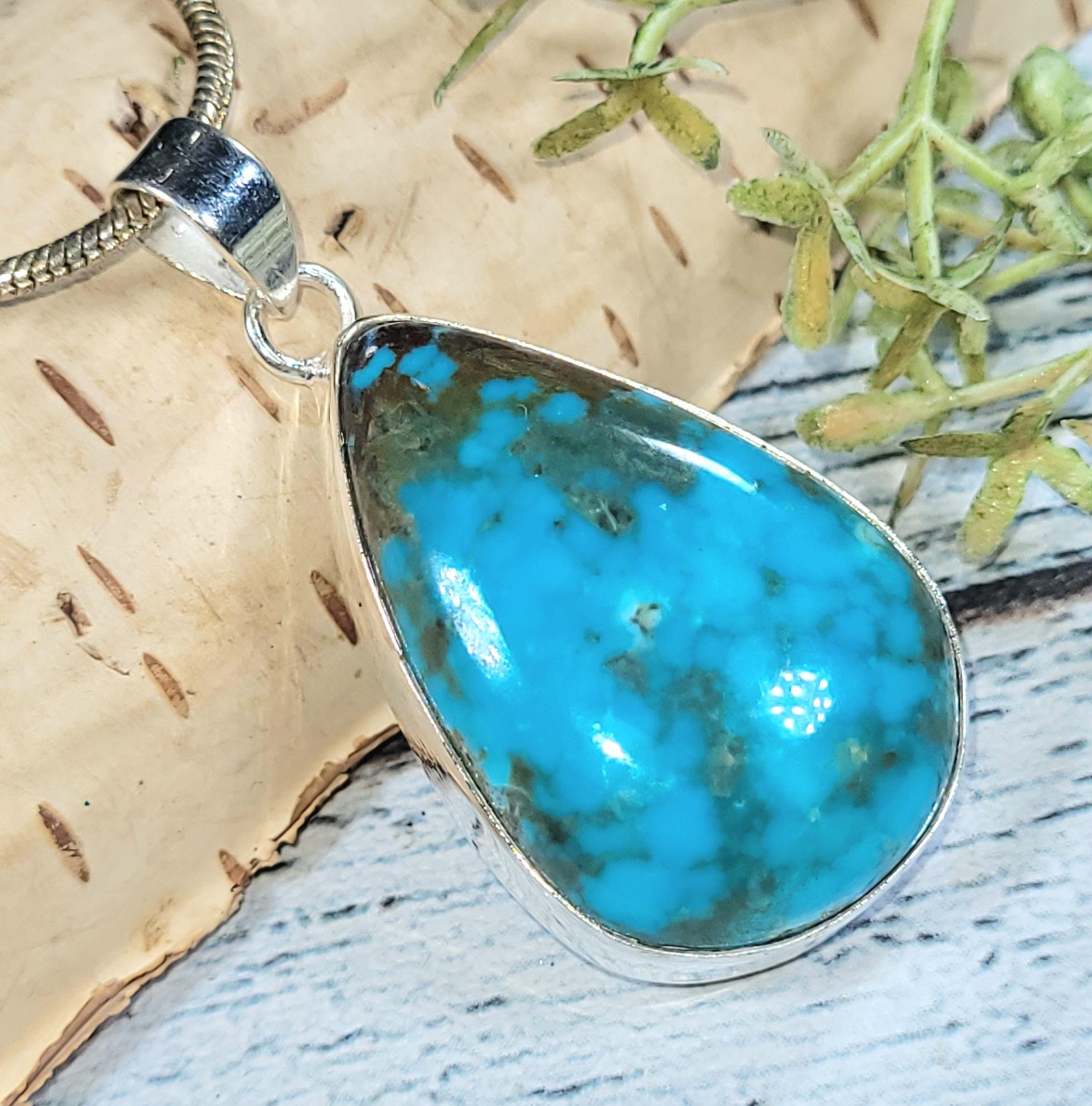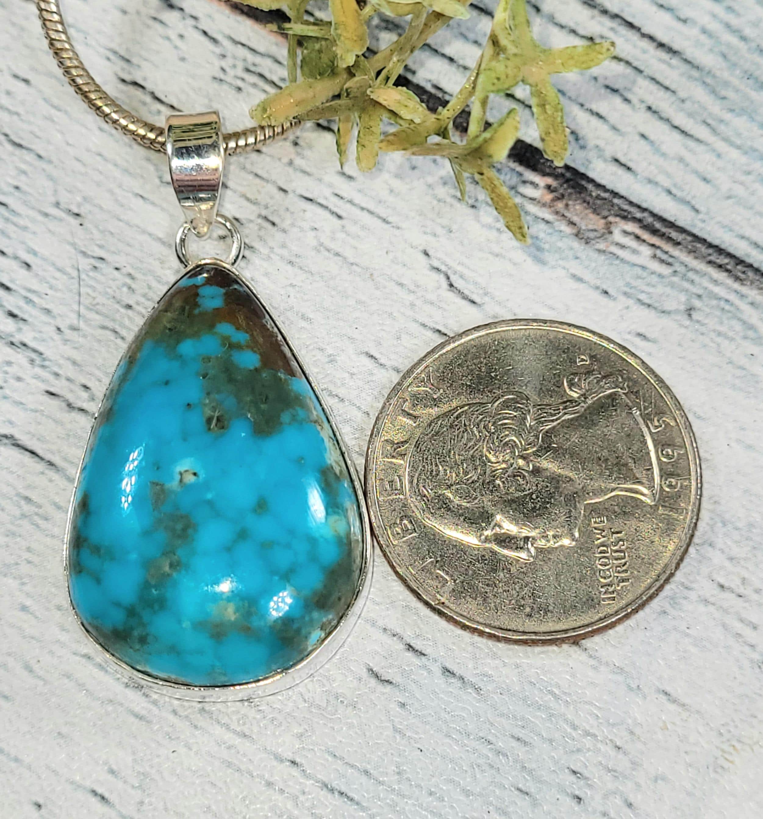 Natural High Grade Arizona Turquoise Handmade .925 Sterling Silver Pendant measures 1 3/4" x 7/8" and weighs 10.1 grams JS05. This is a handpicked natural stone, the exact one shown in picture. The sterling silver is .925 and stamped. Each piece is hand made by artisans in my shop. The quality of the stones and the silver workmanship is impressive. Please look at other items in my store. I sell ready-made jewelry with hand crafted silver work, pendants with a sterling silver bails and beautiful unique stones for jewelry wire wrapping and weaving. You will pay exact amount on shipping plus $1 for supplies and labor. All items are shipped within a couple of days after payment and are shipped USPS first class or international first class. Items are available for combined shipping, if invoice does not combine, please email me and I will combine for you. We also accept returns for refund or exchange for any reason. Thanks for viewing our store.