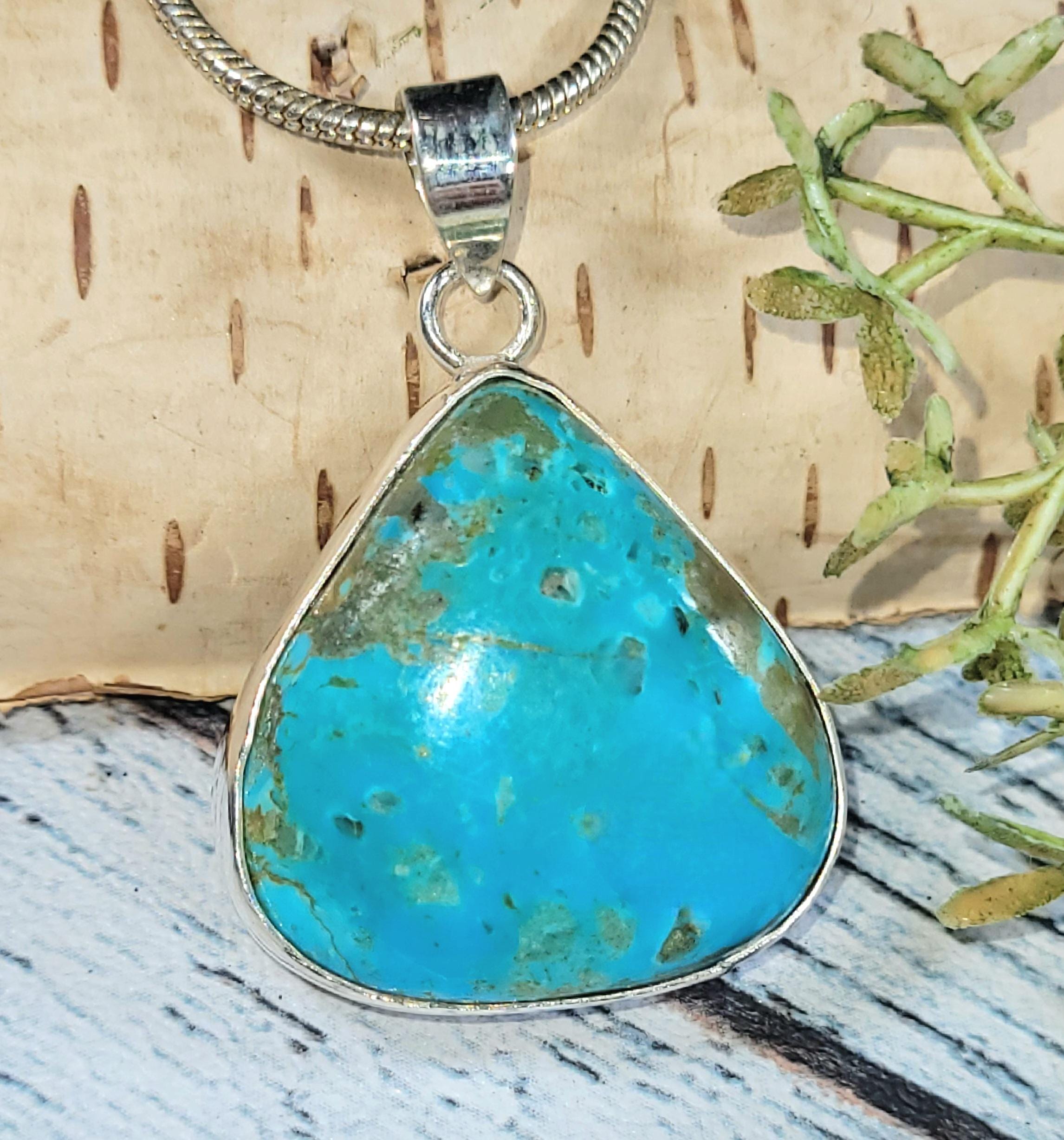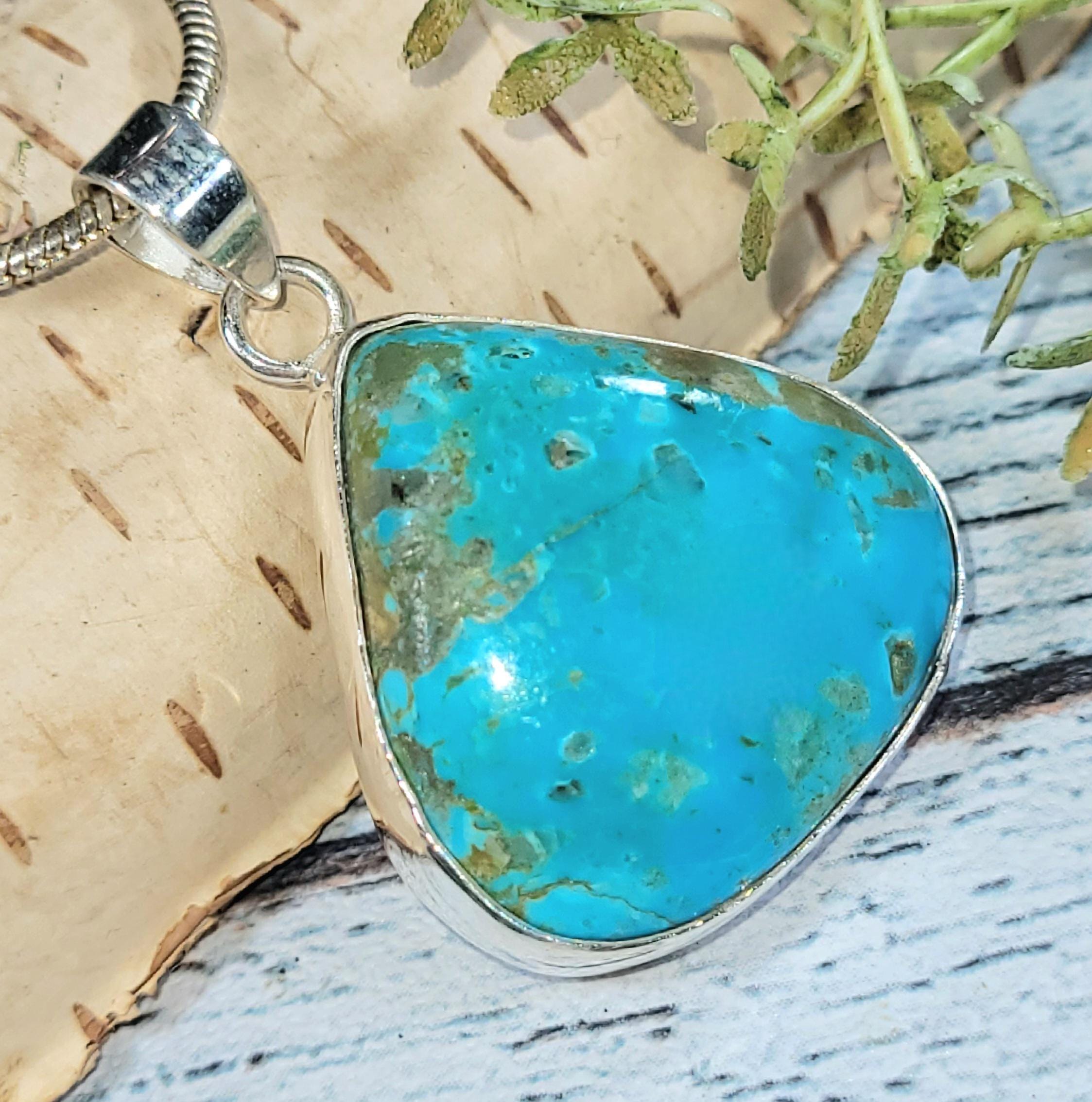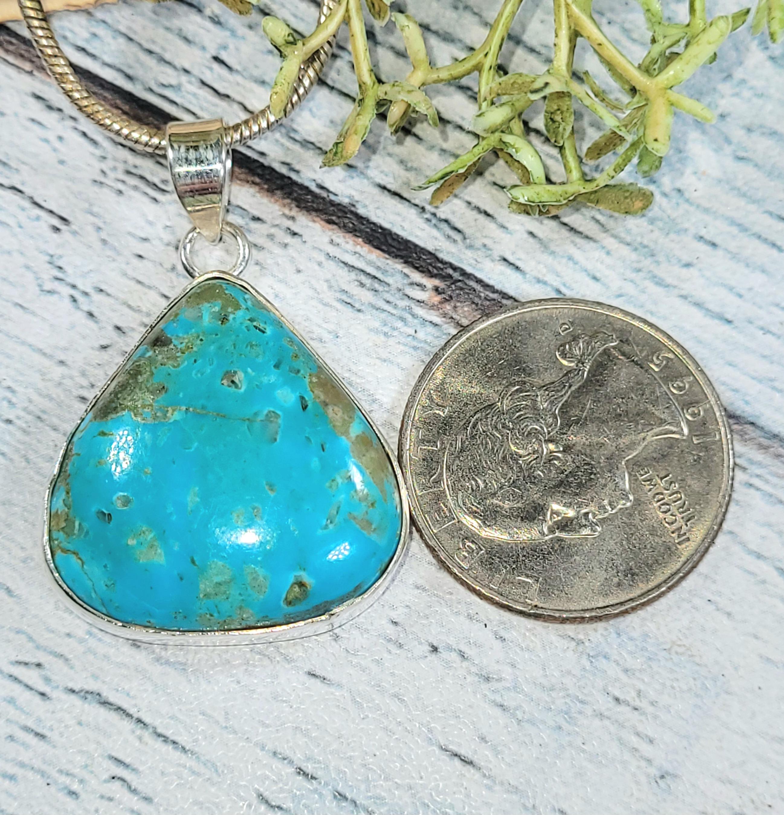 Natural AAA Grade Arizona Turquoise Handmade .925 Sterling Silver Pendant measures 1 5/8" x 1" and weighs 9.3 grams JS06. This is a handpicked natural stone, the exact one shown in picture. The sterling silver is .925 and stamped. Each piece is hand made by artisans in my shop. The quality of the stones and the silver workmanship is impressive. Please look at other items in my store. I sell ready-made jewelry with hand crafted silver work, pendants with a sterling silver bails and beautiful unique stones for jewelry wire wrapping and weaving. You will pay exact amount on shipping plus $1 for supplies and labor. All items are shipped within a couple of days after payment and are shipped USPS first class or international first class. Items are available for combined shipping, if invoice does not combine, please email me and I will combine for you. We also accept returns for refund or exchange for any reason. Thanks for viewing our store.