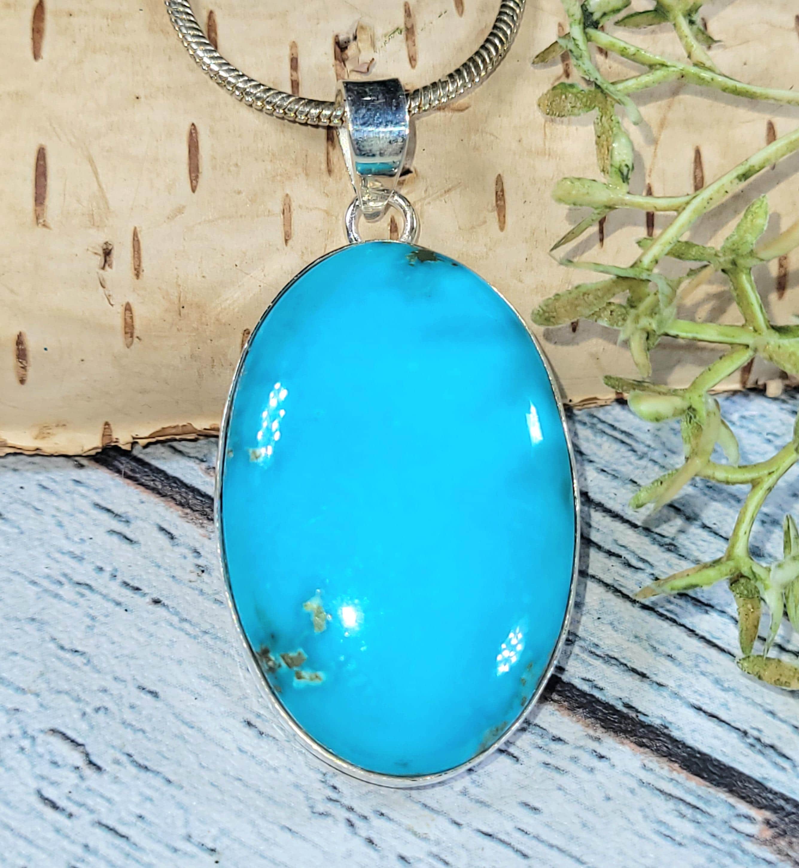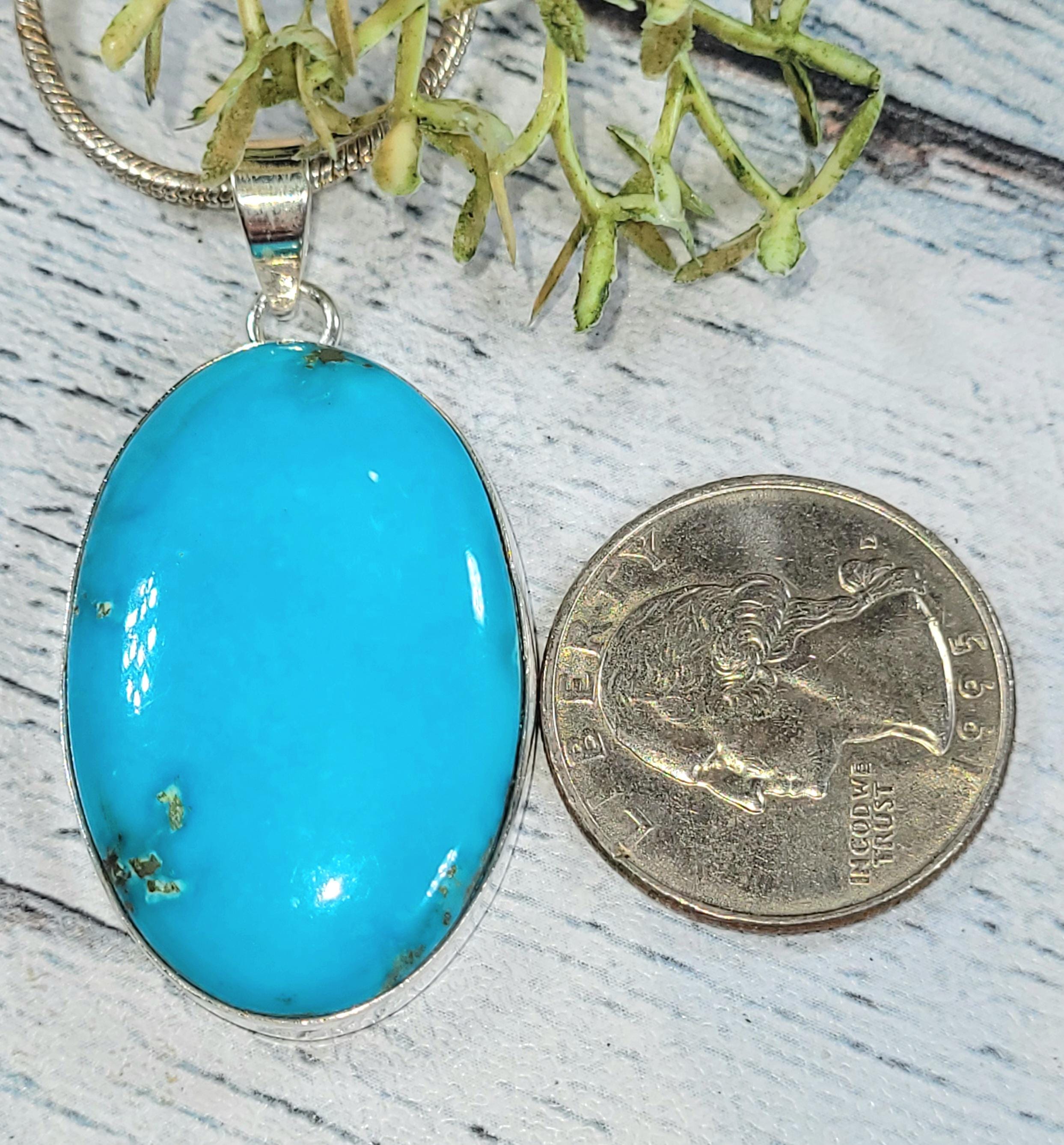 Natural High Grade Oval Arizona Turquoise Handmade .925 Sterling Silver Pendant measures 2" x 1" weighs 9.5 grams JS03. This is a handpicked natural stone, the exact one shown in picture. The sterling silver is .925 and stamped. Each piece is hand made by artisans in my shop. The quality of the stones and the silver workmanship is impressive. Please look at other items in my store. I sell ready-made jewelry with hand crafted silver work, pendants with a sterling silver bails and beautiful unique stones for jewelry wire wrapping and weaving. You will pay exact amount on shipping plus $1 for supplies and labor. All items are shipped within a couple of days after payment and are shipped USPS first class or international first class. Items are available for combined shipping, if invoice does not combine, please email me and I will combine for you. Average shipping will be $4 to 4.50 for USPS first class. International shipping is available for exact amount of shipping plus $1 for labor and supplies also. We also accept returns for refund or exchange. Thanks for viewing my store.