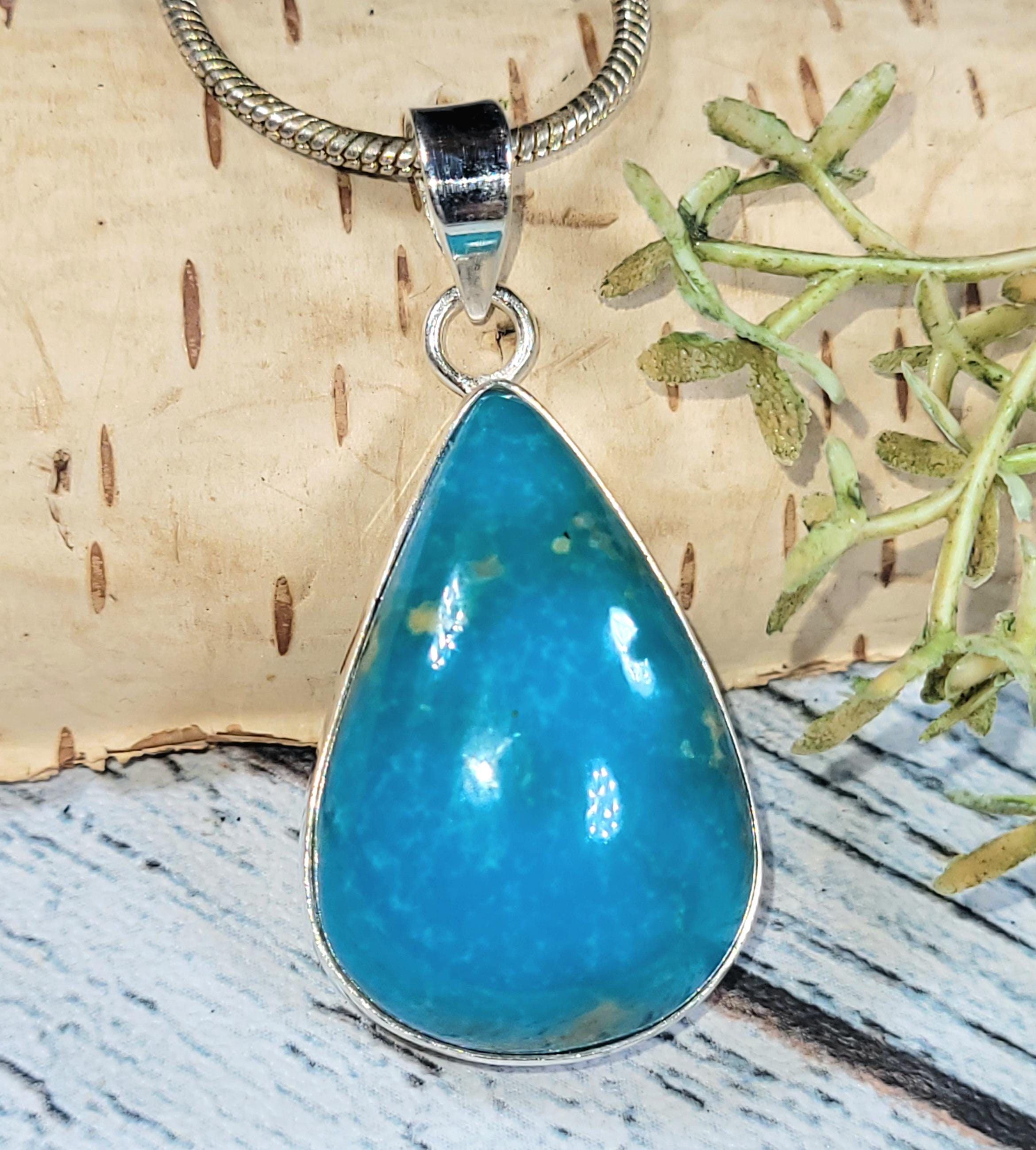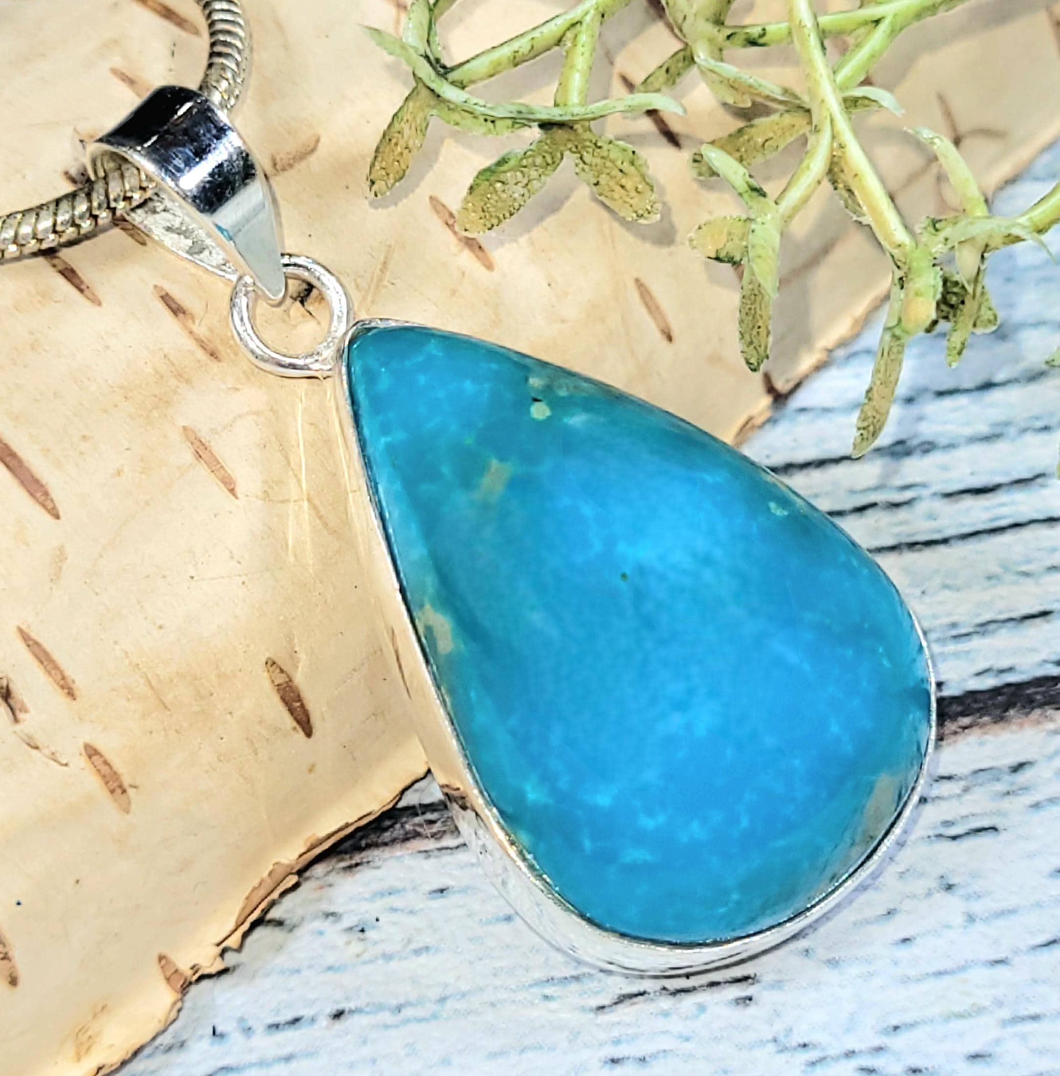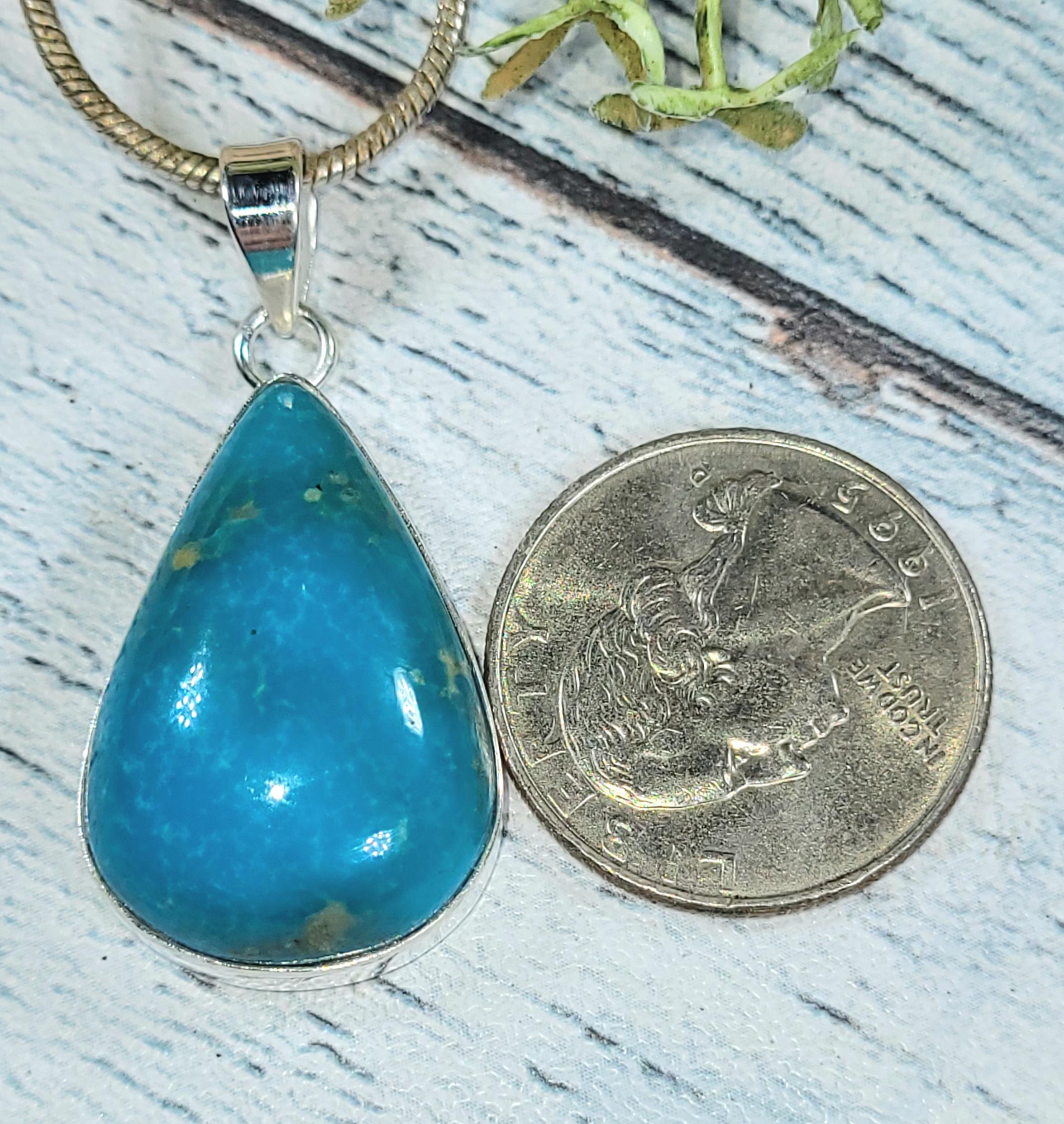 Natural AAA Grade Arizona Turquoise Handmade .925 Sterling Silver Pendant measures 1 3/4" x 13/16" and weighs 9.5 grams JS07. This is a handpicked natural stone, the exact one shown in picture. The sterling silver is .925 and stamped. Each piece is hand made by artisans in my shop. The quality of the stones and the silver workmanship is impressive. Please look at other items in my store. I sell ready-made jewelry with hand crafted silver work, pendants with a sterling silver bails and beautiful unique stones for jewelry wire wrapping and weaving. You will pay exact amount on shipping plus $1 for supplies and labor. All items are shipped within a couple of days after payment and are shipped USPS first class or international first class. Items are available for combined shipping, if invoice does not combine, please email me and I will combine for you. We also accept returns for refund or exchange for any reason. Thanks for viewing our store.