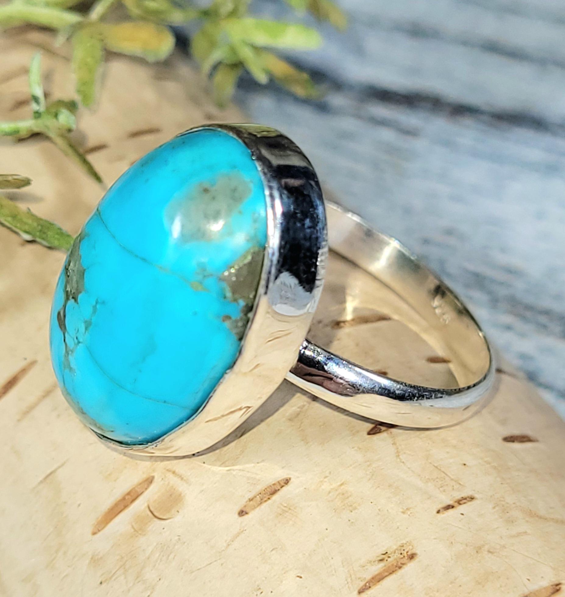 Natural Premium Grade Oval Arizona Turquoise Handmade .925 Sterling Silver Ring Size 9.75 6.8 Grams JS17. Face of Ring measures 7/8" X 5/8". Extremely well made ring with NO thin or flimsy setting like often seen with other seller! All of our items are .925 sterling silver and natural handpicked gemstones and handmade by members or our team. Free shipping if over $35. if under you will pay exact amount on shipping plus $1 for supplies and labor. All items are shipped within a couple of days after payment and are shipped USPS first class or international first class. Items are available for combined shipping, if invoice does not combine please email me and I will combine for you. Average shipping will be $4 to 4.50 for USPS first class. International shipping is available for exact amount of shipping plus $1 for labor and supplies also. We also accept returns for refund or exchange. Thanks for viewing my store