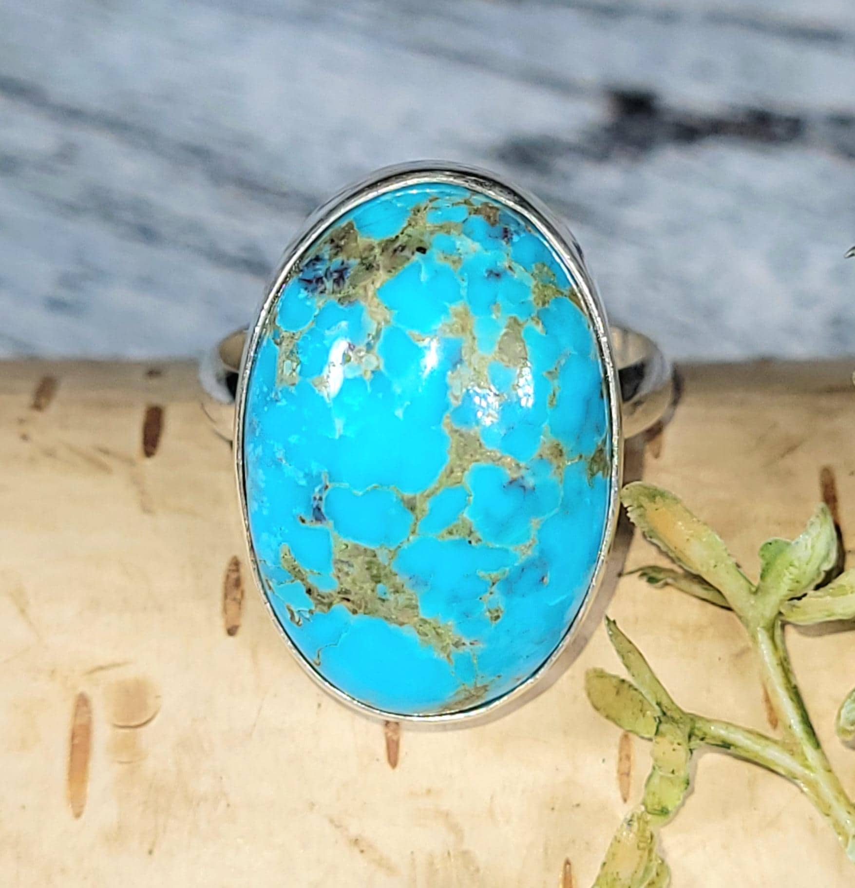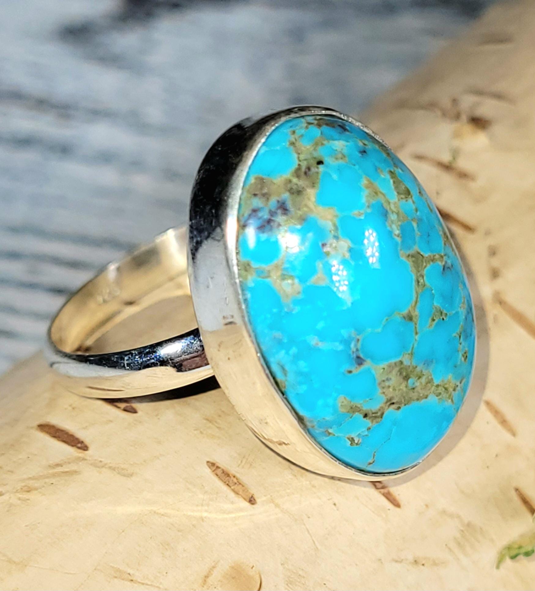Natural Premium Grade Oval Arizona Turquoise Handmade .925 Sterling Silver Ring Size 8.75 6.4 Grams JS22. Face of Ring measures 7/8" X 5/8". Extremely well made ring with NO thin or flimsy setting like often seen with other seller! All of our items are .925 sterling silver and natural handpicked gemstones and handmade by members or our team. Free shipping if over $35. if under you will pay exact amount on shipping plus $1 for supplies and labor. All items are shipped within a couple of days after payment and are shipped USPS first class or international first class. Items are available for combined shipping, if invoice does not combine please email me and I will combine for you. Average shipping will be $4 to 4.50 for USPS first class. International shipping is available for exact amount of shipping plus $1 for labor and supplies also. We also accept returns for refund or exchange. Thanks for viewing my store
