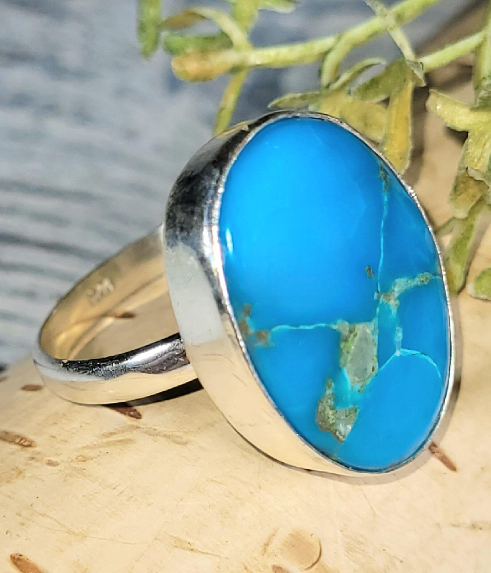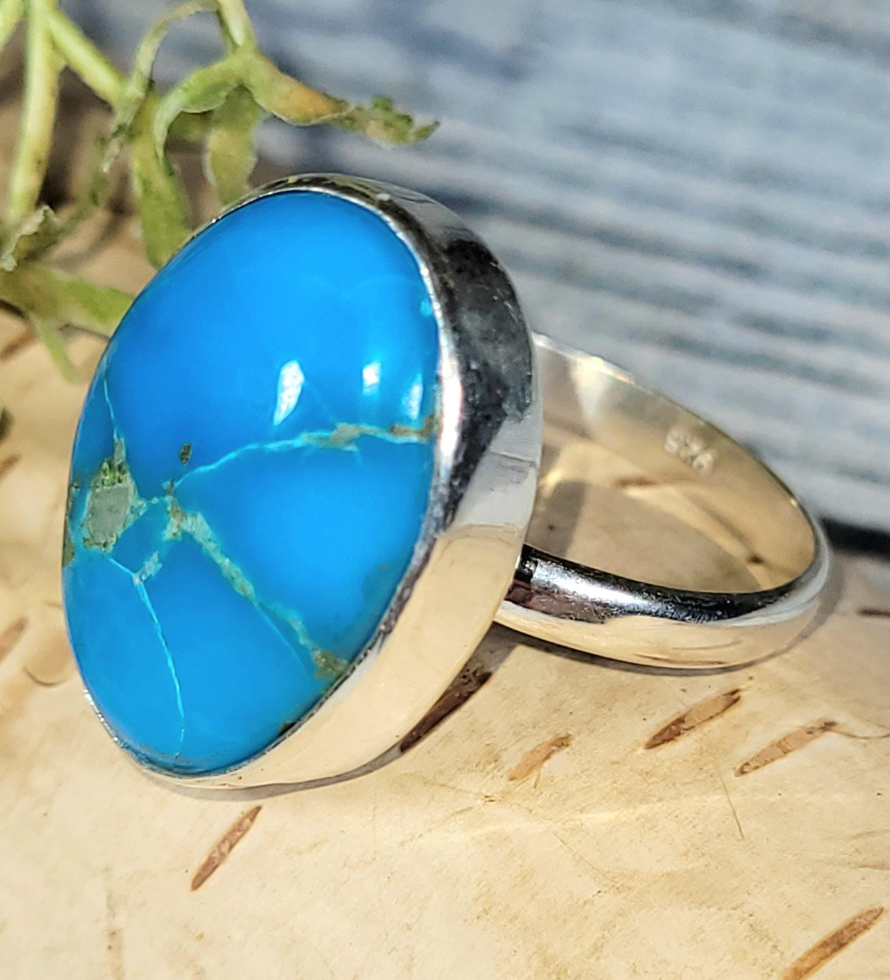 Natural High Grade Oval Arizona Turquoise Handmade .925 Sterling Silver Ring Size 8.75 6.2 Grams JS24. Face of Ring measures 7/8" X 5/8. Extremely well made ring with NO thin or flimsy setting like often seen with other seller! All of our items are .925 sterling silver and natural handpicked gemstones and handmade by members or our team. Free shipping if over $35. if under you will pay exact amount on shipping plus $1 for supplies and labor. All items are shipped within a couple of days after payment and are shipped USPS first class or international first class. Items are available for combined shipping, if invoice does not combine please email me and I will combine for you. Average shipping will be $4 to 4.50 for USPS first class. International shipping is available for exact amount of shipping plus $1 for labor and supplies also. We also accept returns for refund or exchange. Thanks for viewing my store