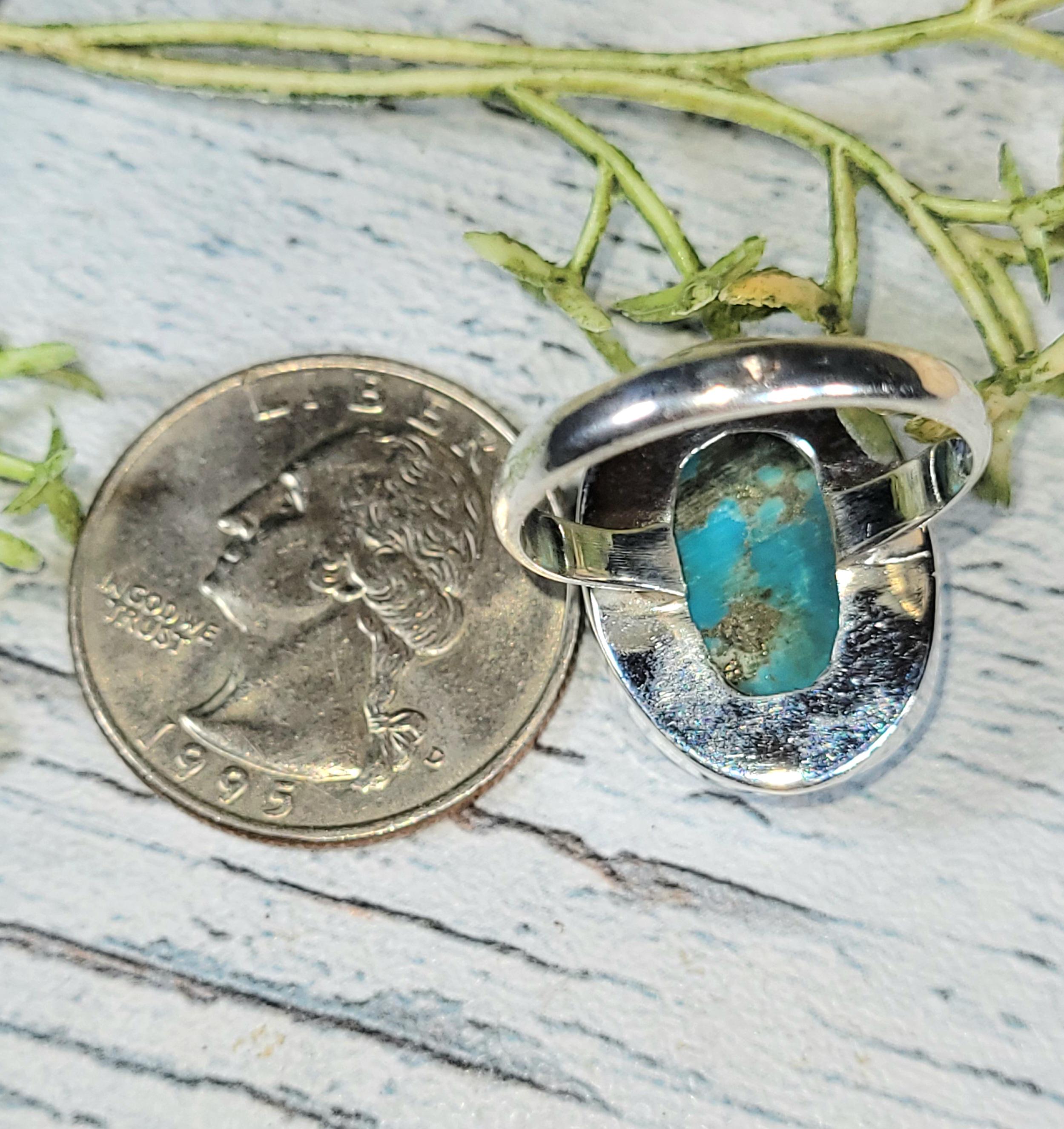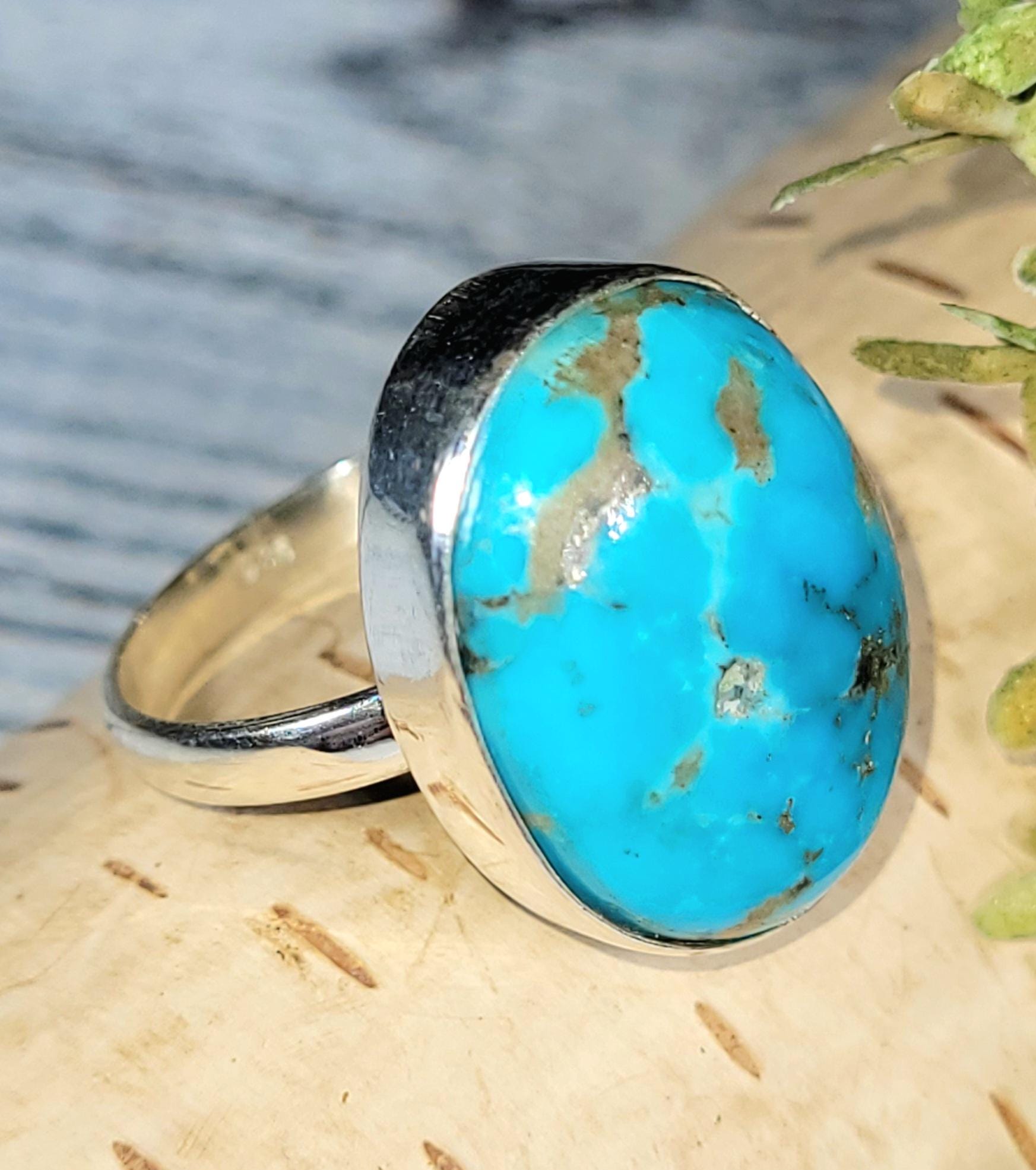 Natural Premium Grade Oval Arizona Turquoise Handmade .925 Sterling Silver Ring Size 8.75 6.3 Grams JS27. Face of Ring measures 7/8" X 5/8". Extremely well made ring with NO thin or flimsy setting like often seen with other seller! All of our items are .925 sterling silver and natural handpicked gemstones and handmade by members or our team. Free shipping if over $35. if under you will pay exact amount on shipping plus $1 for supplies and labor. All items are shipped within a couple of days after payment and are shipped USPS first class or international first class. Items are available for combined shipping, if invoice does not combine please email me and I will combine for you. Average shipping will be $4 to 4.50 for USPS first class. International shipping is available for exact amount of shipping plus $1 for labor and supplies also. We also accept returns for refund or exchange. Thanks for viewing my store