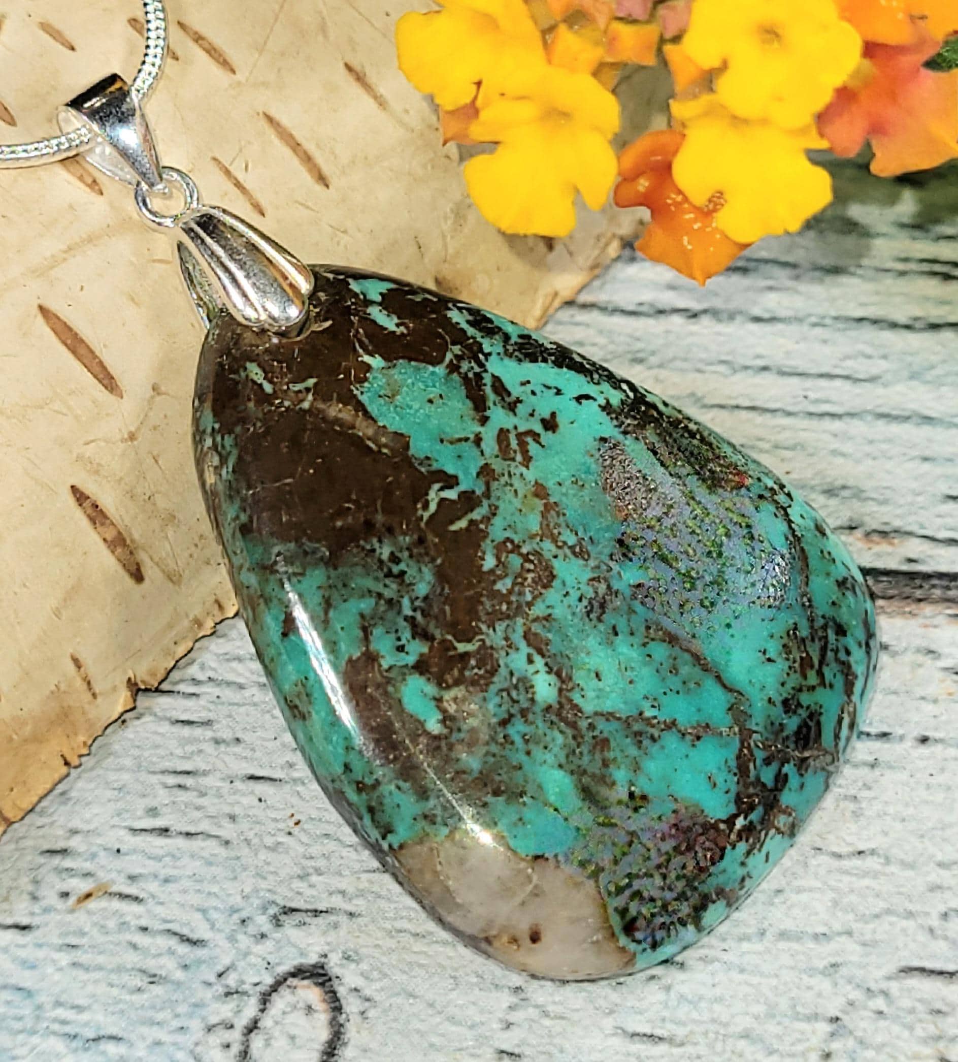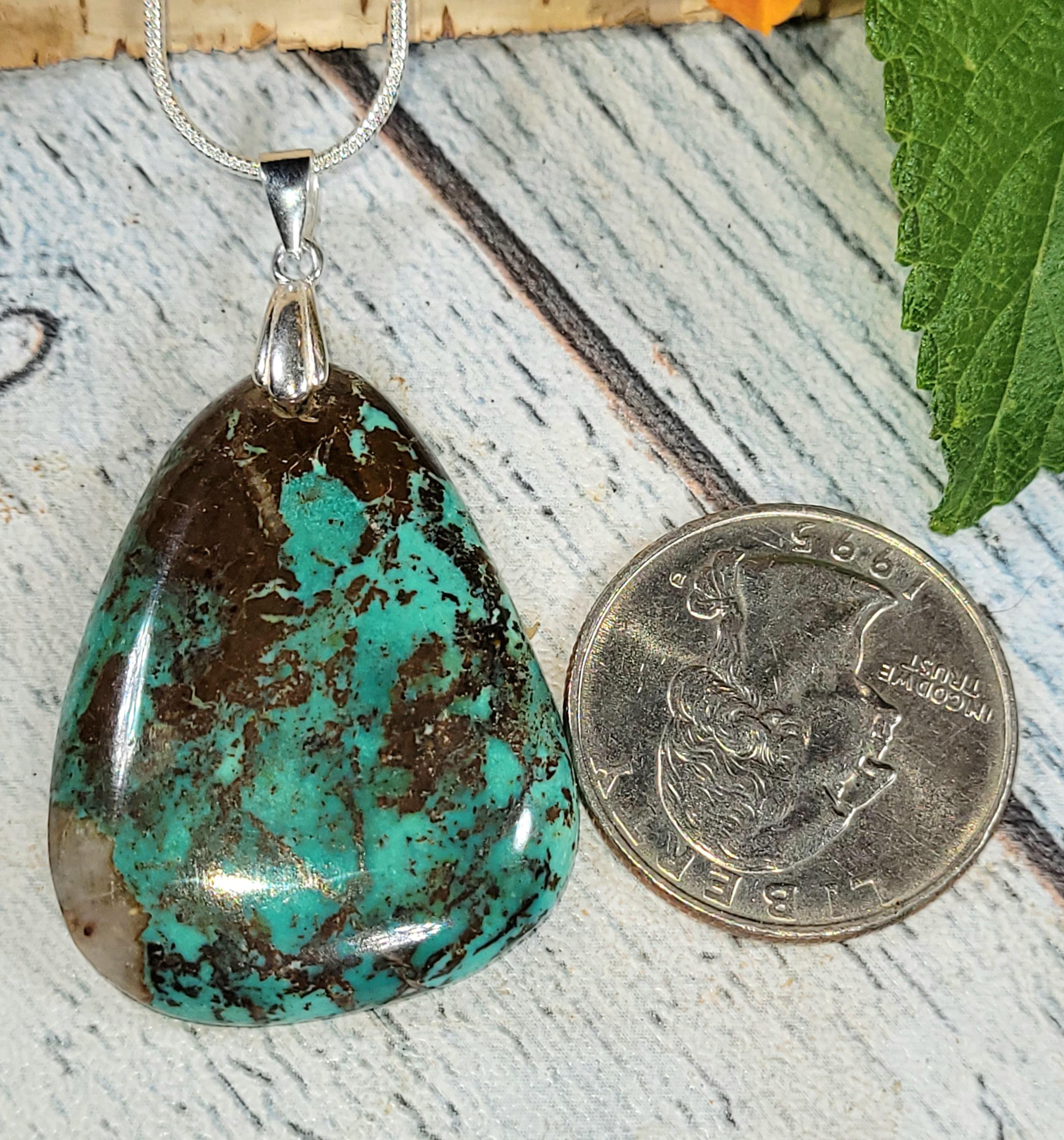 Natural High Grade Spiderweb Turquoise Pear Handmade Cabochon .925 Sterling Silver Pendant 1 7/8" x 1 1/8" approximately 40ct JH22. Solid Silver Rhodium Plated Bail will accommodate up to a 3mm chain and resist tarnishing! -This is a handpicked natural stone, the exact one shown in picture. The sterling silver is .925 and stamped. Each piece is hand made by artisans in my shop. The quality of the stones and the silver workmanship is impressive. Please look at other items in my store. I sell ready made jewelry with hand crafted silver work, pendants with a sterling silver bails and beautiful unique stones for jewelry wire wrapping and weaving. You will pay exact amount on shipping plus $1 for supplies and labor. All items are shipped within a couple of days after payment and are shipped USPS first class or international first class. Items are available for combined shipping, if invoice does not combine please email me and I will combine for you. Average shipping will be $4 to 4.50 for USPS first class. International shipping is available for exact amount of shipping plus $1 for labor and supplies also. We also accept returns for refund or exchange. Thanks for viewing my store.