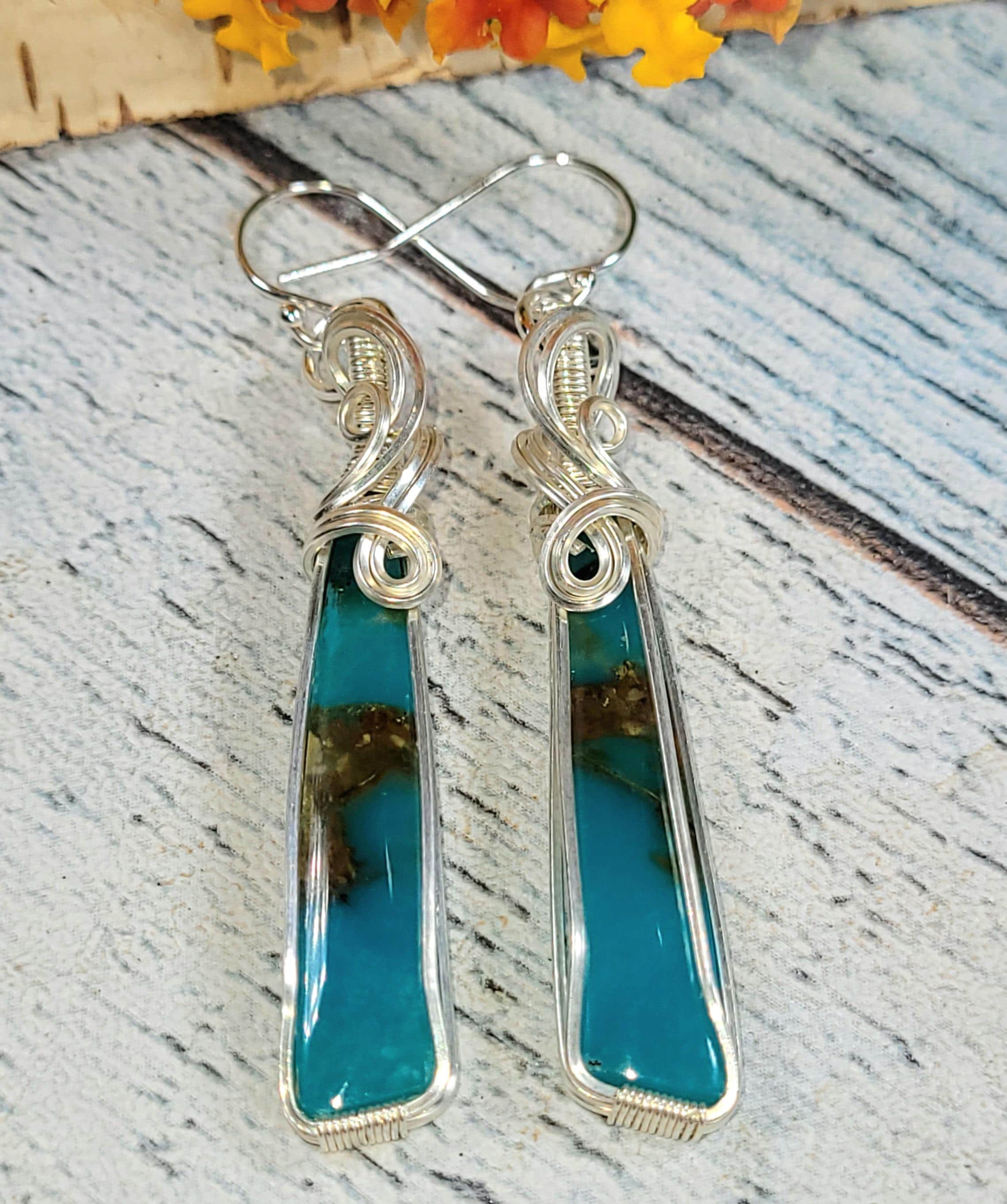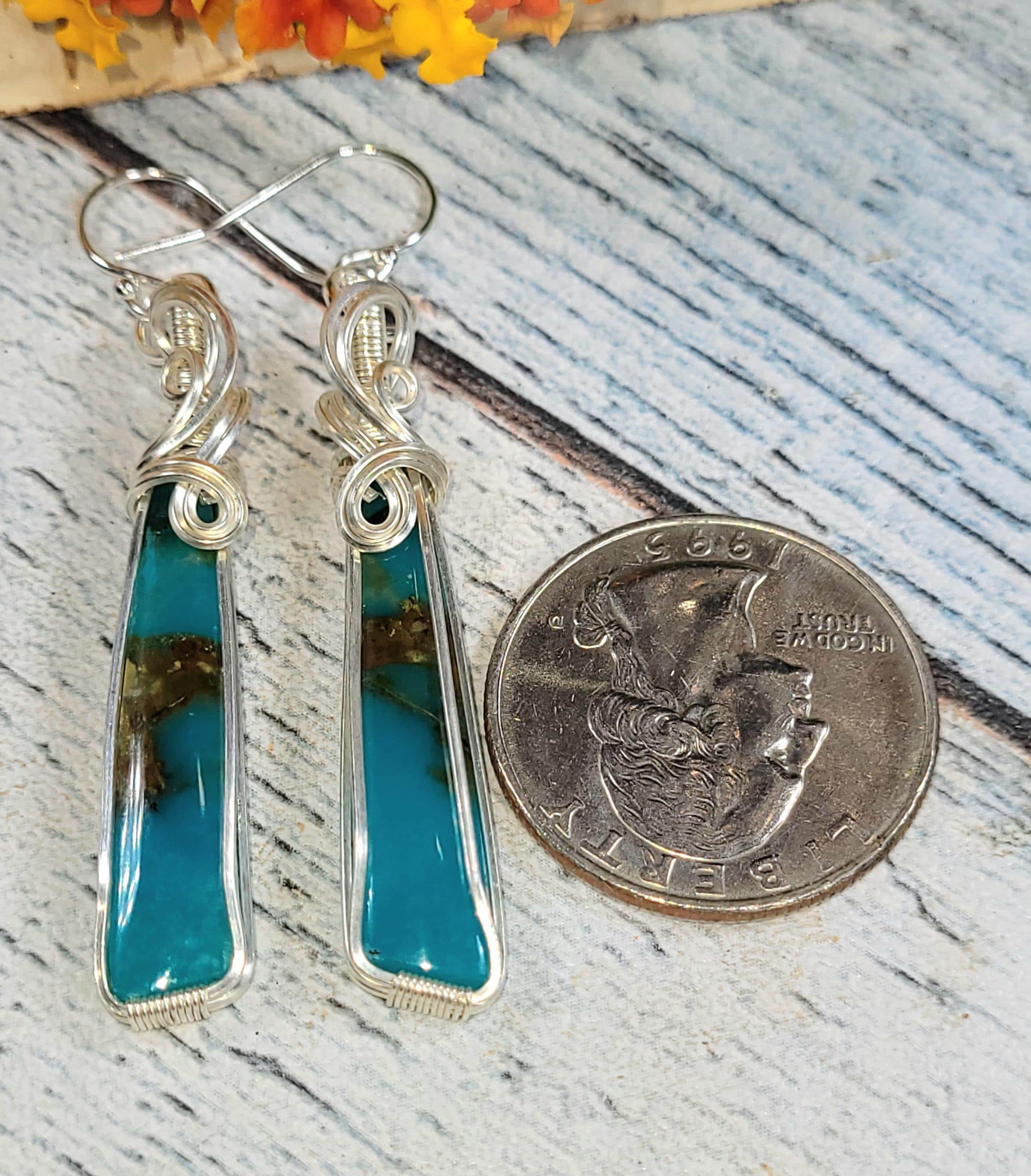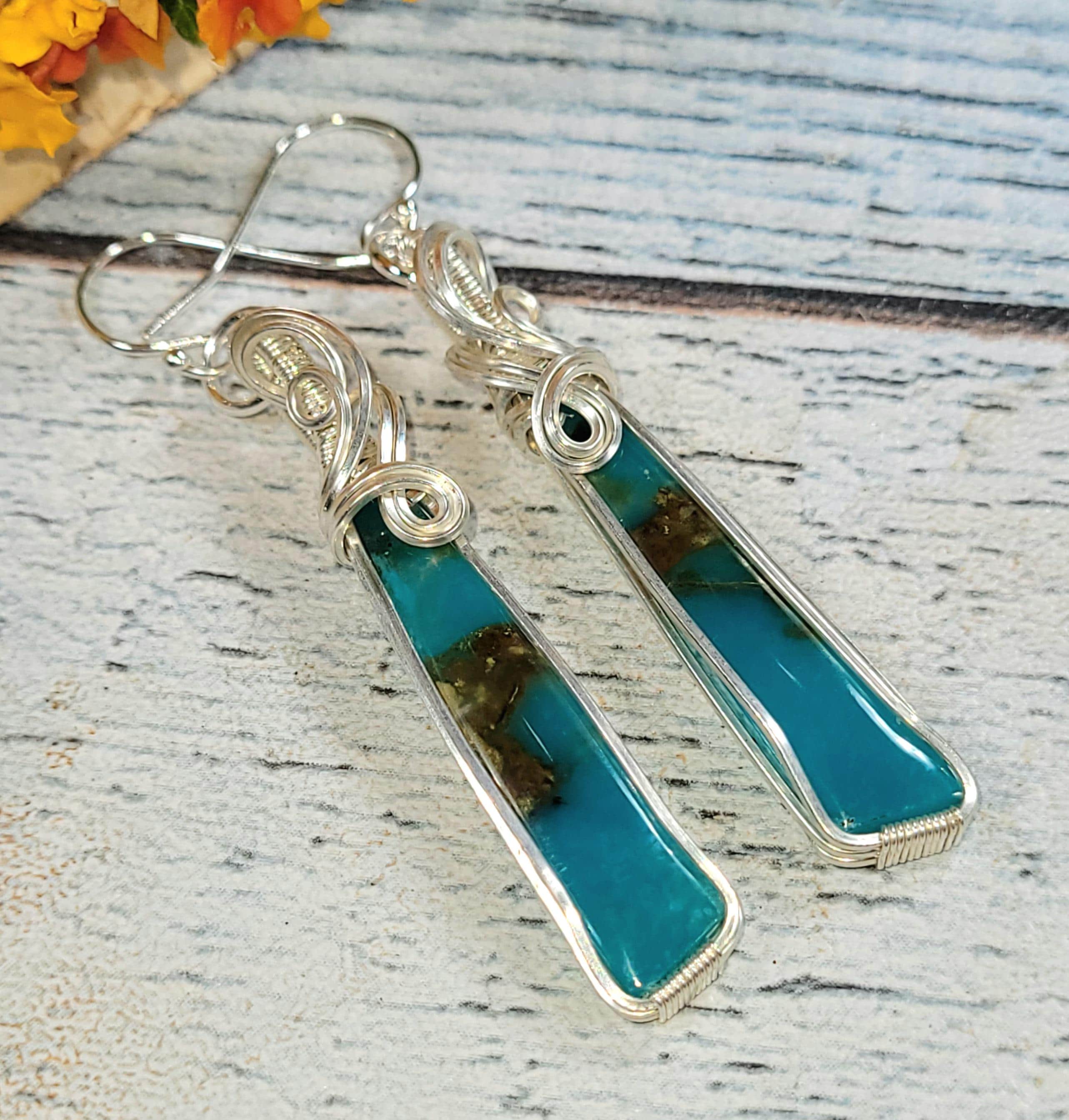 Natural Rare AAA Grade Blue Opalized Petrified Wood Handmade .925 Sterling Silver Wire Wrapped Earrings 6.6 Grams 2 1/4" x 5/16" JC40. Gift for Her Genuine Stones Gift for Her Genuine Stones! A rare fragment from a recently-discovered vein of opal on the slopes of an Indonesian volcano, this stone formed when opaline silica flows formed in place of an ancient petrified forest. It’s said to enhance imagination, creativity, and spontaneity. All of our items are one of a kind and hand crafted. These stones are beautiful and are thousands years old but only discovered a few years ago. We hand pick our stones from all over the world. Each item is handcrafted and one of a kind item. The silver is very study and not flimsy like some sellers. We guarantee all item to be sterling silver. We ship all of our items next day and offer expedited shipping. First class mail is free for purchases over $35. We accept returns within 30 days, only we will make exceptions during holidays. Please email us if you have any questions or problems, as we work hard to satisfy our customers so we can turn you into a repeat buyer.. Thanks so much for business and hope to see you on our site often. All items over $35 include free shipping. .Free shipping on all orders over $35.