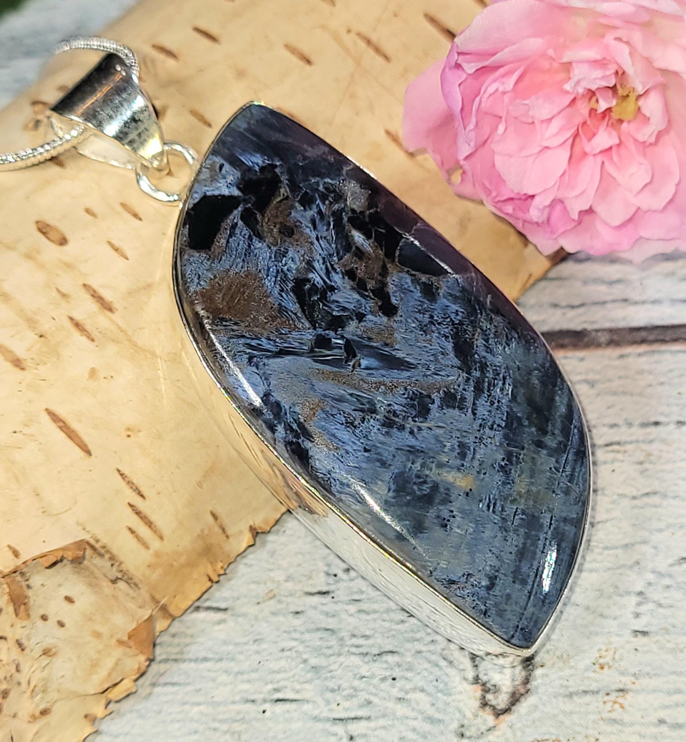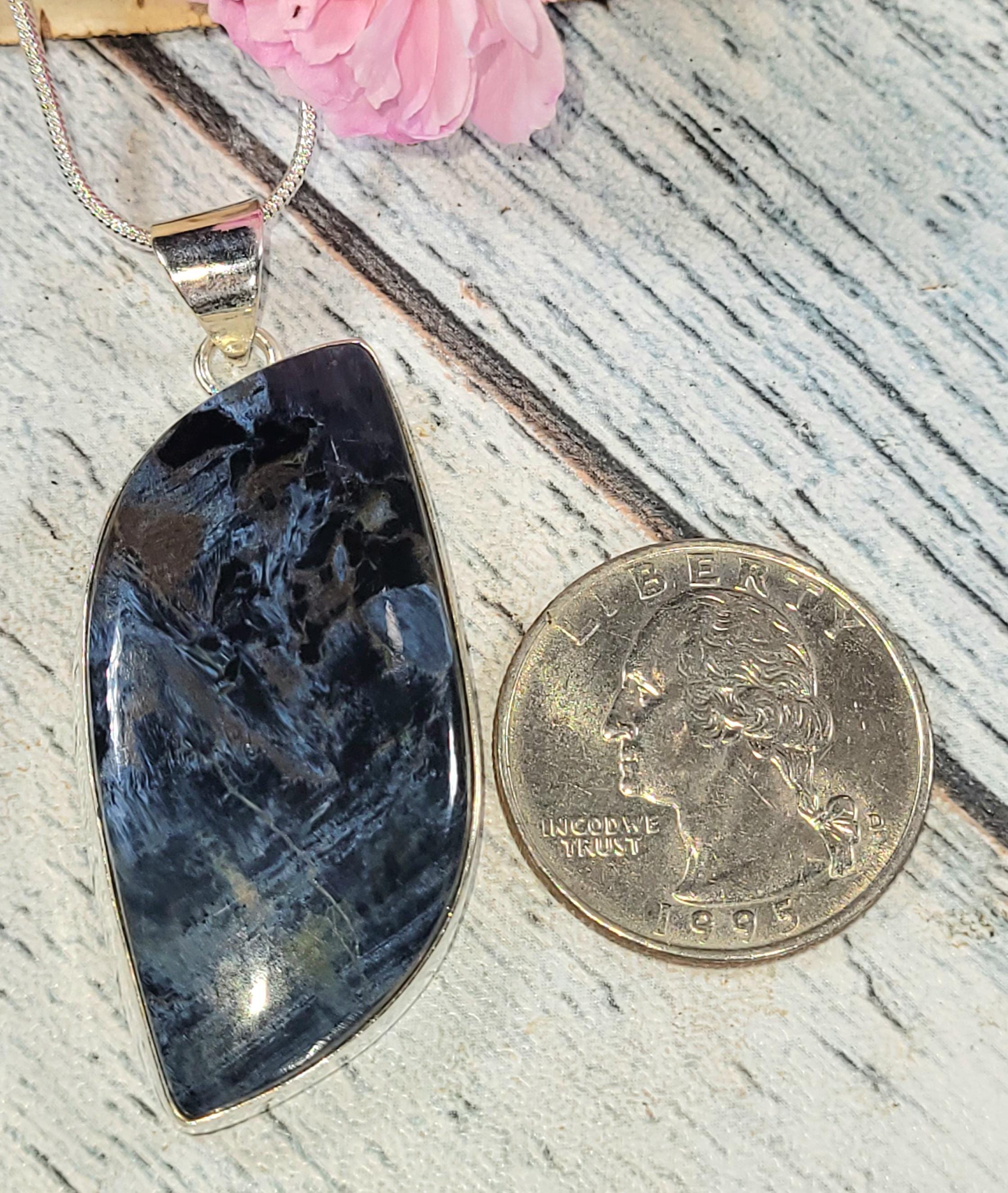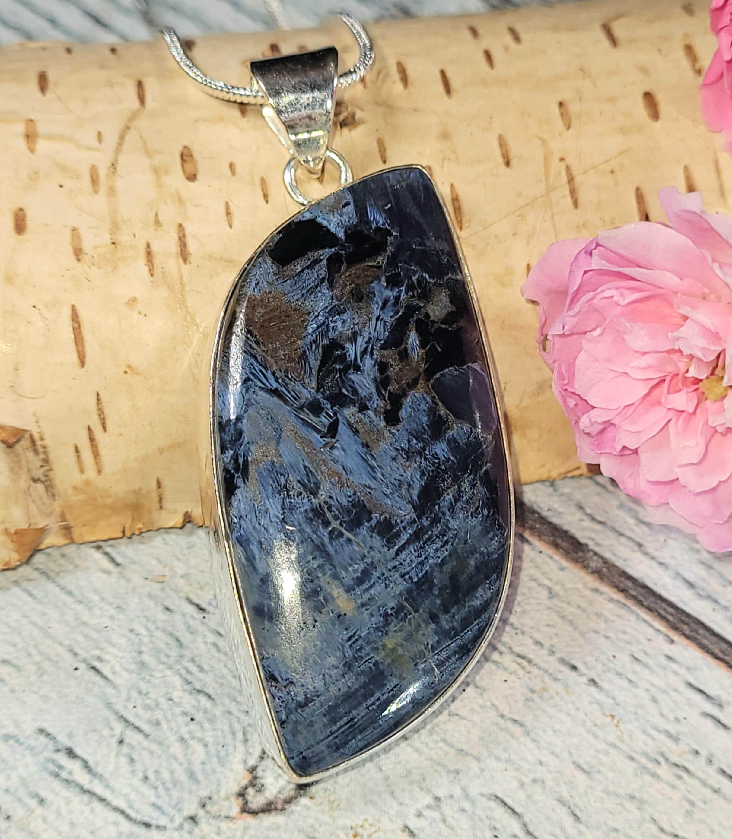 Natural Premium Grade Pietersite Freeform .925 Sterling Silver Pendant measures 2 1/8" x 7/8" and weighs 10.8 grams JV05. If you're not pleased with the item you receive please email us before leaving review. We stand behind our jewelry 100% and will refund you or send a replacement to make sure you're happy with your purchase!! This is a handpicked natural stone, the exact one shown in picture. The sterling silver is .925 and stamped. Each piece is handmade by artisans in my shop. The quality of the stones and the silver craftmanship is impressive. Please look at other items in my store. I sell ready made jewelry with handcrafted silver work, pendants with a sterling silver bails and beautiful unique stones for jewelry wire wrapping and weaving. You will pay exact amount on shipping plus $1 for supplies and labor. All items are shipped within a couple of days after payment and are shipped USPS first class or international first class. Items are available for combined shipping, if invoice does not combine please email me and I will combine for you. Average shipping will be $4 to 4.50 for USPS first class. International shipping is available for exact amount of shipping plus $1 for labor and supplies also. We also accept returns for refund or exchange. Thanks for viewing my store.