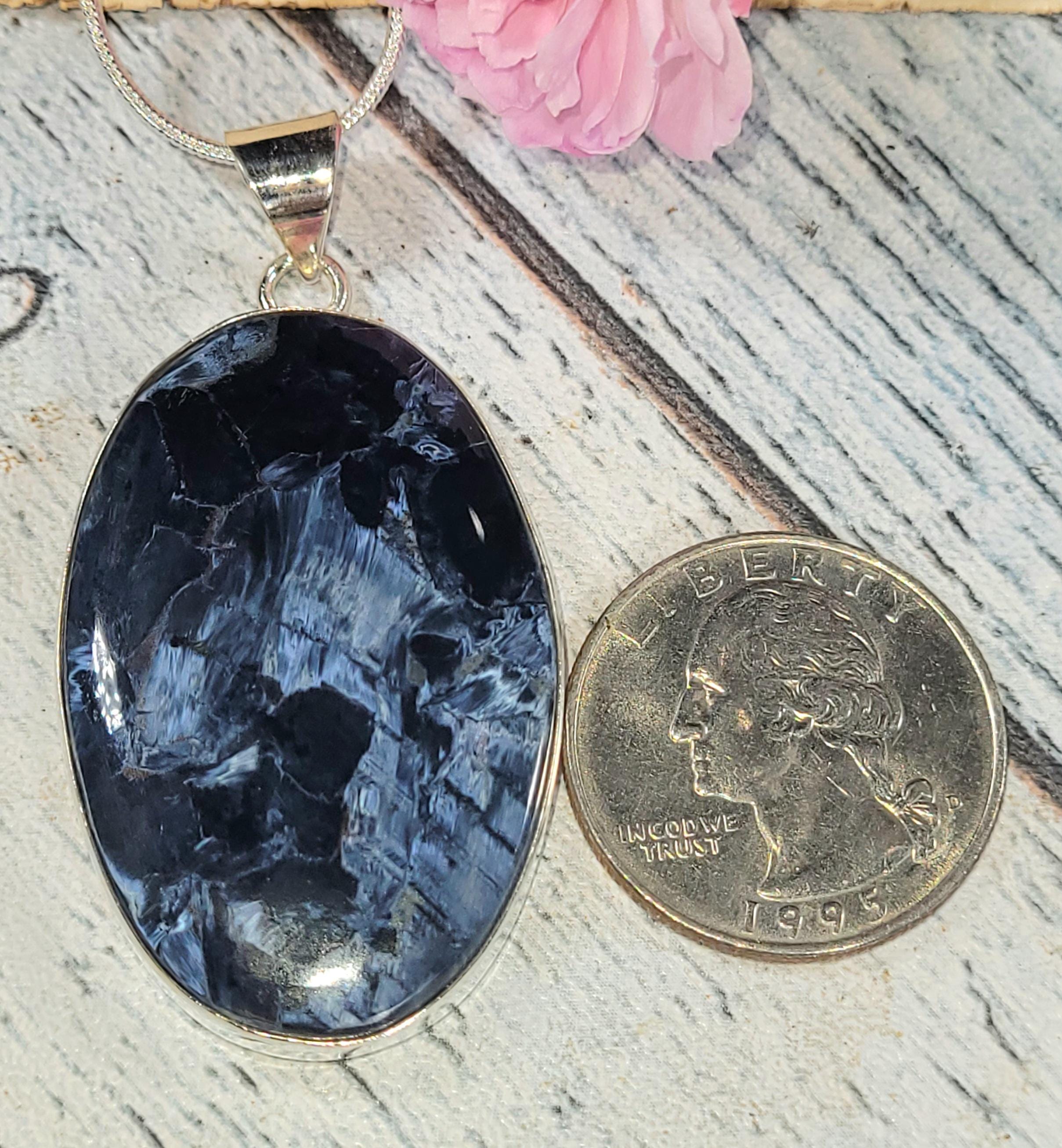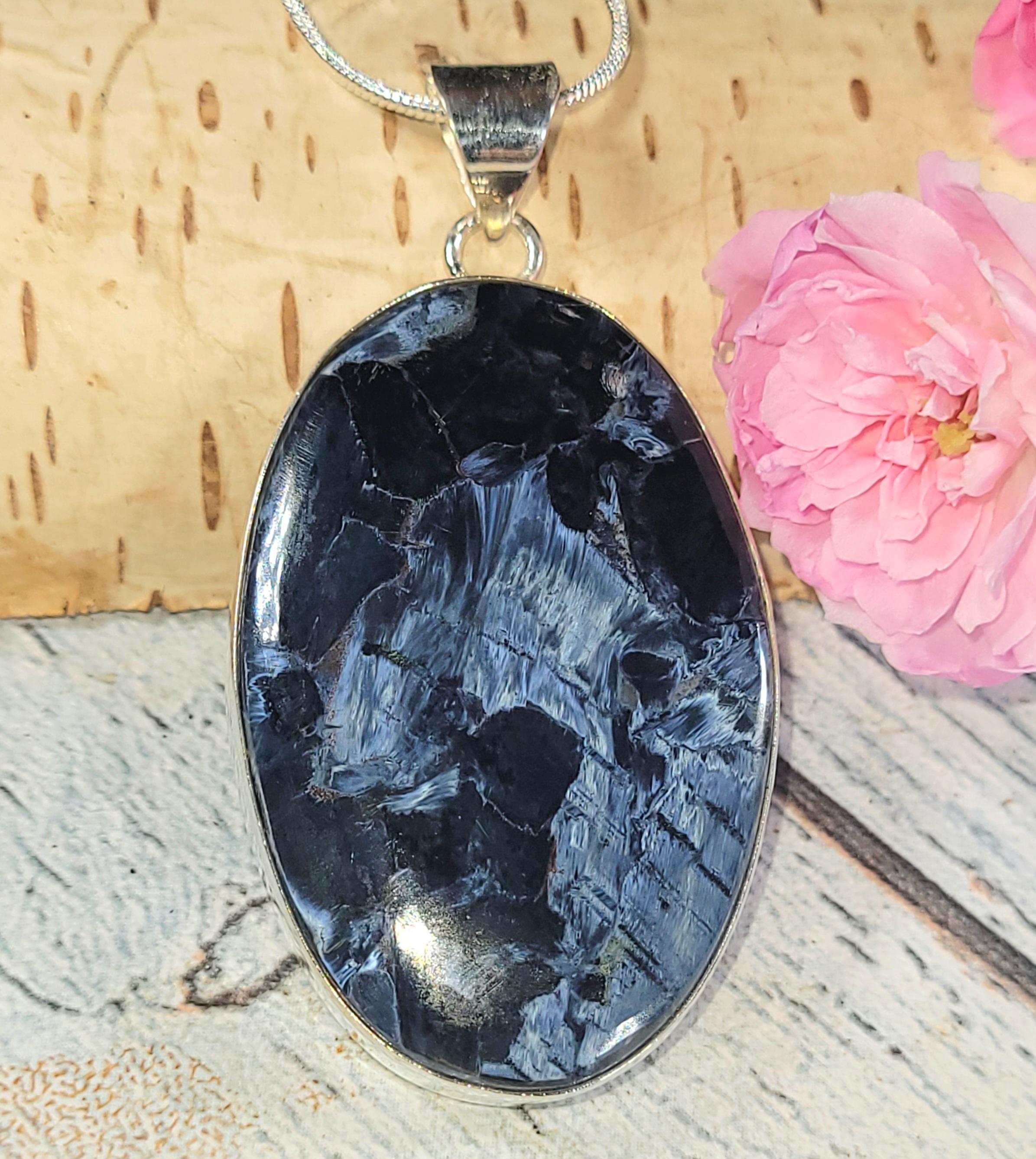 Natural Premium Grade Pietersite Oval .925 Sterling Silver Pendant measures 2" x 1 1/8" and weighs 12.1 grams JV04. If you're not pleased with the item you receive please email us before leaving review. We stand behind our jewelry 100% and will refund you or send a replacement to make sure you're happy with your purchase!! This is a handpicked natural stone, the exact one shown in picture. The sterling silver is .925 and stamped. Each piece is handmade by artisans in my shop. The quality of the stones and the silver craftmanship is impressive. Please look at other items in my store. I sell ready made jewelry with handcrafted silver work, pendants with a sterling silver bails and beautiful unique stones for jewelry wire wrapping and weaving. You will pay exact amount on shipping plus $1 for supplies and labor. All items are shipped within a couple of days after payment and are shipped USPS first class or international first class. Items are available for combined shipping, if invoice does not combine please email me and I will combine for you. Average shipping will be $4 to 4.50 for USPS first class. International shipping is available for exact amount of shipping plus $1 for labor and supplies also. We also accept returns for refund or exchange. Thanks for viewing my store.
