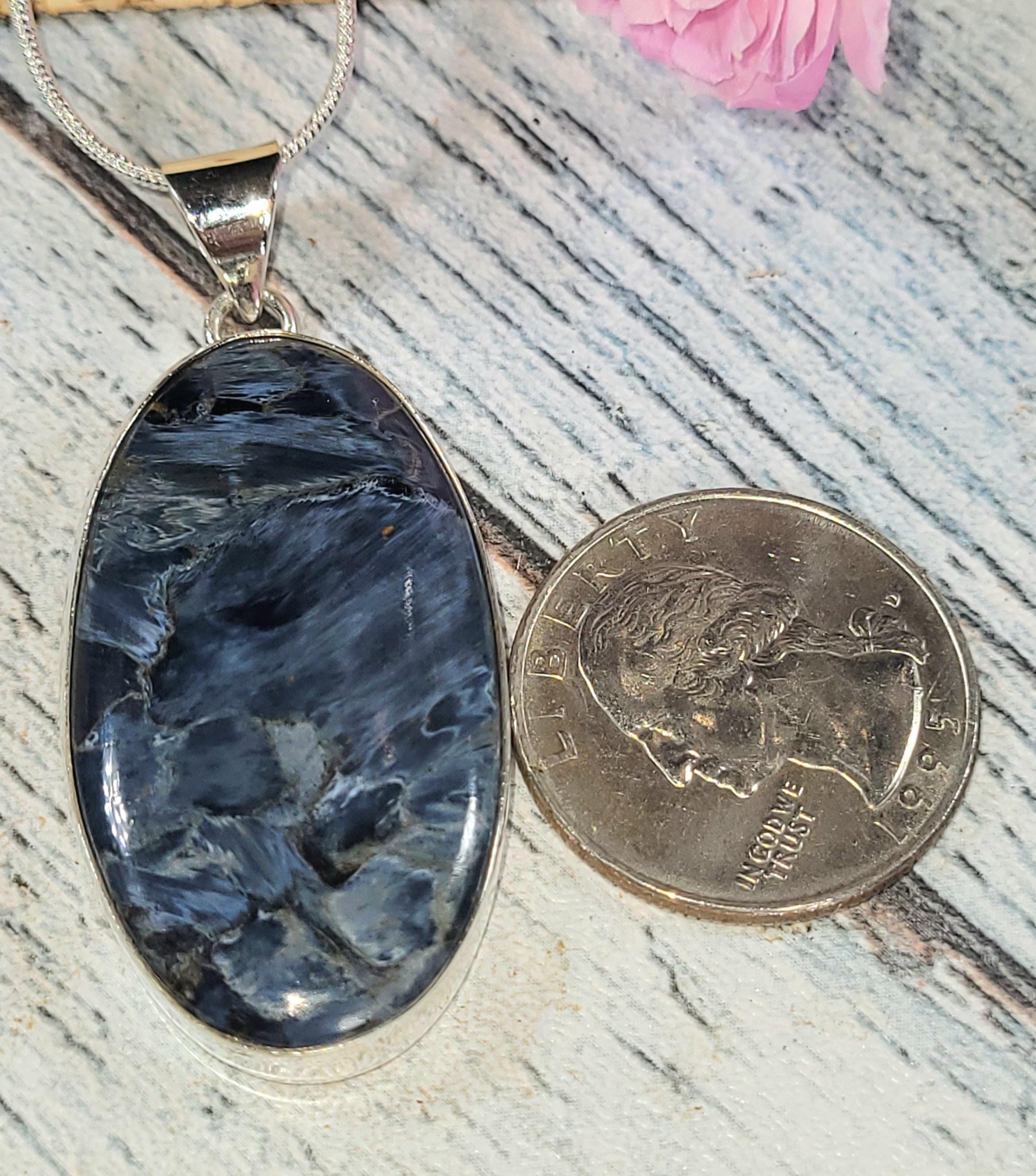 Natural Premium Grade Pietersite Oval .925 Sterling Silver Pendant measures 1 3/4" x 7/8" and weighs 10.1 grams JV07. If you're not pleased with the item you receive please email us before leaving review. We stand behind our jewelry 100% and will refund you or send a replacement to make sure you're happy with your purchase!! This is a handpicked natural stone, the exact one shown in picture. The sterling silver is .925 and stamped. Each piece is handmade by artisans in my shop. The quality of the stones and the silver craftmanship is impressive. Please look at other items in my store. I sell ready made jewelry with handcrafted silver work, pendants with a sterling silver bails and beautiful unique stones for jewelry wire wrapping and weaving. You will pay exact amount on shipping plus $1 for supplies and labor. All items are shipped within a couple of days after payment and are shipped USPS first class or international first class. Items are available for combined shipping, if invoice does not combine please email me and I will combine for you. Average shipping will be $4 to 4.50 for USPS first class. International shipping is available for exact amount of shipping plus $1 for labor and supplies also. We also accept returns for refund or exchange. Thanks for viewing my store.