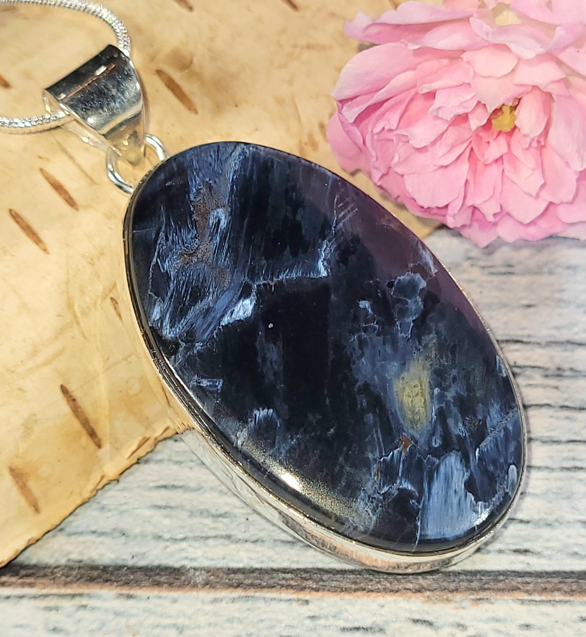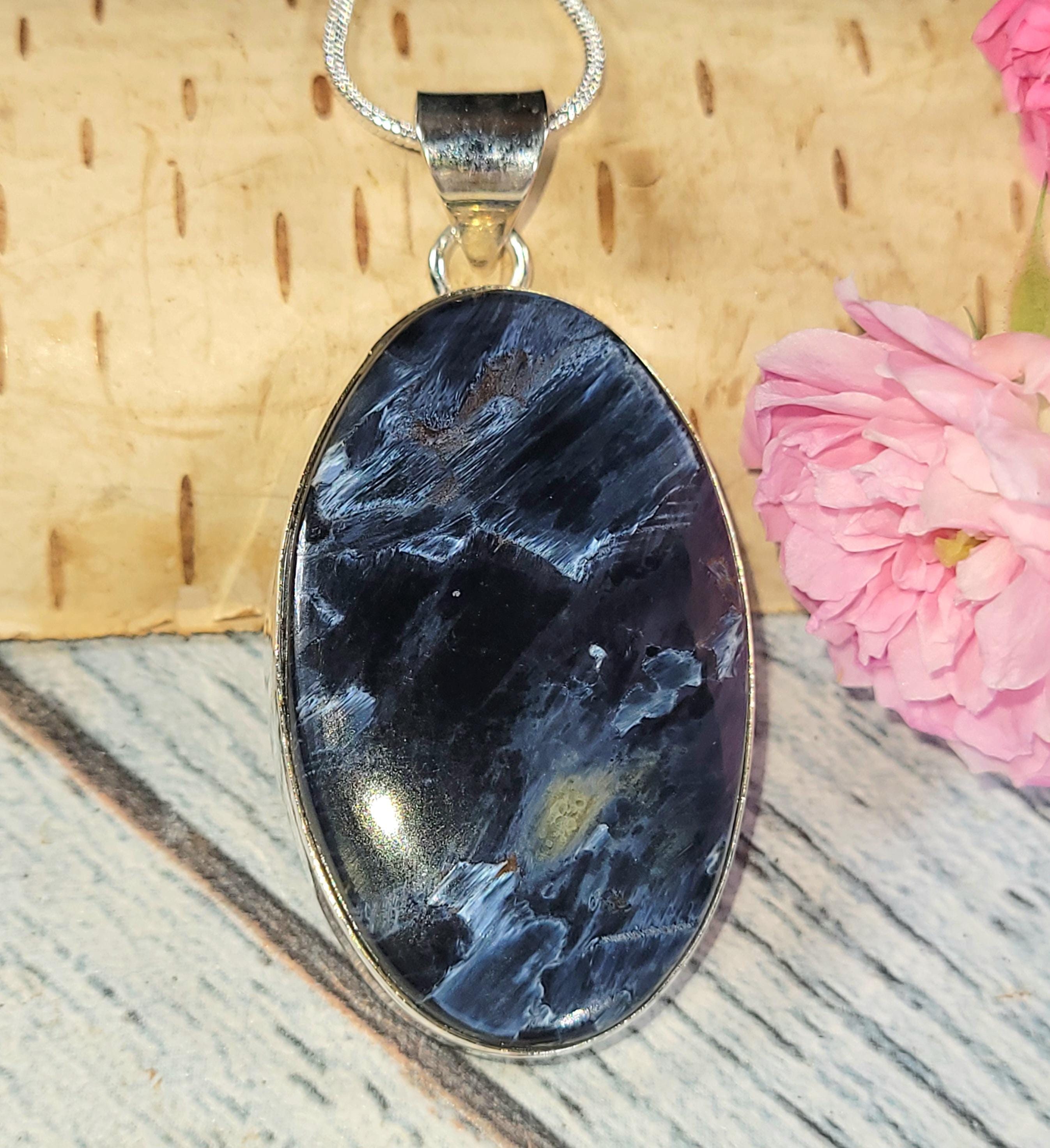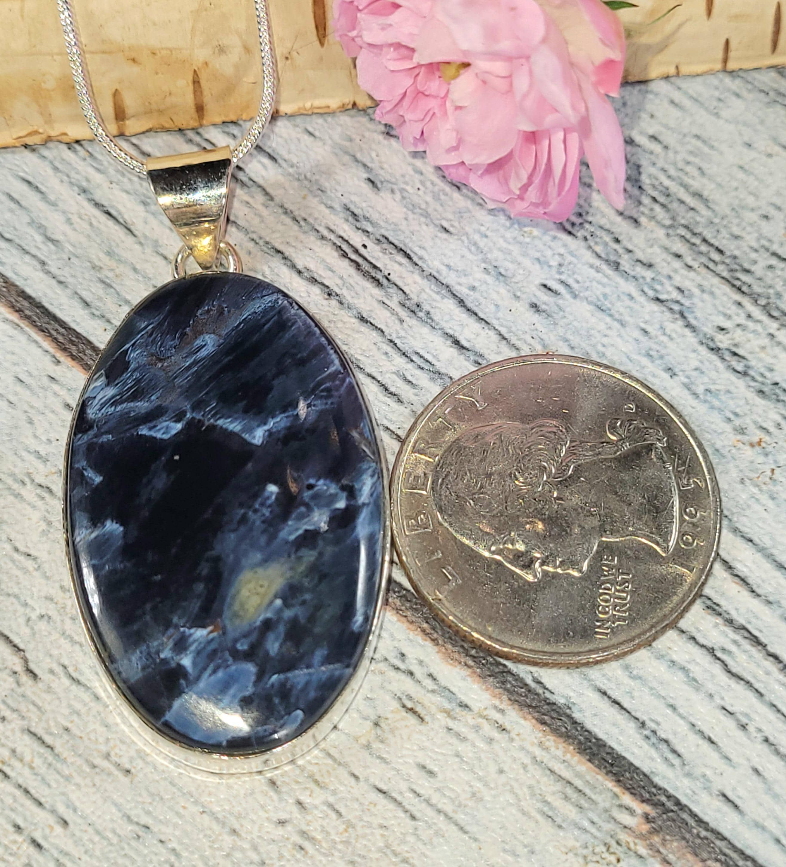 Natural AAA Grade Pietersite Oval .925 Sterling Silver Pendant measures 1 15/16" x 15/16" and weighs 10.4 grams JV09. If you're not pleased with the item you receive please email us before leaving review. We stand behind our jewelry 100% and will refund you or send a replacement to make sure you're happy with your purchase!! This is a handpicked natural stone, the exact one shown in picture. The sterling silver is .925 and stamped. Each piece is handmade by artisans in my shop. The quality of the stones and the silver craftmanship is impressive. Please look at other items in my store. I sell ready made jewelry with handcrafted silver work, pendants with a sterling silver bails and beautiful unique stones for jewelry wire wrapping and weaving. You will pay exact amount on shipping plus $1 for supplies and labor. All items are shipped within a couple of days after payment and are shipped USPS first class or international first class. Items are available for combined shipping, if invoice does not combine please email me and I will combine for you. Average shipping will be $4 to 4.50 for USPS first class. International shipping is available for exact amount of shipping plus $1 for labor and supplies also. We also accept returns for refund or exchange. Thanks for viewing my store.