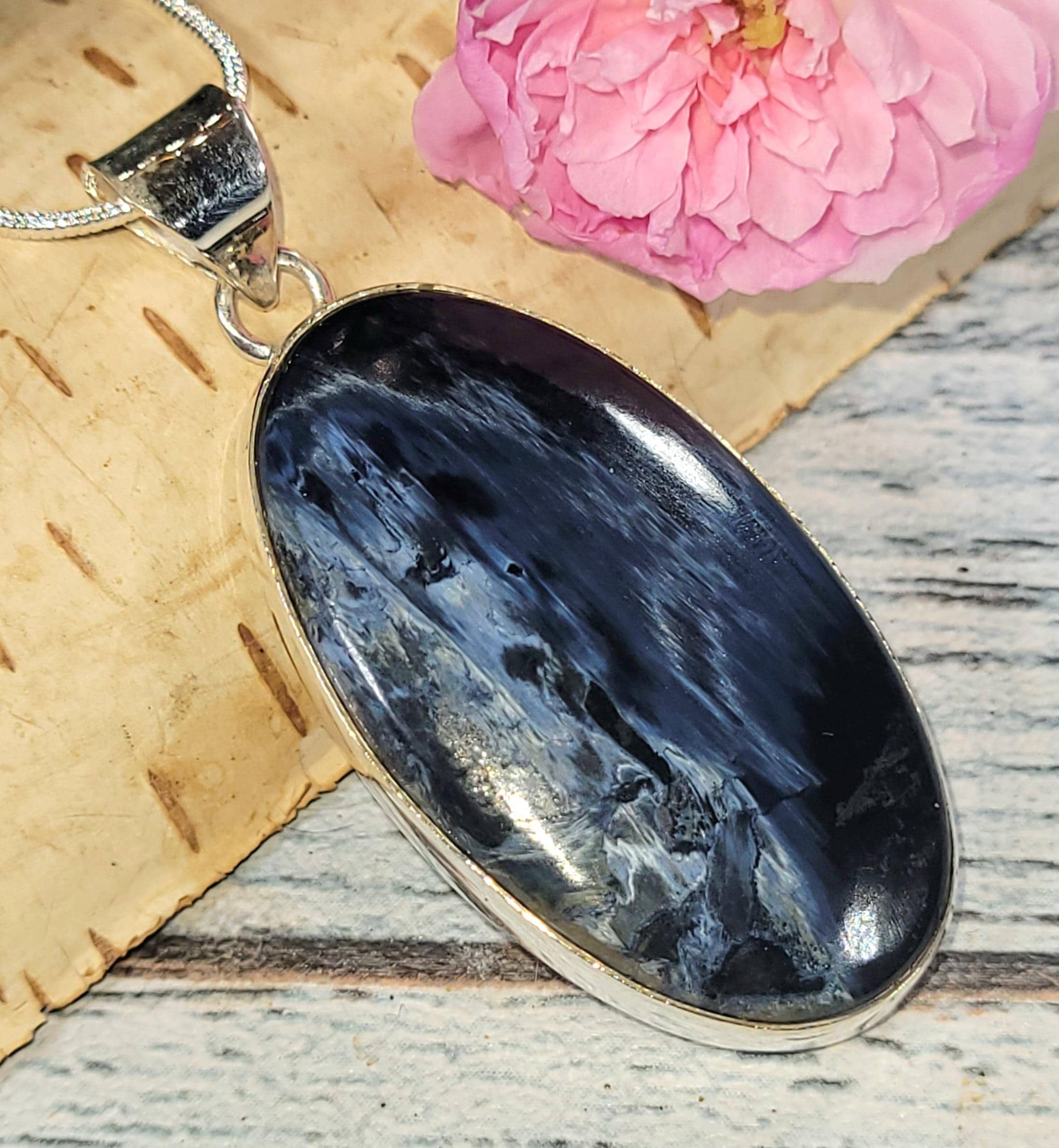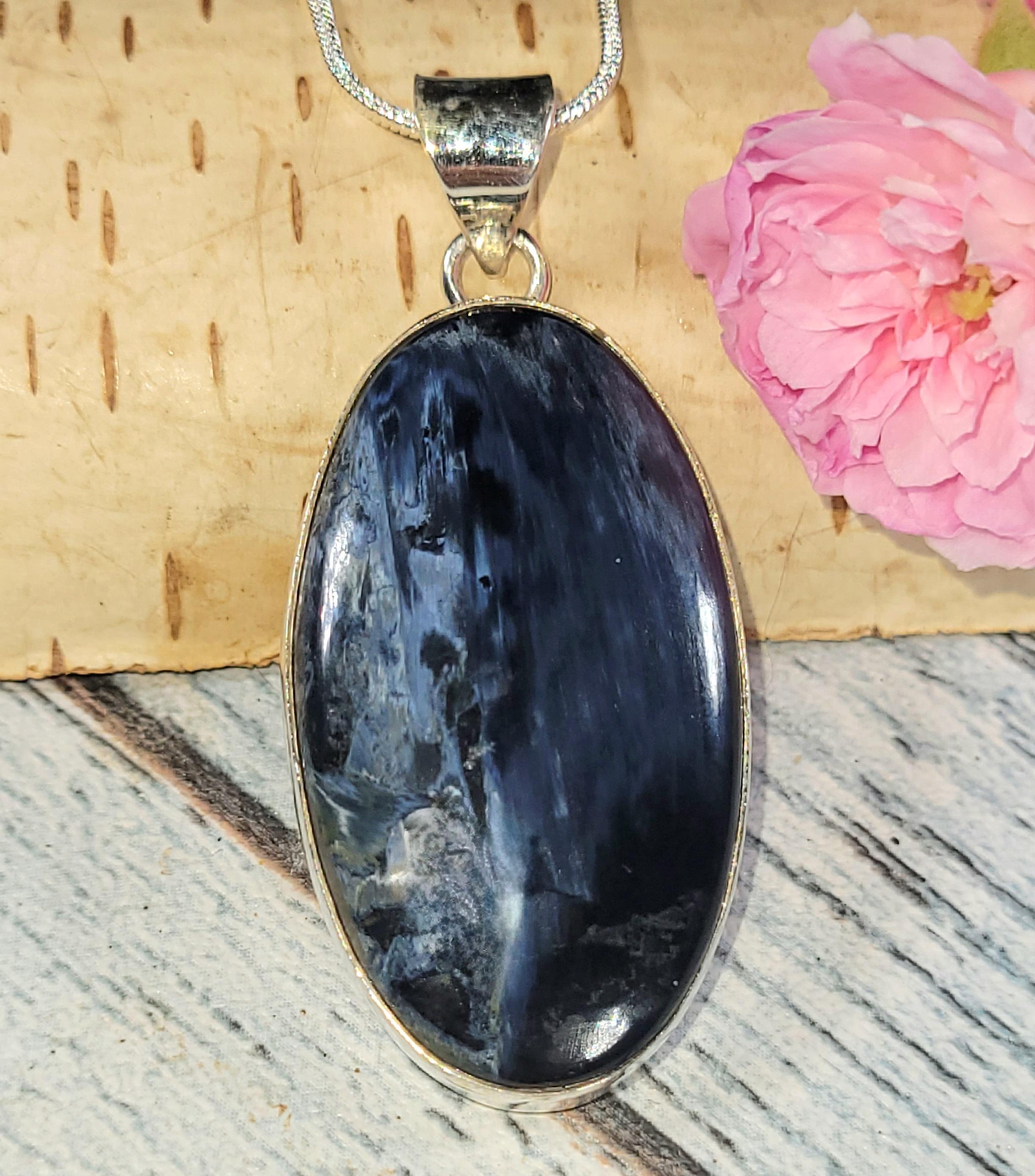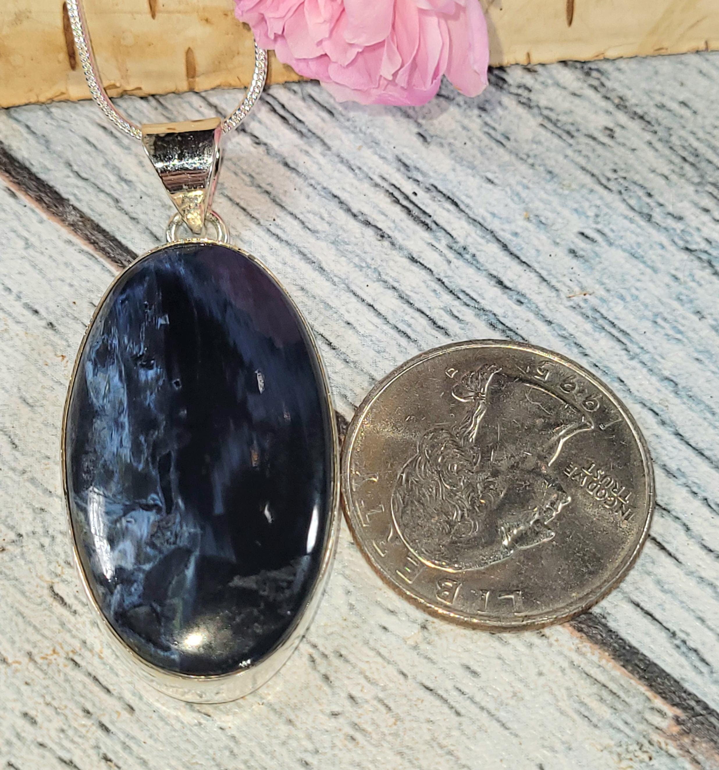 Natural AAA Grade Pietersite Oval .925 Sterling Silver Pendant measures 1 7/8" x 7/8" and weighs 10.4 grams JV12. If you're not pleased with the item you receive please email us before leaving review. We stand behind our jewelry 100% and will refund you or send a replacement to make sure you're happy with your purchase!! This is a handpicked natural stone, the exact one shown in picture. The sterling silver is .925 and stamped. Each piece is handmade by artisans in my shop. The quality of the stones and the silver craftmanship is impressive. Please look at other items in my store. I sell ready made jewelry with handcrafted silver work, pendants with a sterling silver bails and beautiful unique stones for jewelry wire wrapping and weaving. You will pay exact amount on shipping plus $1 for supplies and labor. All items are shipped within a couple of days after payment and are shipped USPS first class or international first class. Items are available for combined shipping, if invoice does not combine please email me and I will combine for you. Average shipping will be $4 to 4.50 for USPS first class. International shipping is available for exact amount of shipping plus $1 for labor and supplies also. We also accept returns for refund or exchange. Thanks for viewing my store.
