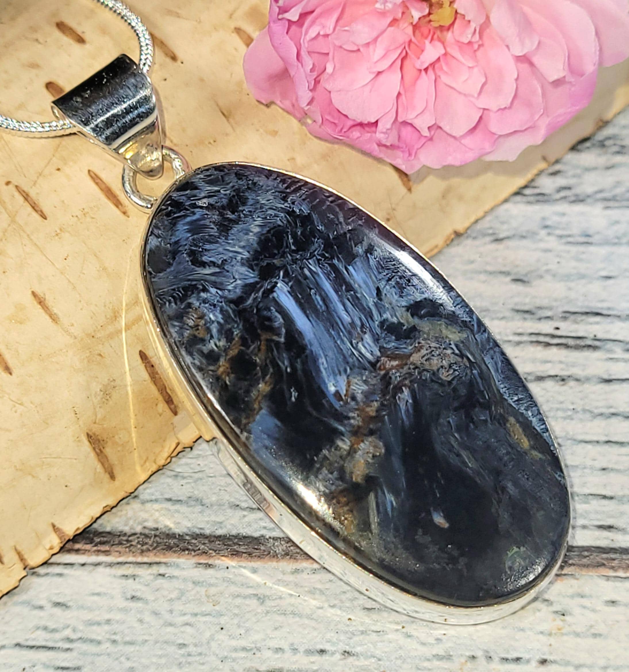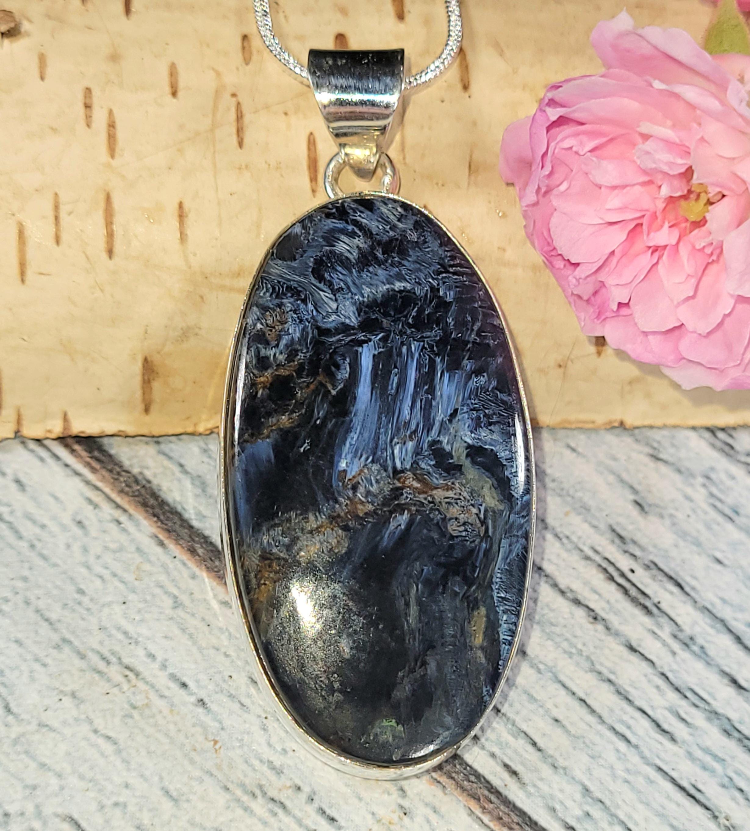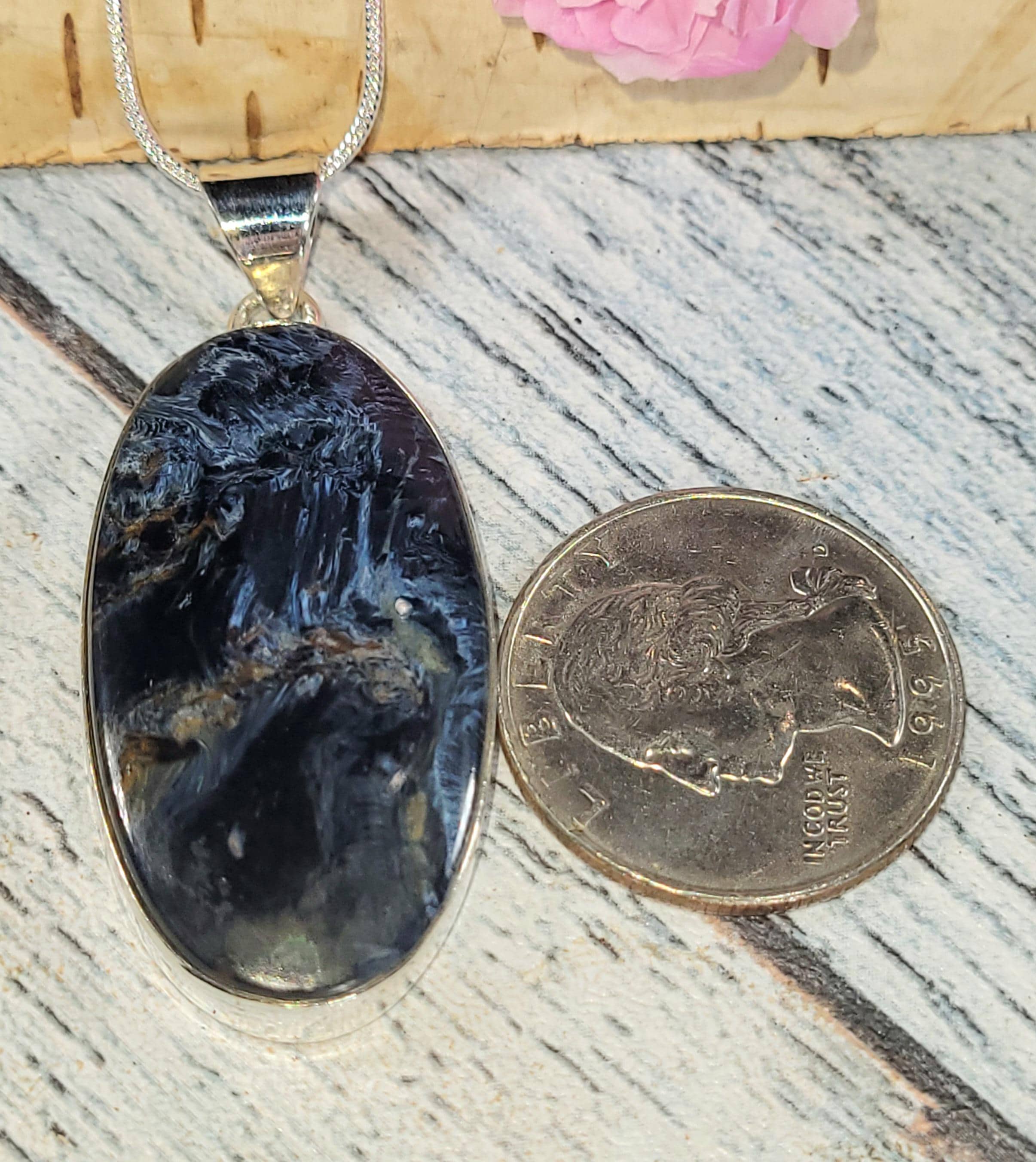 Natural High Grade Pietersite Oval .925 Sterling Silver Pendant measures 2" x 7/8" and weighs 10.1 grams JV11. If you're not pleased with the item you receive please email us before leaving review. We stand behind our jewelry 100% and will refund you or send a replacement to make sure you're happy with your purchase!! This is a handpicked natural stone, the exact one shown in picture. The sterling silver is .925 and stamped. Each piece is handmade by artisans in my shop. The quality of the stones and the silver craftmanship is impressive. Please look at other items in my store. I sell ready made jewelry with handcrafted silver work, pendants with a sterling silver bails and beautiful unique stones for jewelry wire wrapping and weaving. You will pay exact amount on shipping plus $1 for supplies and labor. All items are shipped within a couple of days after payment and are shipped USPS first class or international first class. Items are available for combined shipping, if invoice does not combine please email me and I will combine for you. Average shipping will be $4 to 4.50 for USPS first class. International shipping is available for exact amount of shipping plus $1 for labor and supplies also. We also accept returns for refund or exchange. Thanks for viewing my store.